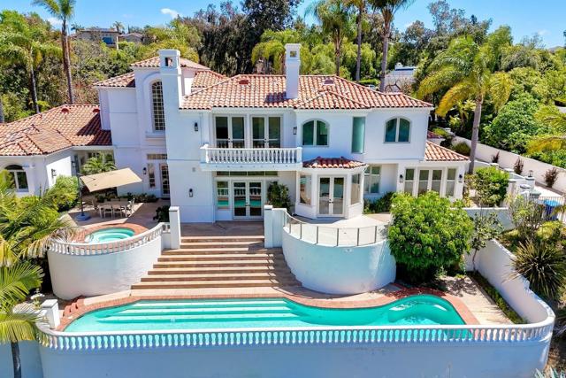 Modern luxury meets Mediterranean charm in this stunning Fairbanks Ranch estate. Perched on over two private acres, this completely renovated home offers striking architecture and sweeping panoramic views of the San Dieguito River Valley and the mountains beyond. Step through the elegant arched doorway and into a bright, open design featuring soaring ceilings, wide-plank hardwood flooring, and natural light pouring through expansive windows. The brand-new kitchen is a showstopper boasting cascading quartzite countertops, built-in stainless steel appliances, and custom cabinetry. Each bedroom includes its own full en-suite bathroom, offering comfort and privacy throughout. Four fireplaces add warmth and character to the home s inviting ambiance. The entire second floor is dedicated to the luxurious primary suite, complete with a private balcony, dual-sided fireplace, soaking tub, walk-in shower with frameless glass, an expansive walk-in closet, and a private sauna. Fairbanks Ranch, one of Rancho Santa Fe s premier guard-gated communities, is renowned for its luxury estates, world-class amenities, and vibrant lifestyle. Residents enjoy 24-hour security, a top-tier equestrian center, tennis and pickleball courts, and scenic walking and hiking trails that wind through lush, landscaped grounds. This home enjoys the coveted north side of the community.Interested in this Listing?