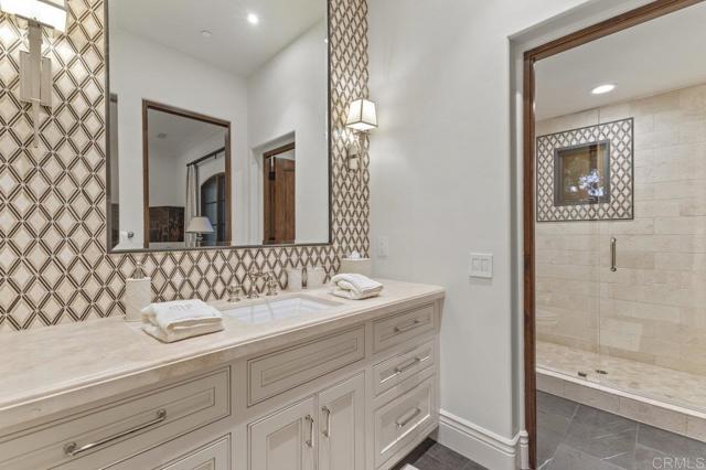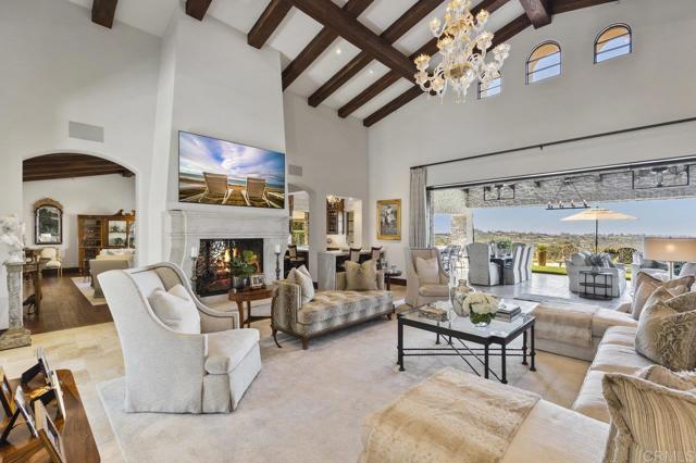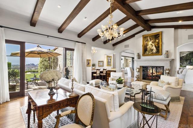 6320 Calle Ponte Bella is an exquisite single-story estate nestled in the exclusive gated community of The Bridges at Rancho Santa Fe. The home embodies the finest in Santa Barbara-inspired architecture and offers nearly 10,000 square feet of living space between the main home and the guest house. Situated on nearly 2 acres of usable land, this exclusive estate lot provides privacy, luxury, and breathtaking views of the 12th hole in one direction and unrivaled vistas in the others. The home s interior is a masterpiece of design, featuring elegant finishes such as travertine floors, wood beams, custom walnut cabinetry, and much more. The spacious floor plan includes a gourmet kitchen equipped with professional-grade appliances, a great room with lift and slide doors, creating seamless indoor-outdoor living, and multiple fireplaces, creating a warm, inviting atmosphere throughout. The master suite is especially noteworthy with a private terrace, luxurious spa bath, and extraordinary closet. Outdoors, the property boasts a zero-edge saltwater pool, spa, outdoor kitchen, and expansive patios perfect for entertaining guests or enjoying peaceful family time. The meticulously landscaped grounds also include a guest casita, bocce court, lush lawns, and classical gardens, creating a resort-like ambiance right at home. Living in The Bridges comes with numerous perks. This prestigious community offers access (separate membership) to world-class amenities, including a championship golf course designed by Robert Trent Jones Jr., a private clubhouse with gourmet dining, fitness center, tennis courts, and a junior Olympic-sized swimming pool. Additionally, residents enjoy the security of 24-hour guard-gated entrances, ensuring privacy and peace of mind.Interested in this Listing?