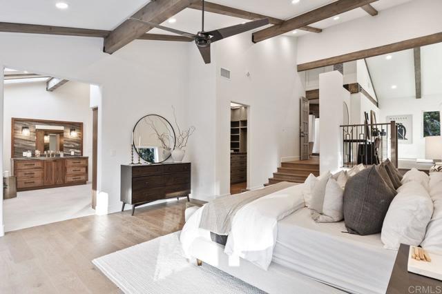 Nestled in the heart of The Covenant Rancho Santa Fe s most prestigious and historic community 6449 Las Colinas is a striking example of Spanish Modern design, reimagined for today's discerning lifestyle. Both the main house and guest house were recently remodeled with exquisite attention to detail, this estate masterfully blends classic California architecture with contemporary elegance. A sweeping circular drive sets the tone, leading to a residence framed by smooth white stucco walls, espresso trimmed windows, and lush, mature landscaping. Inside, warm European oak floors, custom cabinetry, and open beam ceilings create an inviting atmosphere, while large picture windows and sliding glass doors flood the home with natural light. The heart of the home is a chef s kitchen outfitted with Wolf and Sub-Zero appliances, an oversized center island, and seamless flow into dining and living areas perfect for entertaining or relaxing in style. Multiple fireplaces, curated design accents, and indoor-outdoor connectivity elevate every moment. Resort-style living continues outdoors with a private pool, a full-size tennis court, and a detached guest house that offers luxurious accommodations for visitors or extended stays. Every space has been thoughtfully designed for comfort, privacy, and effortless indoor-outdoor enjoyment. Retreat to the expansive primary suite where vaulted ceilings, a spa-inspired bath, and direct access to the backyard offer a peaceful escape. Additional features include designer lighting, high-end fixtures, and a layout that supports both grand entertaining and quiet retreat. Set within The Covenant, this home enjoys access to miles of riding trails, the Rancho Santa Fe Golf Club, top-rated Roger Rowe School, and an unmatched sense of community all without the confines of a gated neighborhood. Experience the best of Rancho Santa Fe living where timeless Spanish charm meets modern refinement.Interested in this Listing?
