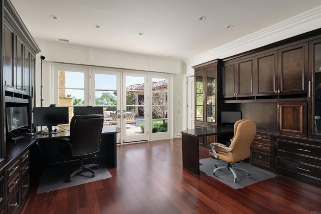 Nestled within the prestigious 24-hour guard-gated community of Rancho Del Lago once home to a traditional orange grove this extraordinary, privately gated estate has evolved into a true resort-style sanctuary, now flourishing with an exceptional garden of over 150 fruit-bearing trees and plants. Featuring more than 30 varieties of fruits, berries, and nuts, the orchard provides a year-round bounty with something always in season. Spanning over 11,893 square feet on a single level, this captivating residence embodies the pinnacle of luxury, comfort, and timeless sophistication. Upon arrival, a grand gated entry welcomes you to manicured grounds and architectural elegance. Inside, the home offers 7 spacious bedrooms, 8 full bathrooms, and 2 half bathrooms designed to provide the utmost privacy and comfort for both residents and guests. Expansive windows, doors, and vanishing glass walls create seamless indoor-outdoor living, while refined details such as Murano glass chandeliers, European limestone flooring, slab Brazilian quartzite countertops, and custom burled wood cabinetry reflect curated luxury at every turn. Step outside to discover your own private oasis complete with a shimmering pool, lush organic gardens, and mature, year-round producing fruit, vegetable, and flower beds. A standout amenity is the full-size, lighted tennis court an increasingly rare feature, as newly illuminated courts are no longer permitted within San Diego County. This exclusive offering presents an exceptional opportunity for tennis and pickleball enthusiasts seeking year-round play. The thoughtfully expanded floor plan includes a sophisticated guest house with a private bedroom, living room with Murphy bed, bathroom, and kitchenette ideal for visitors or multigenerational living. A glass-enclosed multimedia/game room, arcade, gym, and catering kitchen add to the property's versatility and appeal. The recently reimagined outdoor amenities include an enlarged pool and covered entertainment pavilion with a full outdoor kitchen and a dramatic fireplace offering the ultimate five-star ambiance for al fresco dining and grand-scale entertaining. Two generously sized garages accommodate up to eight vehicles perfect for collectors or those seeking ample storage and functionality. 6565 Calle Reina is more than a residence it is a lifestyle. From its refined interiors to its unparalleled resort-style amenities, this one-of-a-kind estate delivers an elevated living experience in one of Rancho Santa Fe s most coveted communities. Discover the ultimate fusion of elegance, leisure, and legacy living.Interested in this Listing?