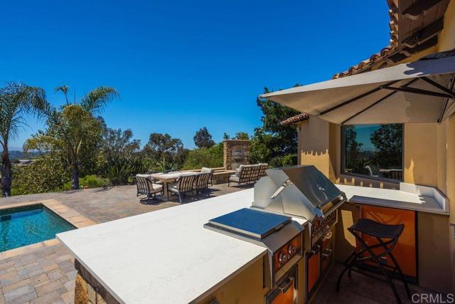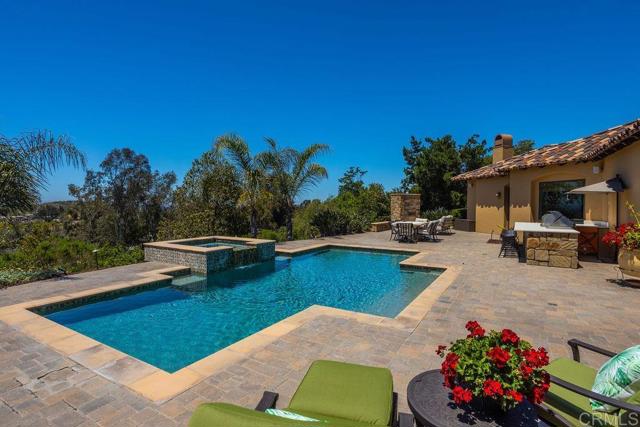 Perched atop the hills of Rancho Santa Fe s exclusive guard-gated community of Cielo, this stunning single-level custom estate blends timeless design with modern luxury, offering the perfect setting for elevated family living. Featuring 4 spacious bedrooms and 3.5 beautifully appointed baths, this thoughtfully designed residence offers a seamless, open-concept floor plan ideal for both everyday comfort and effortless entertaining. Recent upgrades include over $400,000 in outdoor enhancements, such as brand-new pavers, a luxury outdoor kitchen with premium Heston appliances, a professional-grade pizza oven, resurfaced pool with new tile, and multiple gathering areas designed for indoor-outdoor living. The interior has been completely repainted and features soaring vaulted ceilings, granite countertops, wrought iron accents, and abundant natural light throughout. The chef s kitchen has been upgraded with top-of-the-line appliances, including a Sub-Zero refrigerator, Wolf double ovens, and a Wolf gas range, making it a true culinary centerpiece. Sustainability meets convenience with a fully owned Sunrun solar system, complete with a dual battery backup for enhanced energy independence. Located within the highly sought-after Rancho Santa Fe School District (Roger Rowe), this rare single-story gem also enjoys access to Cielo s resort-style amenities just a short stroll from the home including a clubhouse, fitness center, tennis and pickle ball courts, pool, and scenic parks. A true luxury family retreat in one of Rancho Santa Fe s most desirable communities.Interested in this Listing?