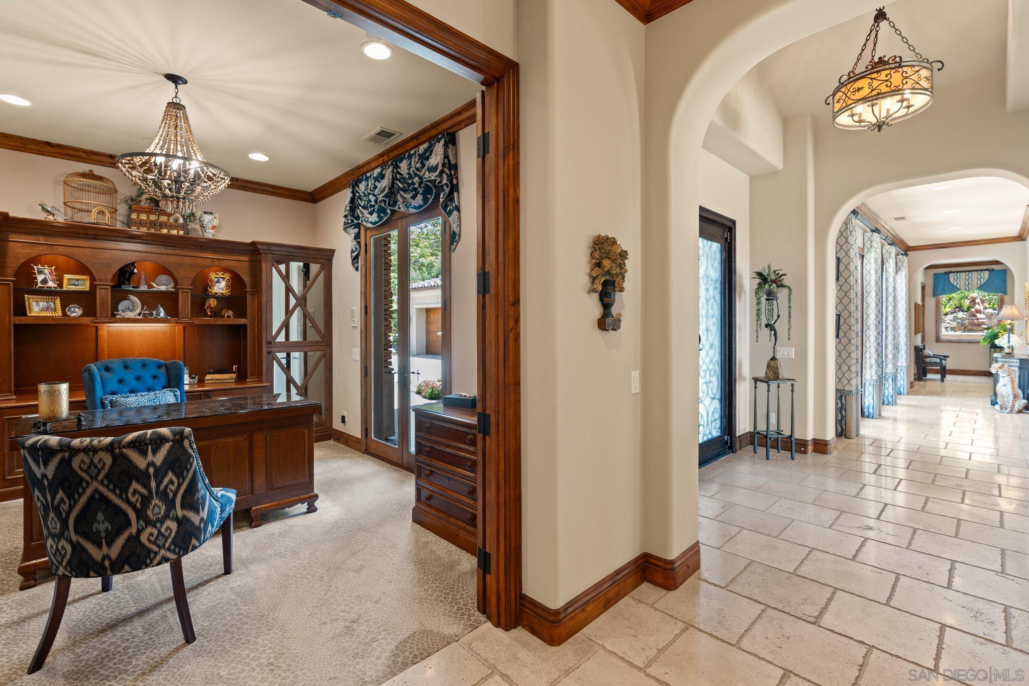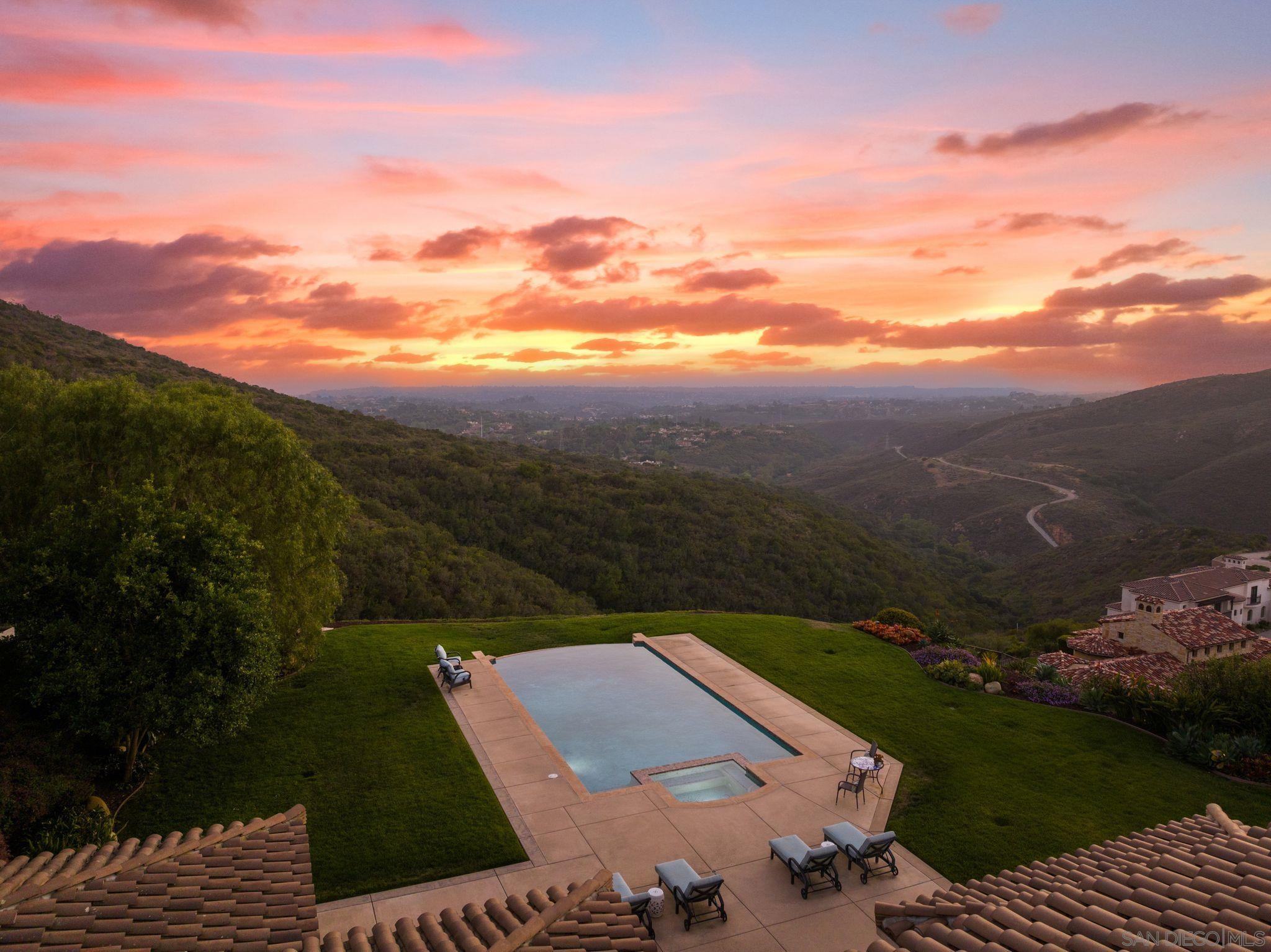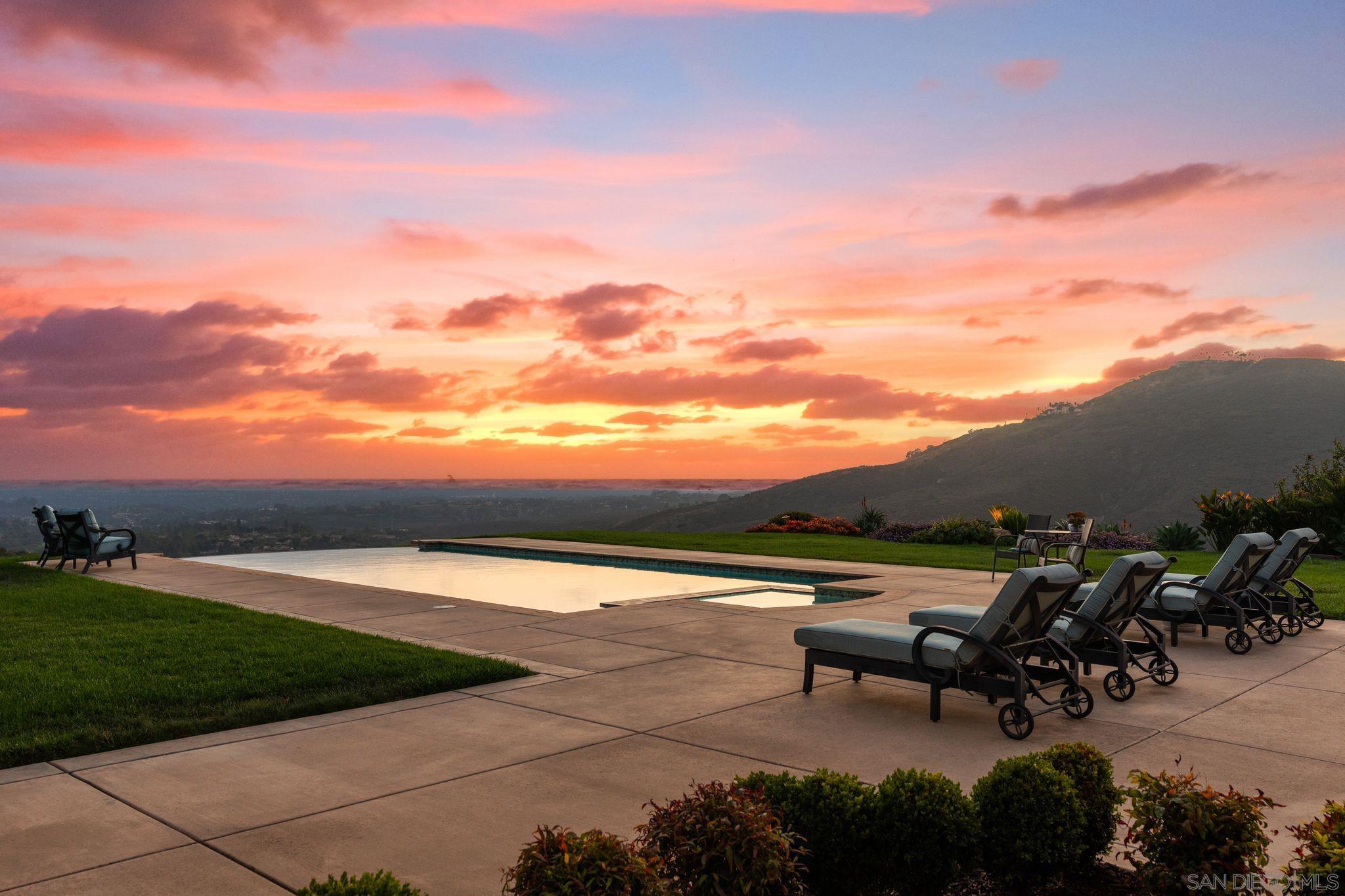 Epic Views, Effortless Luxury Perched on over two serene acres within a prestigious guard-gated community in exclusive Rancho Santa Fe, this custom-built single-level estate is a true sanctuary of style, comfort featuring panoramic ocean and sunset views. Thoughtfully designed with timeless elegance and modern functionality, this 4,311 sq. ft. home offers 4 spacious bedrooms, 4 ½ bathrooms, a dedicated office with custom built-ins, and a coveted 4-car garage with built-in storage. Step inside to soaring volume ceilings, sophisticated stone floors, and expansive windows dressed with custom coverings that invite the outside in. The heart of the home is a chef s dream a beautifully updated kitchen featuring new stone countertops, sleek single basin sink, salad sink, stainless appliances including dual dishwashers, double convection ovens, warming drawer, a wine refrigerator, beverage refrigerator and a walk-in pantry. The seamless flow from indoors to outdoors is where this home truly shines. Entertain effortlessly in the covered lanai room complete with remote shades, built-in audio, and an oversized BBQ, or unwind by the sparkling infinity-edge pool and spa hot tub, perfectly positioned to soak in endless sunset vistas. Sustainability meets convenience with 34 owned solar panels, two tankless water heaters, a central vacuum system, and whole-house Sonos audio. The fully fenced grounds are a private paradise, complete with mature lime and lemon trees, outdoor lighting, and a whimsical secret garden with raised growing beds.Interested in this Listing?