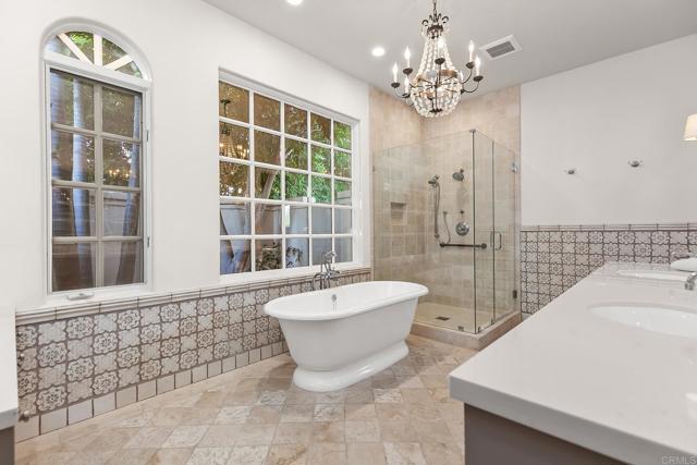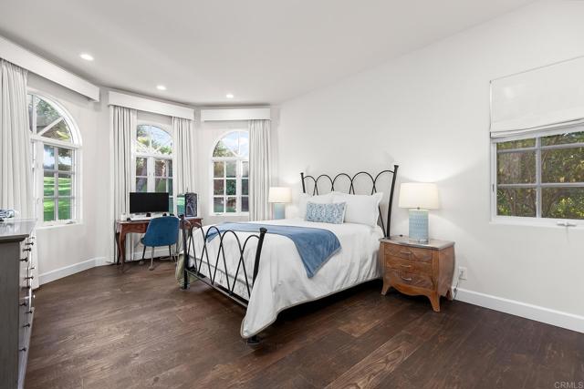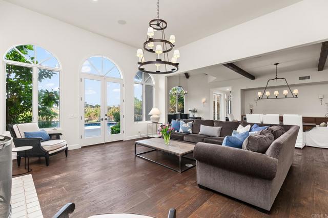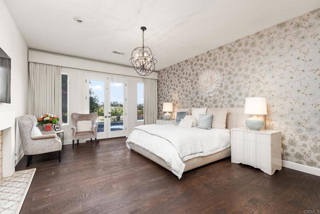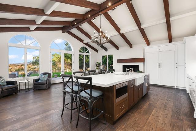Welcome to this exquisite, single story, remodeled home located in the prestigious guard-gated community of Rancho Santa Fe Farms. Situated along the renowned Farms Golf Course, this stunning residence offers that perfect blend of luxury, comfort, and breathtaking natural beauty. With 4 spacious bedrooms, an office, and 3.5 meticulously designed bathrooms, this home provides the ideal environment for both relaxing living and entertaining. The interior of the home has been thoughtfully remodeled, incorporating the latest design trends and high-end finishes. The open-concept layout creates a seamless flow between living, dining, and kitchen areas. The gourmet kitchen is a chef's dream, with top-of-the-line kitchen appliances, custom cabinetry, a large center island, and beautiful countertops. It opens up to a spacious living room with a cozy fireplace and large windows, ensuring that the stunning views are always in sight. The master suite is a true retreat, including expansive views of the golf course and mountains, as well as a luxurious spa-like bathroom with a freestanding soaking tub, a large walk-in shower, dual vanities, and two spacious walk-in closets. Each of the three additional bedrooms is generously sized, ample closet space and natural light. With its stunning design, exceptional location, and beautiful views, this home is truly one of a kind.Interested in this Listing?