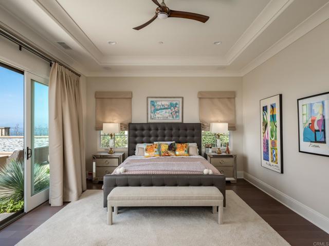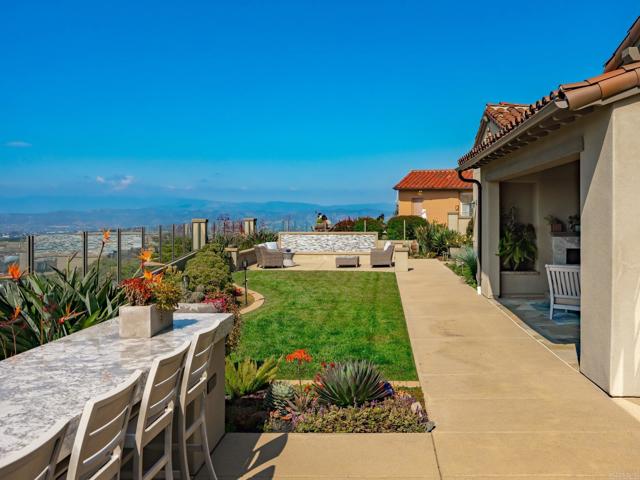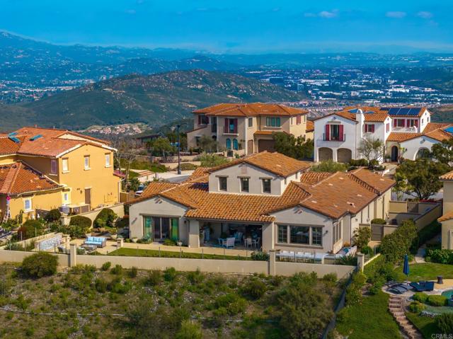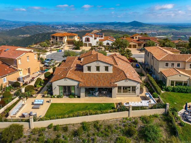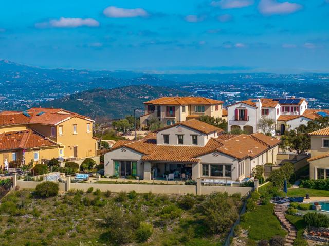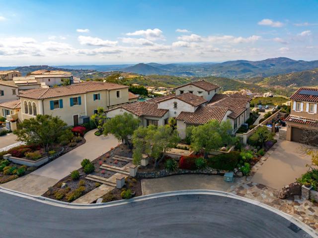 Welcome to 8784 Avenida Mirador where world-class views and refined living converge in the exclusive, 24-hour guard-gated enclave of Cielo. Revered by discerning buyers, Cielo offers privacy, prestige, and a lifestyle unlike any other. Set on over half an acre at the highest point in the community and tucked away on a tranquil cul-de-sac, this single-level residence delivers panoramic vistas that are nothing short of breathtaking. From the Olivenhain Reservoir and Lake Hodges to the glistening Pacific Ocean, the home captures three iconic water views. On many days, you ll feel as though you re living above the clouds sunsets here are simply legendary. Inside, the thoughtful layout centers around a serene open-air courtyard with a cozy fireplace, offering a seamless blend of indoor and outdoor living. Just beyond, a dedicated office provides the ideal space for working from home. A dining room has been cleverly converted to a wine room with two Sub Zero wine refrigerators, ensuring that you have enough of your favorite bottles on hand! The kitchen is a culinary showpiece, featuring a massive center island, designer lighting, walk-in and butler s pantries, and premium Sub-Zero appliances. Soaring ceilings crown the expansive living room, which flows effortlessly into the loggia through fully retractable California doors. Here, you ll find an outdoor living and dining space with a fireplace, and beyond a built-in barbecue, dining bar, and sweeping views perfect for hosting or relaxing in luxury. The primary suite is privately situated with a spa-inspired bath, large custom designed walk-in closet, and direct access to a peaceful patio oasis adorned with fruit trees and a tranquil water feature. Two additional ensuite bedrooms provide comfort and privacy for family or guests. Residents of Cielo enjoy access to resort-style amenities, including pools, tennis and pickle ball courts, the family-friendly Club Cielo, meeting spaces, and a beautiful clubhouse. This is more than a home it s a lifestyle. Discover the magic of life at the top.Interested in this Listing?