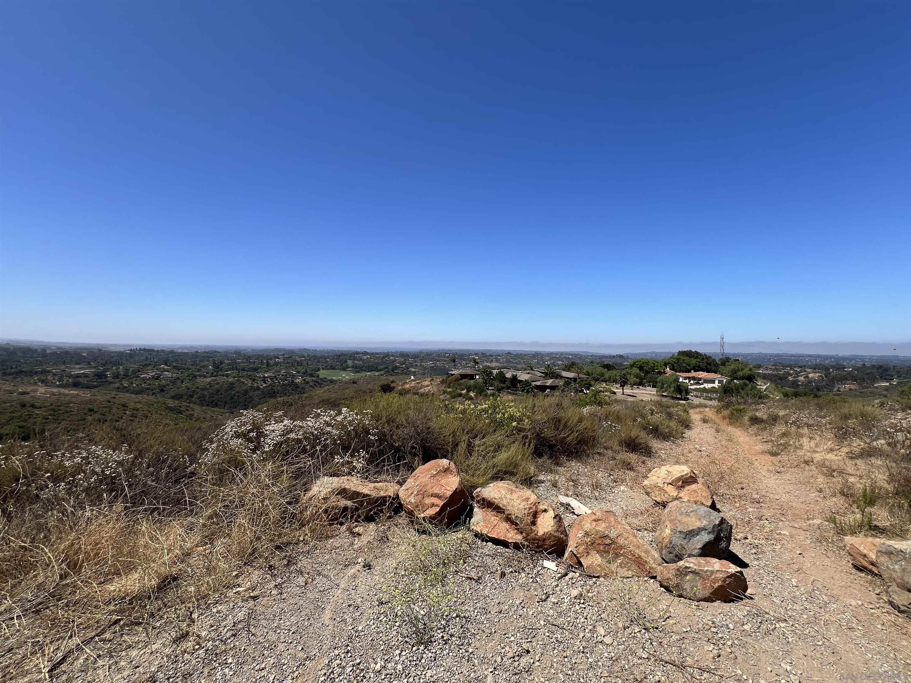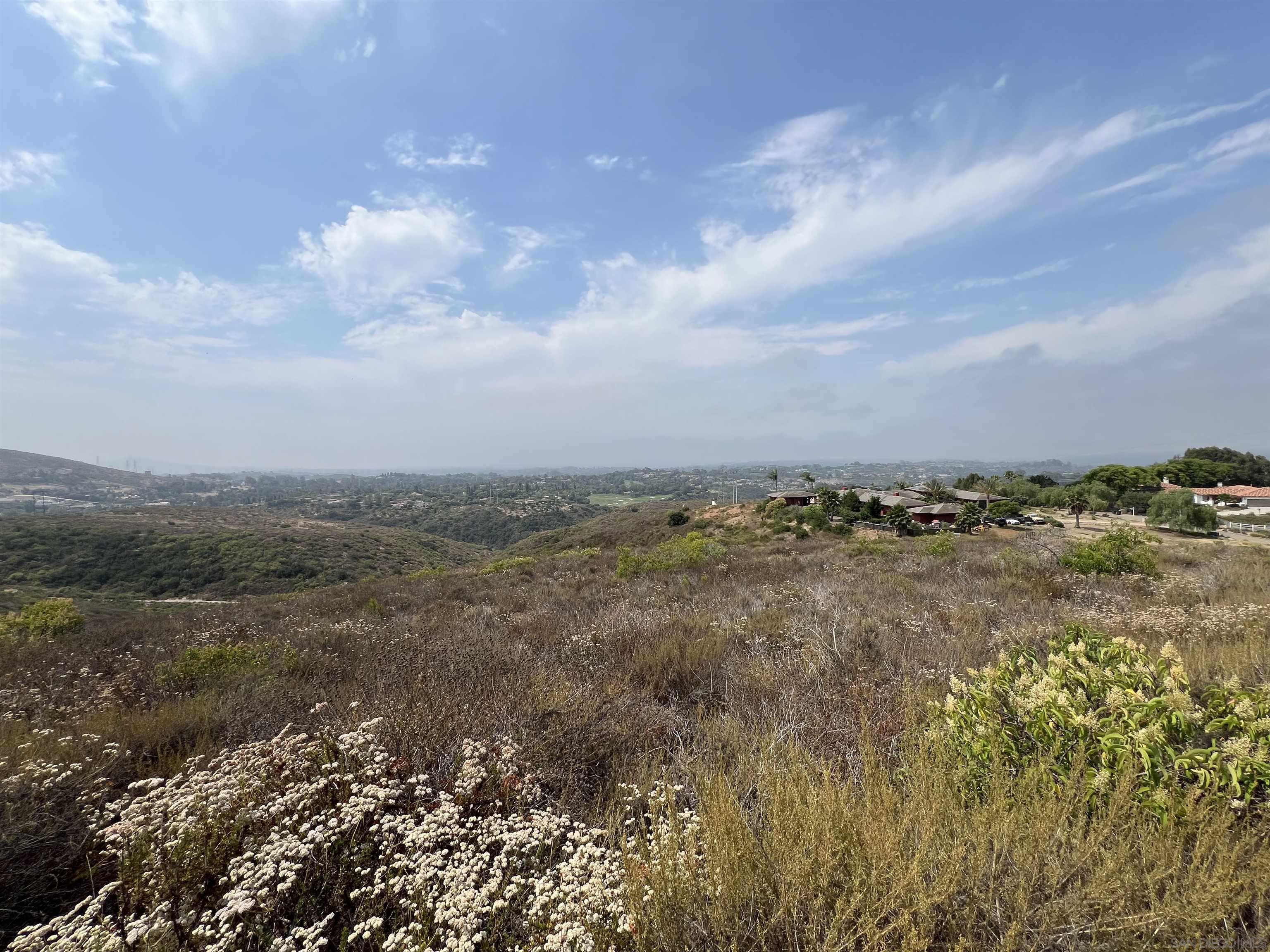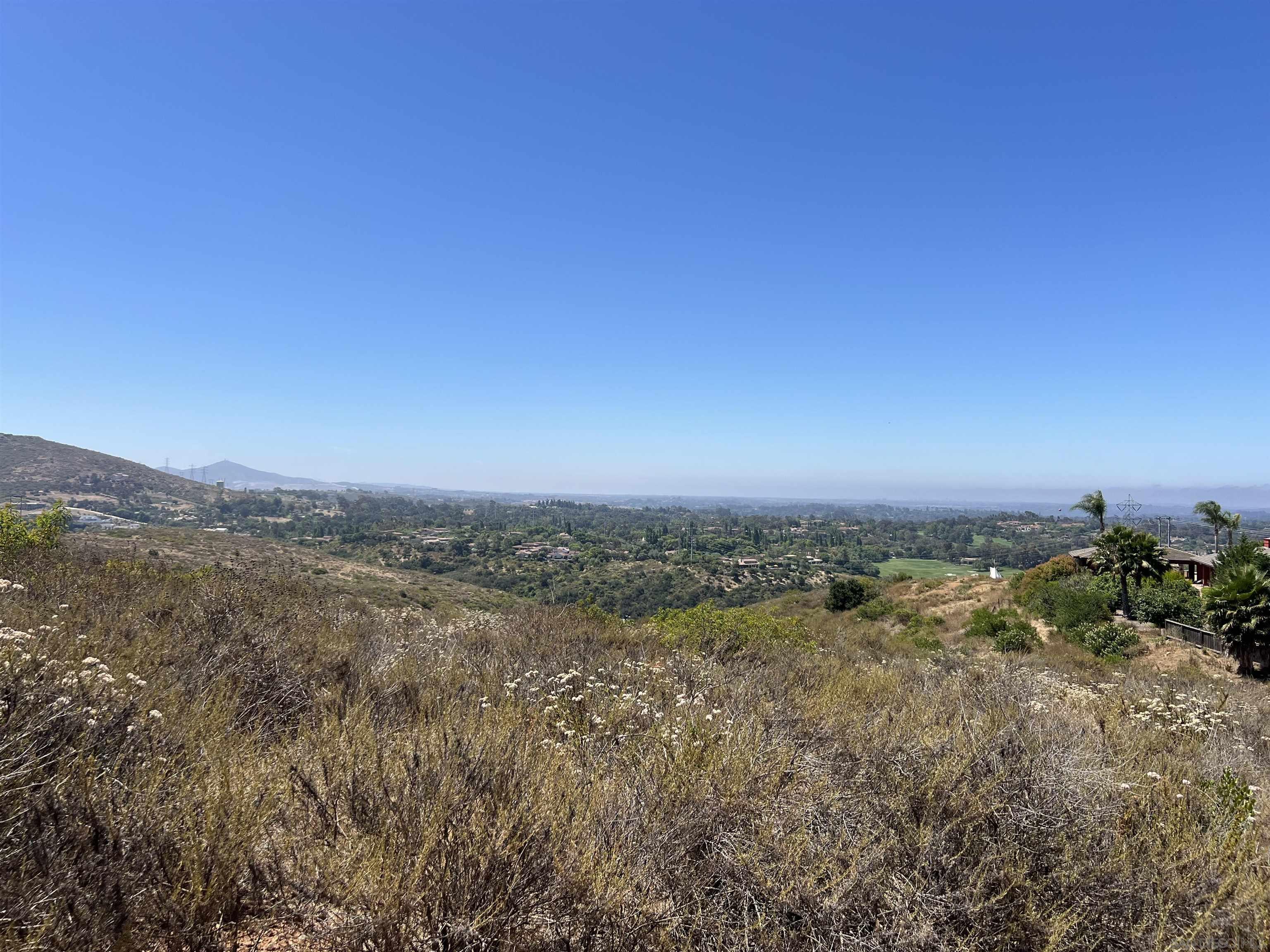Discover the ultimate blend of luxury and tranquility on 9.5 acres of pristine land, perfectly situated between the serene locales of Elfin Forest and Olivenhain, with breathtaking vistas overlooking The Bridges of Rancho Santa Fe. This extraordinary property offers mountain and ocean views, as well as scenic golf course vistas, providing a picturesque backdrop for your dream home. Located on Paint Mountain Road. With ample space for equestrian facilities, you can enjoy the freedom to keep horses on your property. Zoning is RR with Animal code : V. Essential groundwork is already in place, with a perc test on file and both water and power conveniently accessible at the street. This unique opportunity allows you to design and build a custom residence that embodies the pinnacle of luxury living in one of California's most sought-after regions.