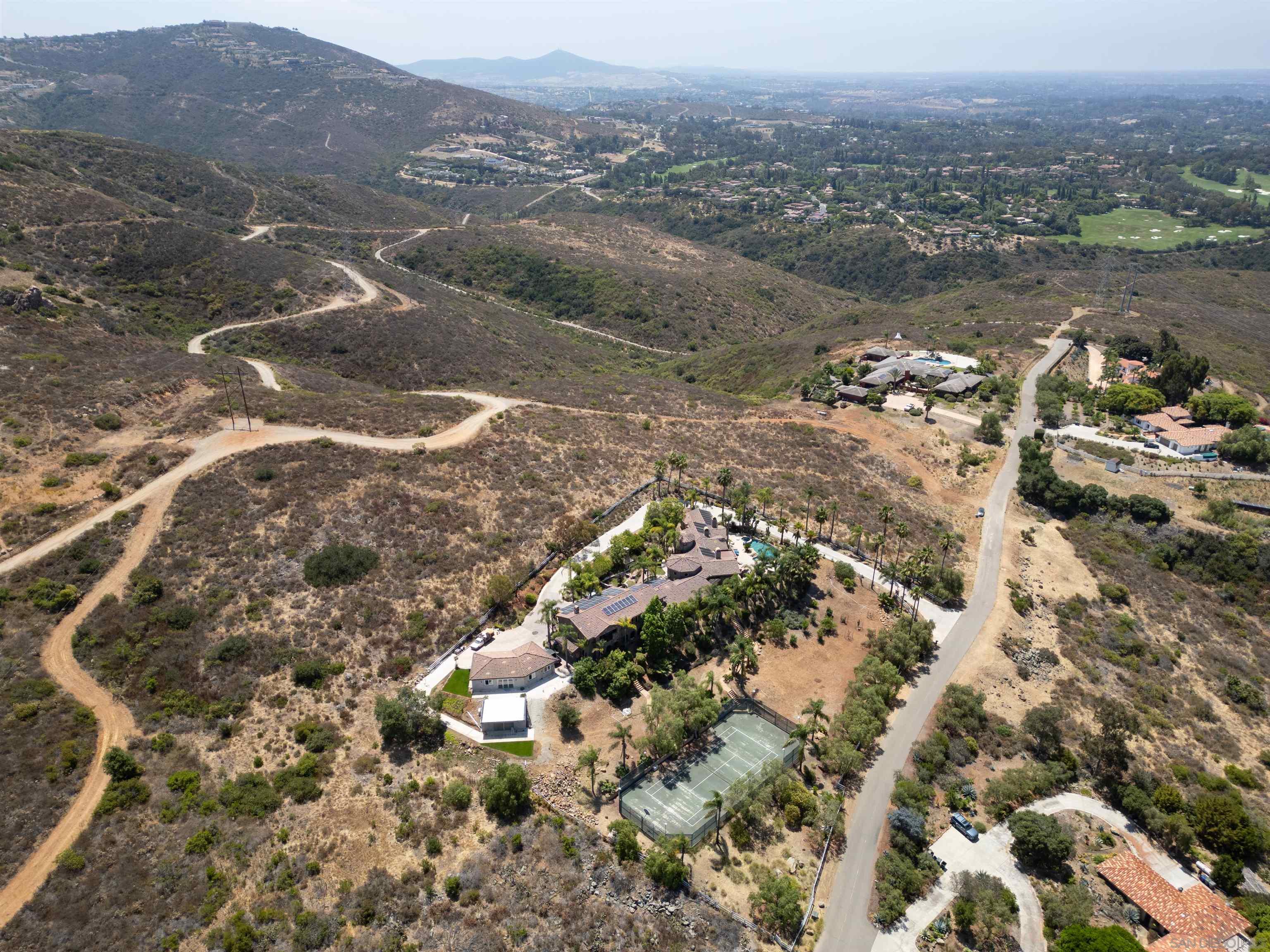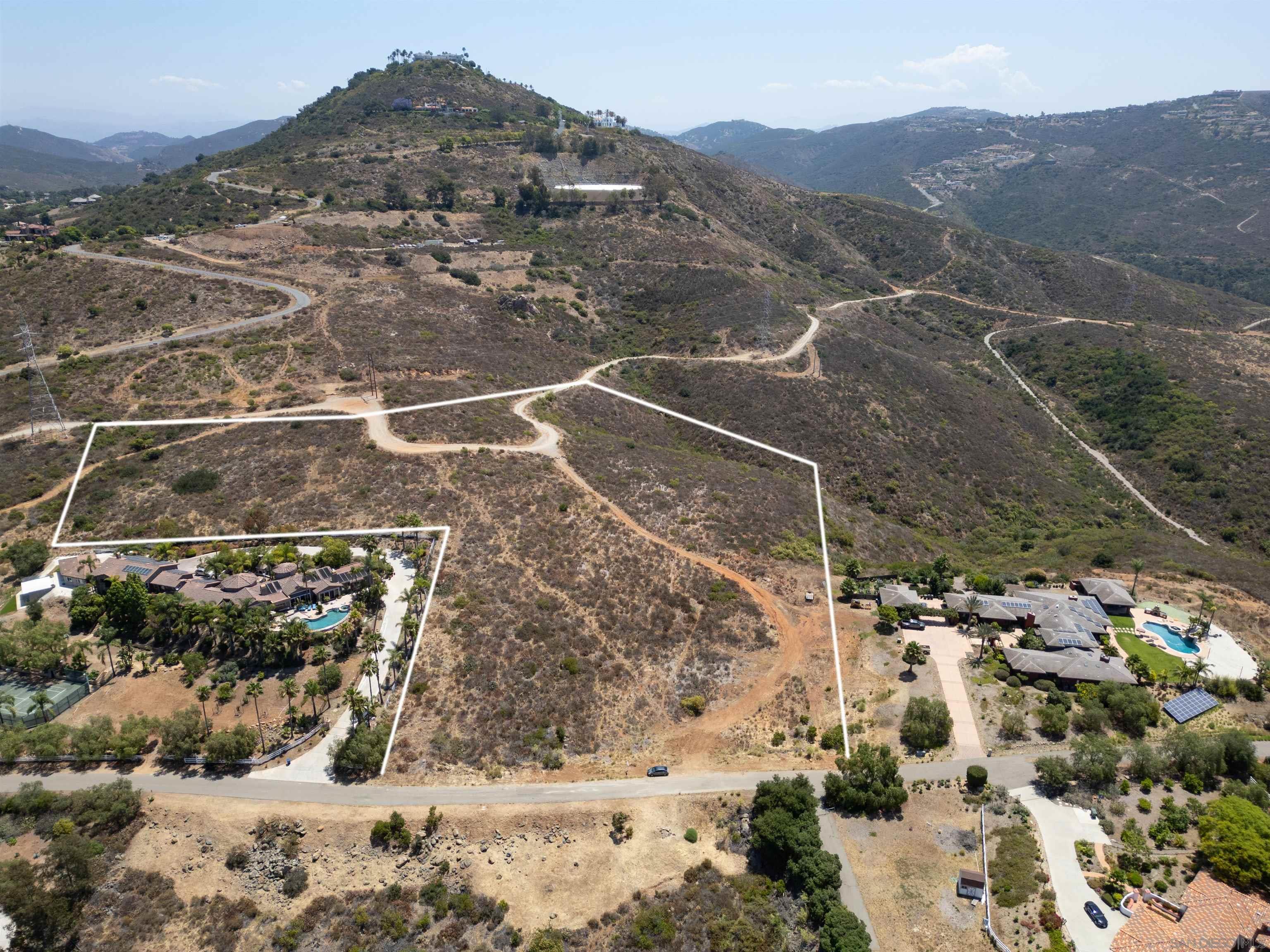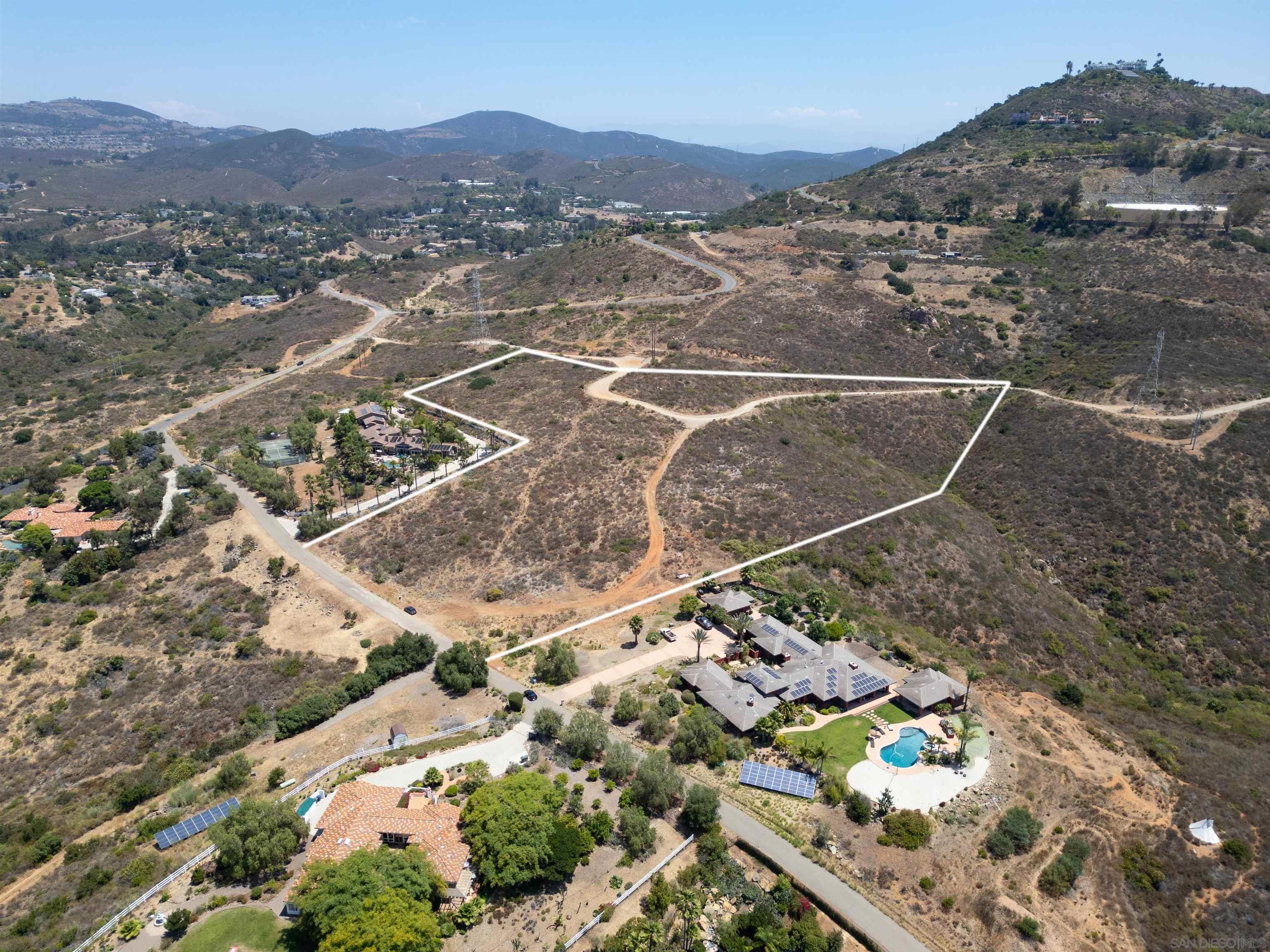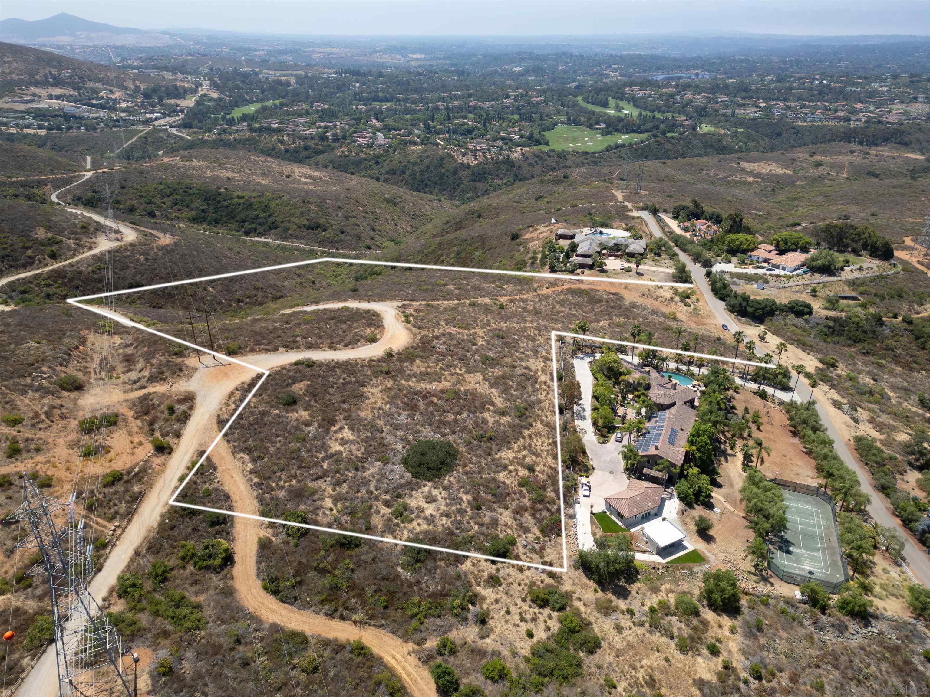 Discover the ultimate blend of luxury and tranquility on 9.5 acres of pristine land, perfectly situated between the serene locales of Elfin Forest and Olivenhain, with breathtaking vistas overlooking The Bridges of Rancho Santa Fe. This extraordinary property offers mountain and ocean views, as well as scenic golf course vistas, providing a picturesque backdrop for your dream home. Located on Paint Mountain Road. With ample space for equestrian facilities, you can enjoy the freedom to keep horses on your property. Zoning is RR with Animal code : V. Essential groundwork is already in place, with a perc test on file and both water and power conveniently accessible at the street. This unique opportunity allows you to design and build a custom residence that embodies the pinnacle of luxury living in one of California's most sought-after regions.