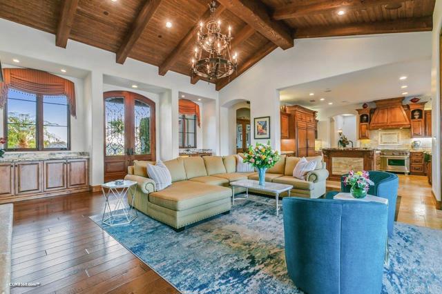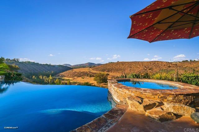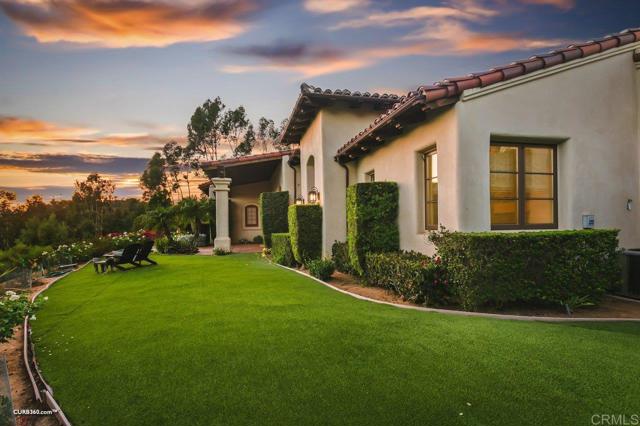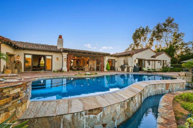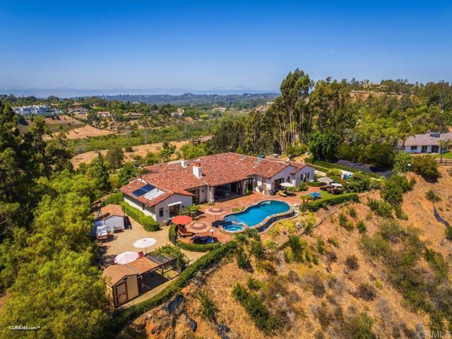 Luxury Rental in Covenant: This premier estate, set on 2.51 elevated view acres was custom built in 2009 and is located in the exclusive community of the Covenant in Rancho Santa Fe. This spectacular property encompassing 4,523 sq feet features beautifully scaled and generously proportioned rooms with high ceilings and an open flowing floor plan for entertaining or everyday enjoyment. Featuring the convenience of single level living, including a great room with stone flanked beverage bar, lift and slide doors and fireplace opening to the well -appointed chef s kitchen with sun-filled breakfast area, copper sink and bar seating. There is an artisan crafted office/library, formal dining room, magnificent outdoor living /dining room with fireplace overlooking the resort style pool with spa and plenty of room for lounging while enjoying the peaceful views. The primary suite is large with a fireplace and spa bathroom with a generous custom appointed dressing room. There are three additional suites of bedrooms, a secondary office area and a powder room. Outside one can enjoy the spectacular views from almost every direction, sun splashed pool with spa and outdoor shower. Additional features: Wood and travertine floors. Extensive chicken coop. Whole house and pool solar. Gated entry. Garaging for 3 (2 spots are available) cars. Cul-de-sac Location. The property is close to the equestrian trails, the RSF Village, Golf and Tennis Clubs and award-winning Roger Rowe schools.Interested in this Listing?