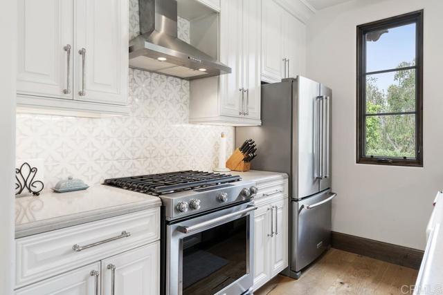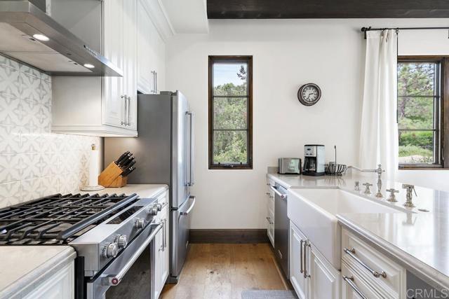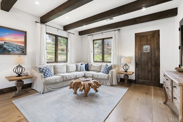 This house is a guest house sitting on a 3.6 acre lot in the much desired Covenant Neighborhood of Rancho Santa Fe. The owner's live in the main house which sits on the same lot above about 100 yards away. Access to the property is accessible through a gate and the guest house has it's own driveway and it's own private backyard screened from the front of the owner's house with trees and bushes. The guest house with open layout comes fully furnished with 2 king size beds in each bedroom. In addition, one of the bedrooms has another smaller room with a bunk bed and dresser and the other room has an office space off of the bedroom. The house boasts high end finishes, high ceilings with wooden beams and hardwood floor throughout. The house has a full kitchen with gas stove, oven/range, microwave and all high end stainless steel appliances. The family room has a big comfy L couch with large 70" Smart TV. The property is 5 minutes from downtown Rancho Santa Fe and a 5 minute walk to Arroyo Canyon Preserve. All utilities are included. Washer/dryer inside house. Will consider any lease term including 1 week to months long. Small dogs will be considered. No smoking. Owner pays for all utilities. Small Dogs will be considered. No smoking.Interested in this Listing?