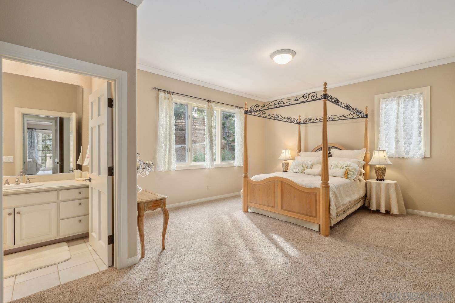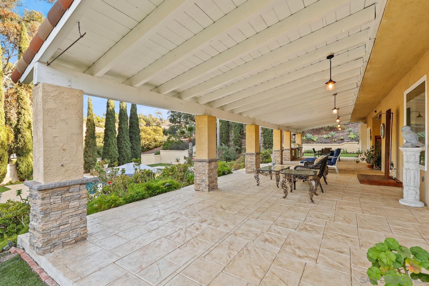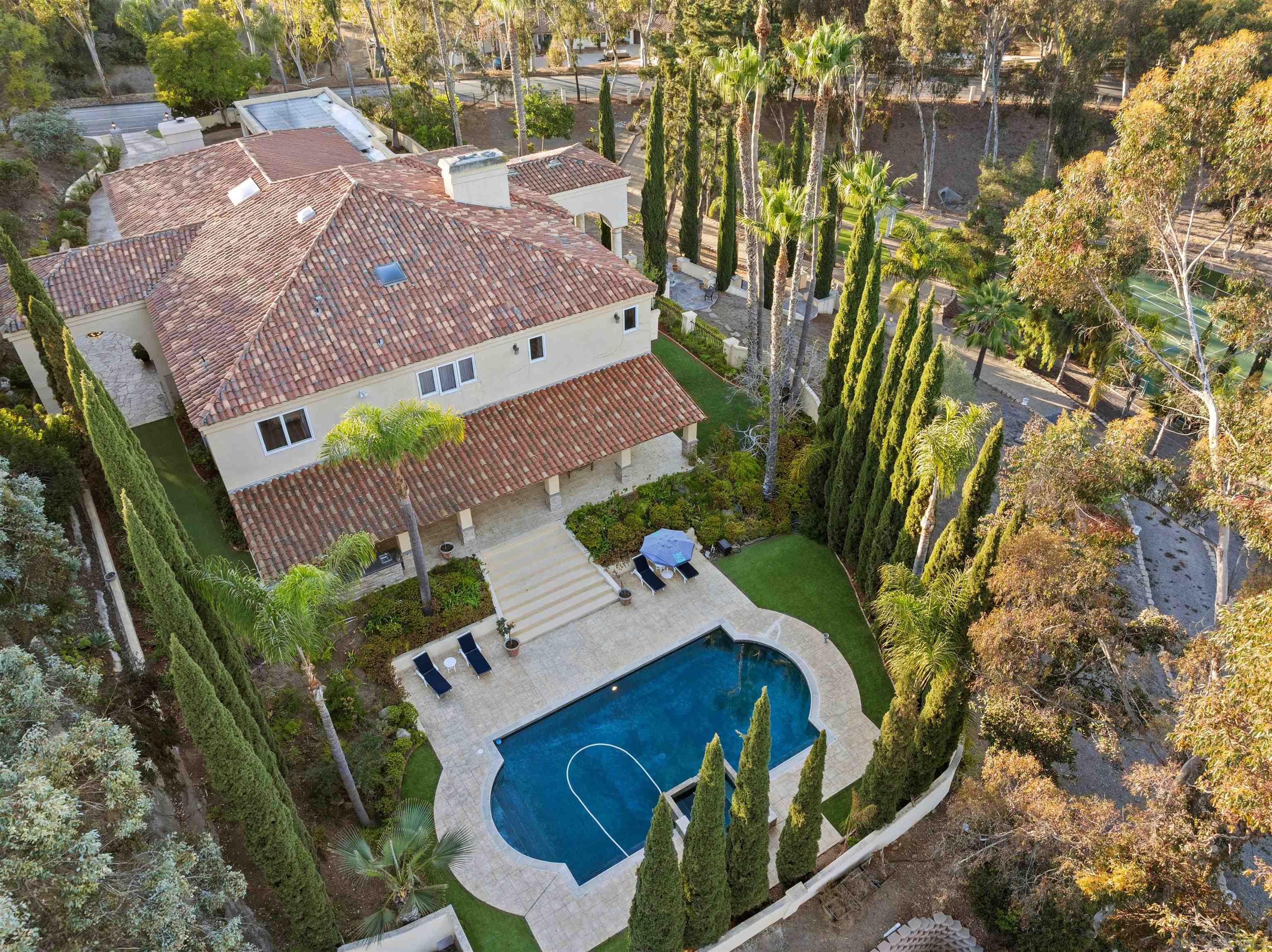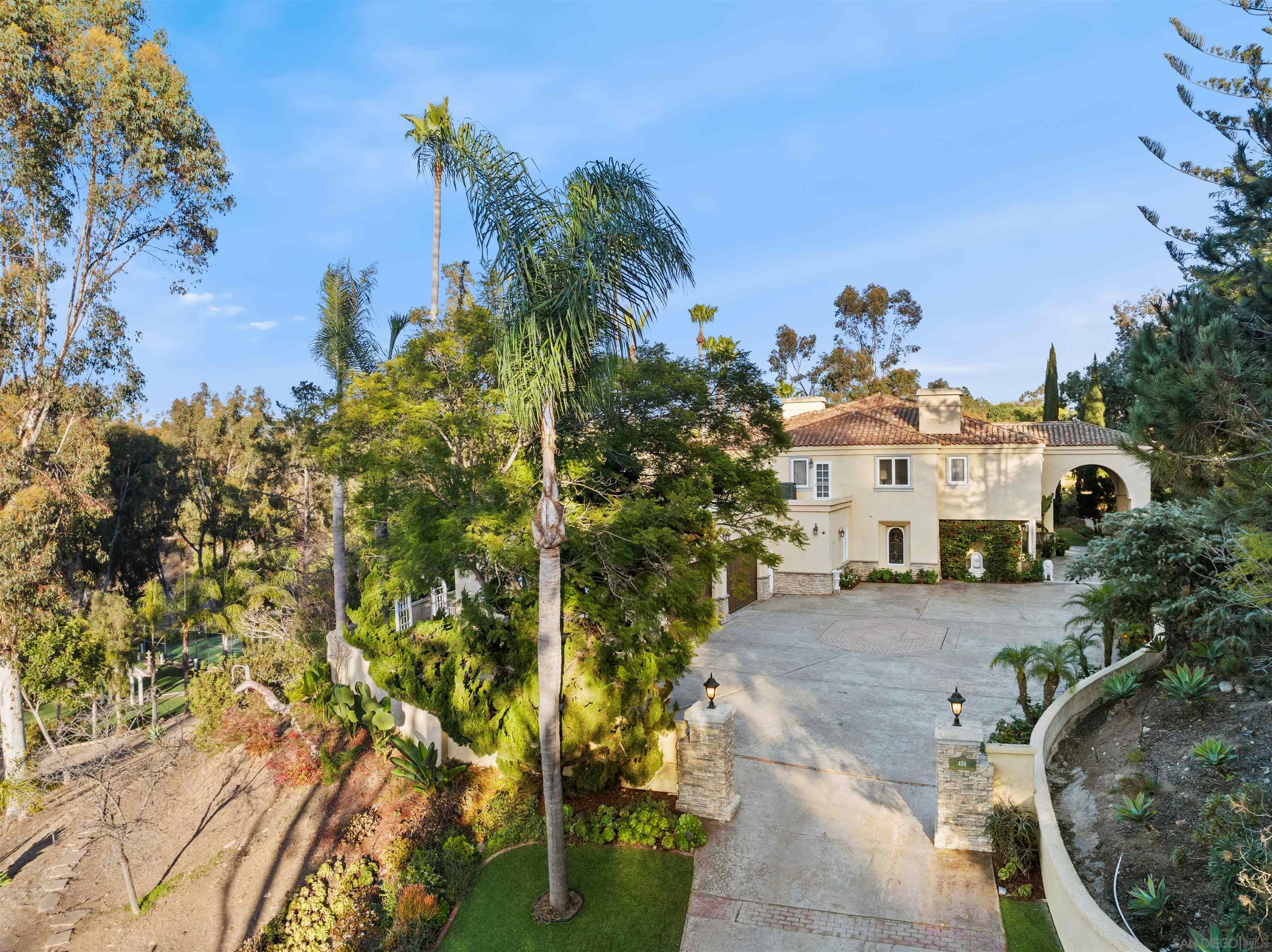 Welcome to your private sanctuary on the coveted West side of Rancho Santa Fe, where luxury and countryside charm blend seamlessly! Nestled on 3.5 private acres of meticulously landscaped grounds, this stunning estate reflects exceptional pride of ownership. Located in the exclusive South Pointe Farms gated community, the property offers unparalleled privacy, abundant natural light, and breathtaking panoramic views from every vantage point. The home features soaring 28-foot ceilings, an in-home elevator, and 48 solar panels among many other upgrades. The attached in-law or nanny suite provides a versatile living space ideal for multigenerational living, or hosting friends and family. Resort-style amenities include a pool & spa for relaxing or entertaining, a covered outdoor living area, and your own private tennis court that could double as a pickleball court. Enjoy the tranquility of nature with walking trails winding through the lush, private property. With these remarkable amenities, this estate embodies gracious living at its finest. Situated just minutes from the sandy shores of nearby beaches, it provides the perfect balance of convenience and serene rural California living.