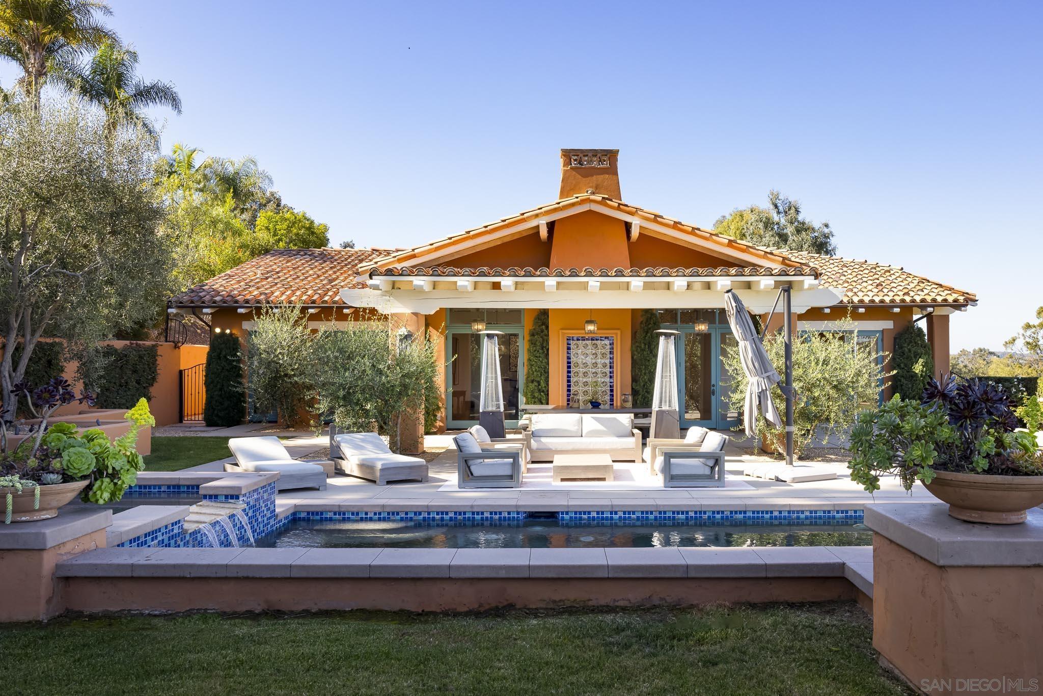 This custom Spanish-inspired single-level home captures the elevated luxury and natural beauty of Rancho Valencia at every turn! Indulge in breathtaking golf course views with resort-style pool & serene fountains. Home offers secured gated entry, vaulted wood beam ceilings, gourmet kitchen, 4 bedrooms with ensuite baths, gym (optional bedroom), mahogany library and billiard/game room. Entertainers dream with French doors opening to courtyards and backyard. Primary bedroom suite is complete with sitting area, fireplace, his/her walk-in closets and luxury bathroom with custom soaking tub. This fully furnished estate exudes casual elegance and seamless indoor/outdoor living. Situated across 45 acres of lush gardens and citrus groves, an award winning Rancho Valencia Resort & Spa features rejuvenating wellness, fitness, world-class tennis program and signature restaurants. Delivery service is available to member residents within the gates of Rancho Valencia.Interested in this Listing?