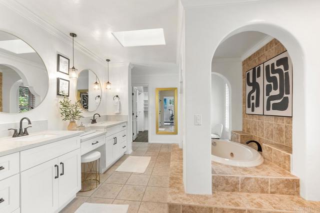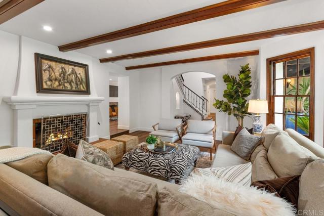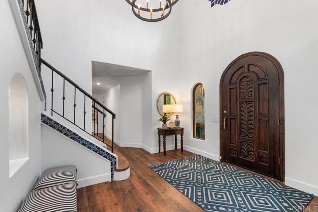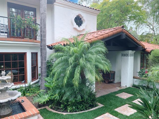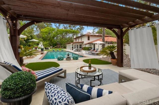 Welcome to gorgeous Villa Estancia in Rancho Santa Fe. NYC Central Park meets San Diego in this 5-star private gated 1.46-acre Spanish Revival paradise with luxurious family & pet friendly resort style living. This charming & modern estate is powered by new solar & SpaceX Starlink super speed internet. Enjoy the beautiful wellness retreat feel, newly remodeled home, posh pool & spa oasis, wooded tropical grounds, lush great lawn, seasonal stream, kids' playground & the ocean breeze. Drive through the private gated entry with the winding California Pepper Tree tunnel lined driveway over a charming bridge to the gorgeous hidden beauty of a home. Walk past the rose garden and through the lush garden with a flowing fountain. Inside you are welcomed by soaring 30 ceilings in a traditional foyer wrought with intricate details including a gorgeous staircase. To the left of the foyer entry, you will see the expansive living room featuring a charming Spanish Revival white stucco fireplace, giant window with beautiful fountain. The living room opens to the formal dining room, which has French doors opening to The Meditation Garden with a covered patio table perfect for morning coffee or afternoon tea. Enjoy the recently upgraded chef s dream kitchen with a Viking stove, a pot filler, new appliances & an expansive island that seats 5. The kitchen opens to the light and bright sunroom area with a charming farmhouse table & stunning views of the pool oasis, outdoor fireplace, grassy lawn, and kids' playground area. To the right of the foyer on the first floor is a charming arched hallway that leads to a guest bathroom, linen closet and the three bedrooms which includes a private en suite featuring a living space perfect for a playroom, media room & or a private living room with French doors leading to the backyard, kids playground, outdoor fireplace sitting area & rose garden. The other two bedrooms on the first-floor bedroom wing are decorated whimsically and are connected by a shared jack & jill bathroom. The primary bedroom suite with 2 multi-purpose rooms (office & gym) are located upstairs in an exclusive & expansive private abode. The indoor/outdoor office area opens to an greeting balcony overlooking the foyer & French doors open to a private patio that also opens to the primary bedroom sitting area perfect for an outdoor work area or peaceful place to relax. The gym is ideal for a morning routine to start your day energized and/ or make it into your dream art studio or secondary closet, nursery or office! The luxurious bathroom includes dual sinks a deep soaking spa tub, separate shower and toilet areas as well as a large walk-in closet with a window overlooking the pool oasis. Children love to explore the outdoors at Villa Estancia's expansive grounds & to play in the seasonal creek & waterfalls amongst the boulders, the pool and spa oasis with complimentary pool safety fence, the kids' playground, the fairy & painted rock garden, and even the dogs' fenced in shaded playground. The Great Lawn activity options are endless such as having an intimate event, playing a variety of sports, sack races, hide-and-go-seek, flying kites & more. The Great Lawn is also famous for on-property tent camp outs & the outdoor fireplace is ideal for cozy evenings making s mores and memories under the stars. This affluent Rancho Santa Fe neighborhood has beautiful streets to walk along with nature trails for walking, running, mountain biking & horseback riding. Within 2 miles to The Village of Rancho Santa Fe known for fine dining, boutique shopping, charming coffee shops as well as award winning golf courses! Close to Del Mar Racetrack, award winning surf, dog, & play beaches & more. Award Winning Schools are Solana Santa Fe Elementary, Earl Warren Middle School, Torrey Pines High School. Villa Estancia is ready to host family reunions, the neighborhood kids, large parties or simply enjoy the peacefulness of The RanchInterested in this Listing?