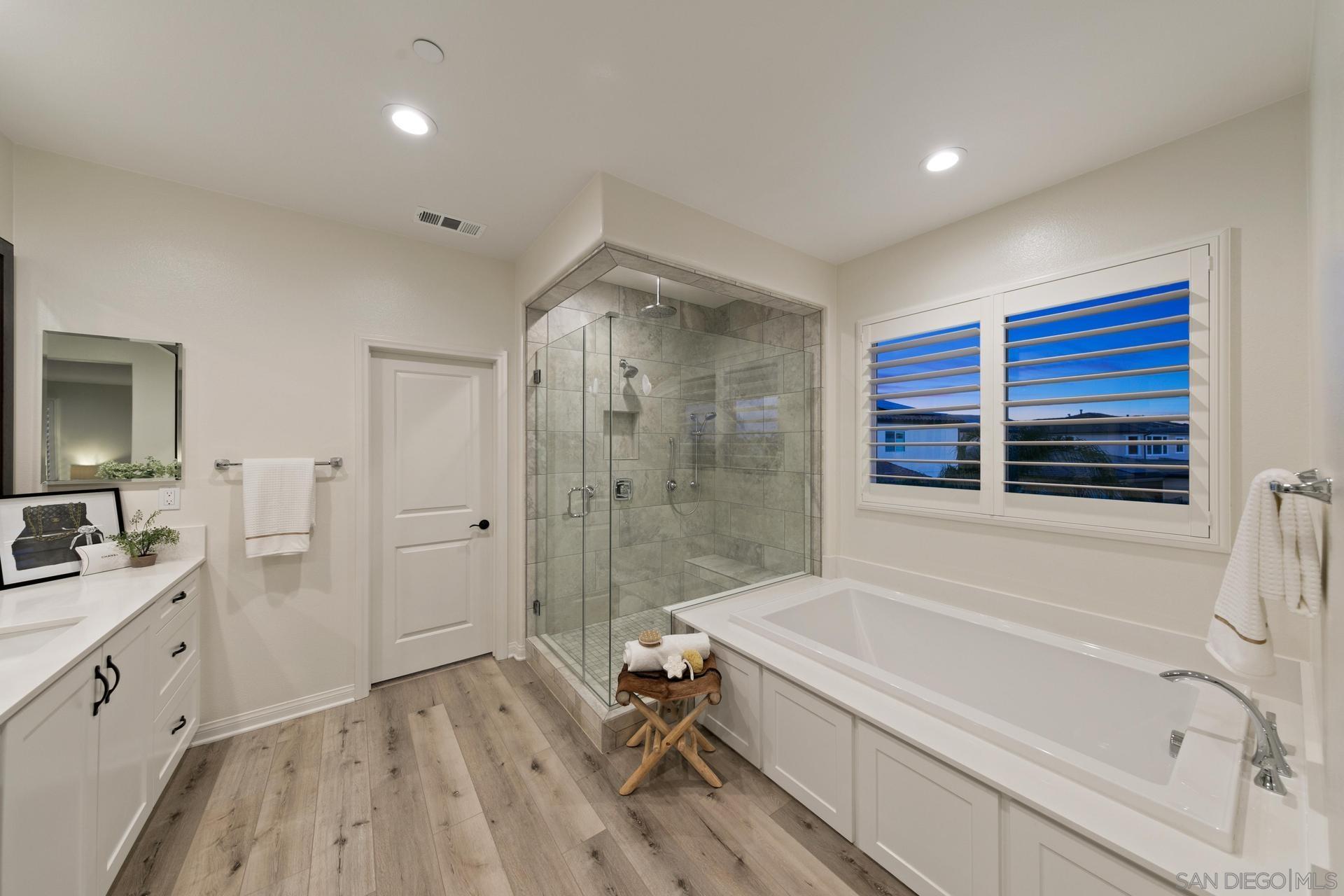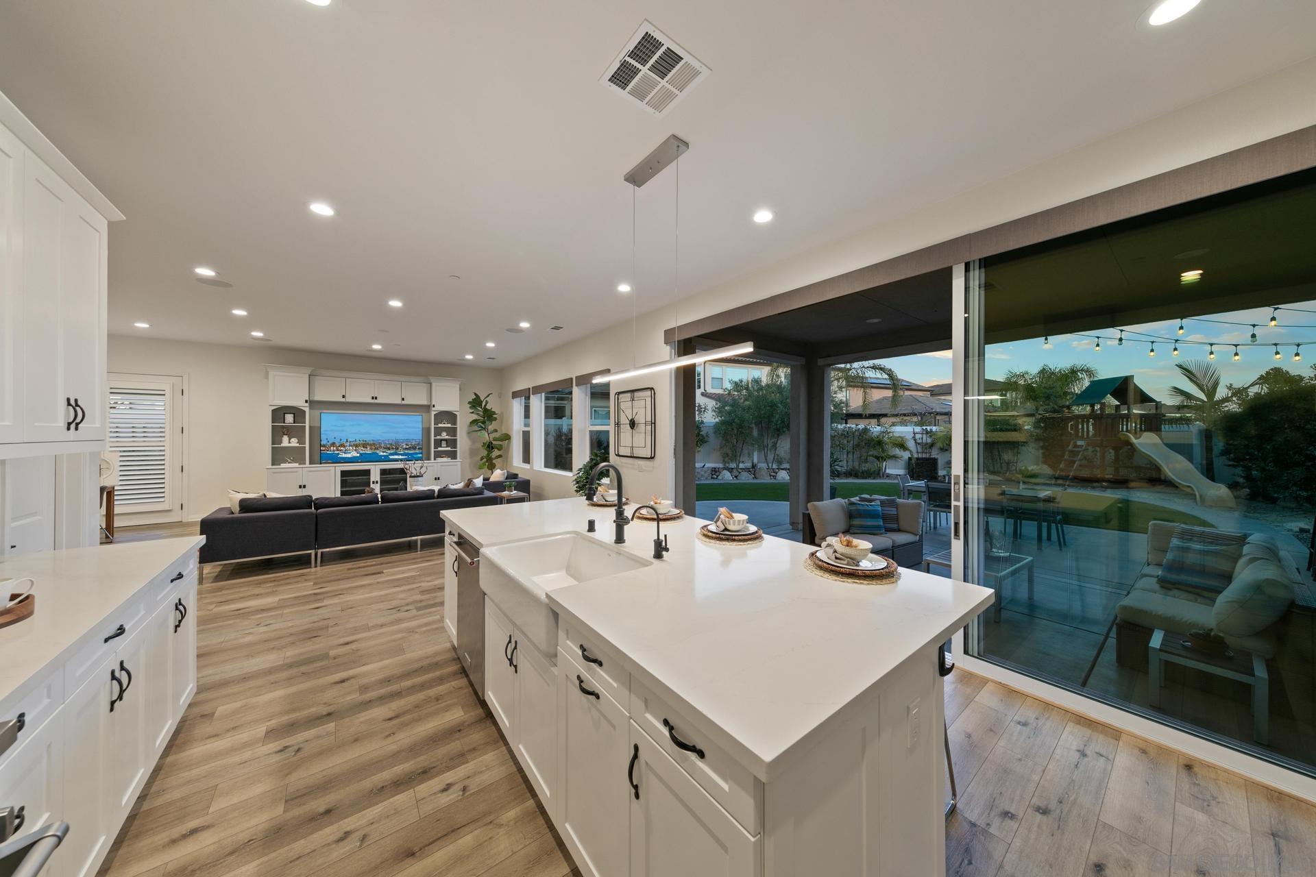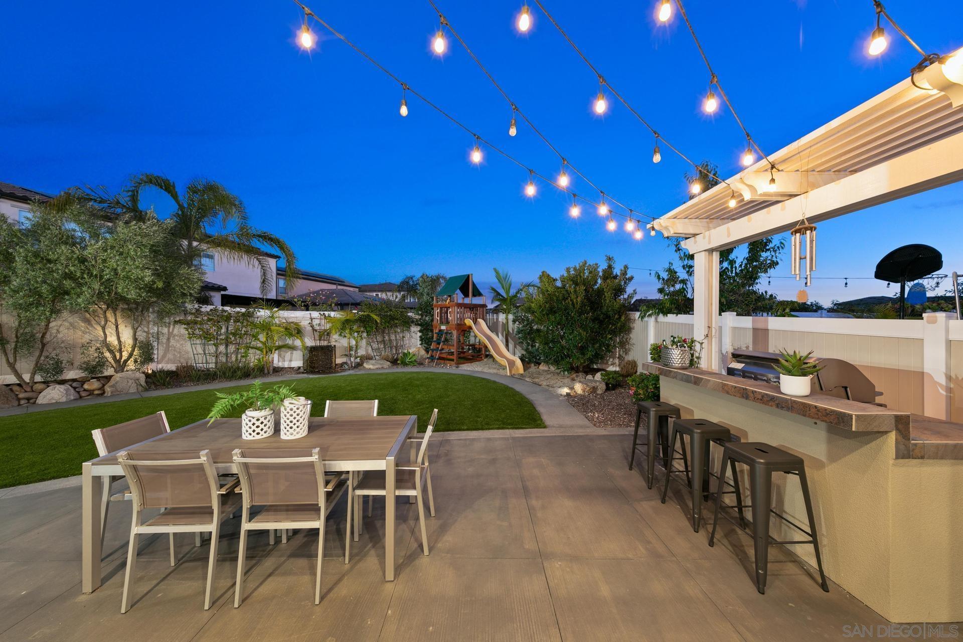 Meticulously crafted Tavara Ridge gem nestled in the highly sought-after Bay Ho neighborhood. This property boasts a prime location, less than 5 miles away from the bay/beach, offering you the perfect blend of coastal living and urban convenience. This executive home features over 250K of upgrades, Owned Solar, 5 bedrooms, plus Office with built in desk/bookcase and 3 full bathrooms. Full bedroom and bathroom downstairs. For the Culinary Master Chef, this Gourmet Kitchen has shaker door Cabinets, beautiful ample spaced Quartz Counters w/ breakfast bar, Diagonal pattern full backsplash, Stainless Steel appliances, Built-In French Door Refrigerator, Even Heat Oven, Clean Water Wash Dishwasher, commercial style Cook Top and large walk-in pantry. A generously sized family room encourages entertaining with a custom built in Entertainment Center, and upgraded dimmable lighting while an open concept dining area with Double French doors enhances special occasions as well as casual family meals. Open your 3-Panel stacking door sliders to enjoy extended outdoor living in your California Room getaway with Fireplace that is ready for your outdoor TV. Low Maintenance, manicured landscaping with lighting, built in BBQ island, vinyl fencing, and Turf Backyard complete this home to have it all. Enjoy your expansive primary bedroom suite with Center Slider doors that open to your private outdoor covered balcony with expansive views plus recessed lighting for an evening retreat. See SupplementInterested in this Listing?