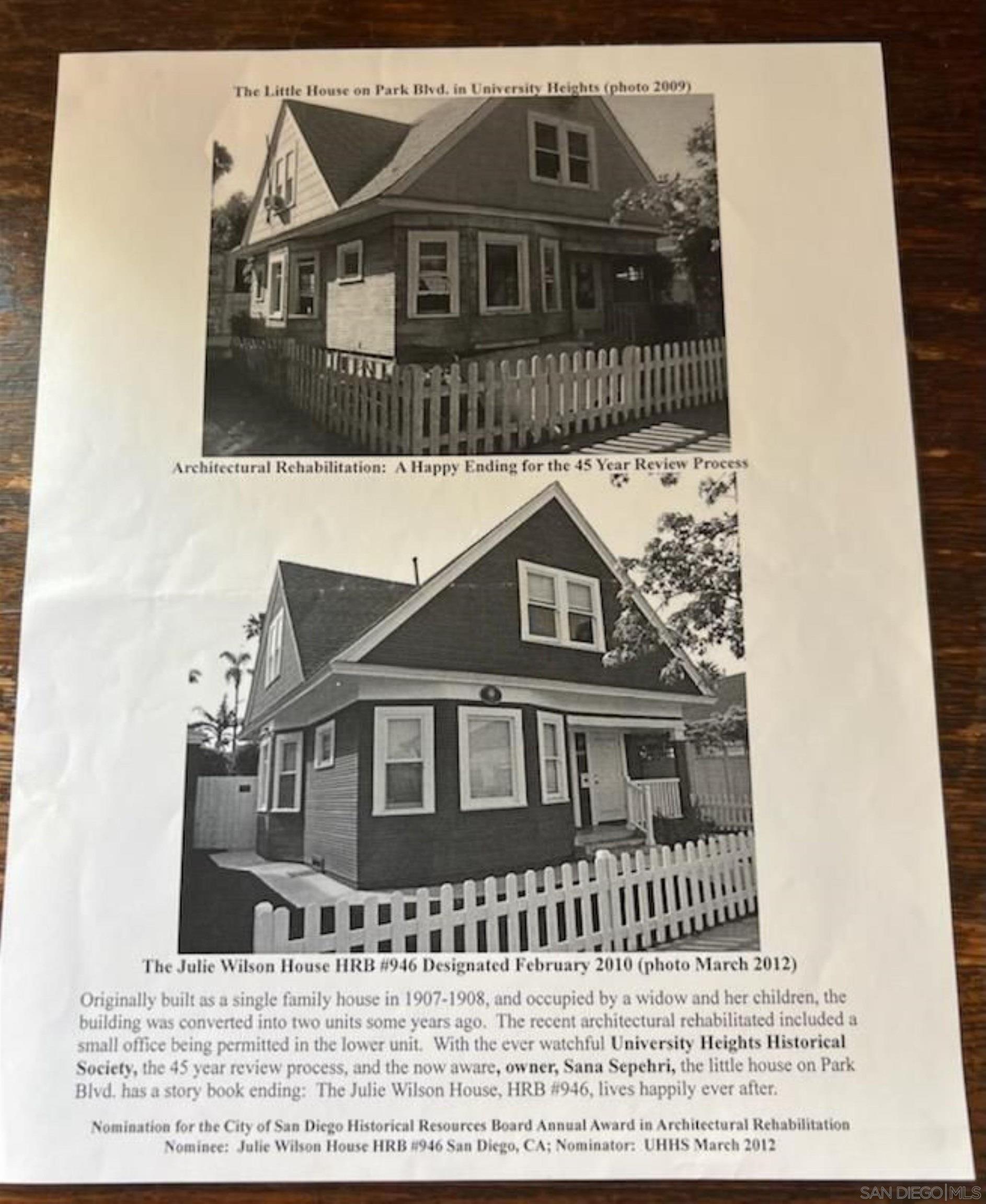 Fantastic opportunity to own a 3 unit investment property one of which has commercial usage possibilities on highly desired University Heights Park Blvd main Street. Live in one, work in the other and rent out the other one! This gorgeous craftsman was designated an historical landmark in 1908 known as the Julia Wilson House. The property has been beautifully updated throughout while keeping with the original charm, new kitchens and baths, off street parking and fenced yard. Located in the heart of University Heights, walk and bike to your neighborhood restaurants, shops, Trolley Barn Park. Close to freeway and public transportation. Mills Act in place with significant savings on property taxes.Interested in this Listing?