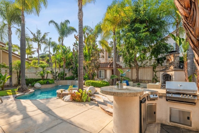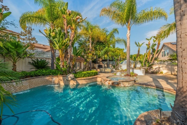 Splash into summer with this tropical resort backyard, perfect for entertaining! From the moment of arrival, this gorgeous Mediterranean style beauty will capture your attention. Spacious 4 bedroom, 3 bath features oversized living/dining room overlooking pool and spa. New floors lead you to open kitchen family room combo and into a spectacular outdoor living oasis. Proudly take ownership today, the home you will never want to leave! See Supplement Welcome to highly desired neighborhood located in the heart of Carmel Valley. Your new oasis is equipped with a heated pool, waterfall and spa combo! The gorgeous estate is situated in a prime area, cul-de-sac with great schools near by! Lovely features include gourmet eat-in kitchen with granite countertops, backsplash, island w/pull up bar open concept to the family room with fireplace. Downstairs office can be bedroom with French doors leading to front yard patio with pineapple fountain. Upstairs discover the oversized master suite with cathedral ceiling with a 3-sided fireplace and retreat overlooking the lush backyard, large walk in closet, soaking tub, separate shower. From Master suite to bedrooms 2 and 3 is a loft with French door and balcony. Laundry room located downstairs near 3 car garage off of kitchen area. Additional details include: All bedrooms have ceiling fans. Home has 54 recessed lights. Backyard has builtin BBQ, Fireplace, playhouse, REMASTERED pool includes new pumps, filter, and heater with modern efficiency. Pool table and some furniture, art work can convey with sale. MUST SEE!. Neighborhoods: Palma Del Mar Equipment: Dryer,Garage Door Opener,Pool/Spa/Equipment, Washer Other Fees: 0 Sewer: Sewer Connected Topography: LLInterested in this Listing?