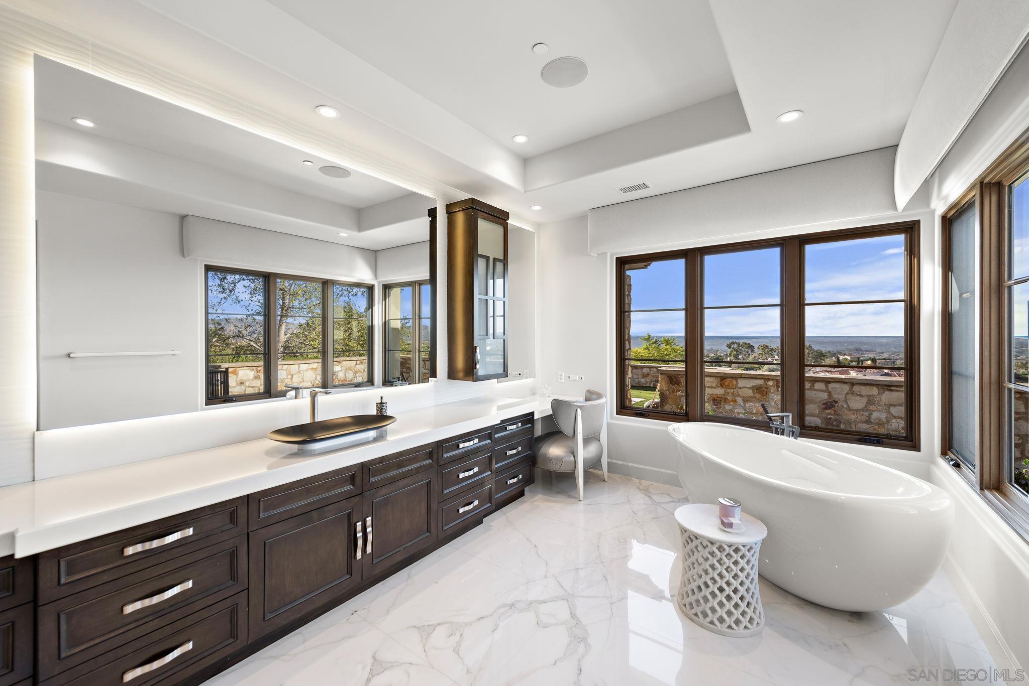 Welcome to the epitome of luxury! Nestled behind the guarded gates of Santaluz, this private oasis on the 17th hole is an entertainer s dream. Designed for seamless indoor-outdoor living, the home boasts breathtaking ocean and valley views from your vanishing edge pool, complete with a slide to a secondary pool. Relax in the separate jacuzzi as you enjoy stunning sunsets. Inside, the chef s kitchen features premium appliances and thoughtful design, perfect for culinary enthusiasts. Each bedroom offers an en-suite bathroom, while the primary suite impresses with dual closets. Additional highlights include a detached casita, a 5-car garage, a home theater, a game room, and a soundproof music studio. Owner-owned solar and a whole-home water filtration system complete this exceptional property.Interested in this Listing?