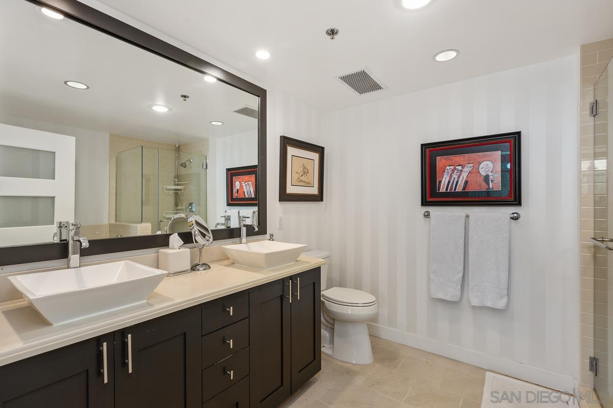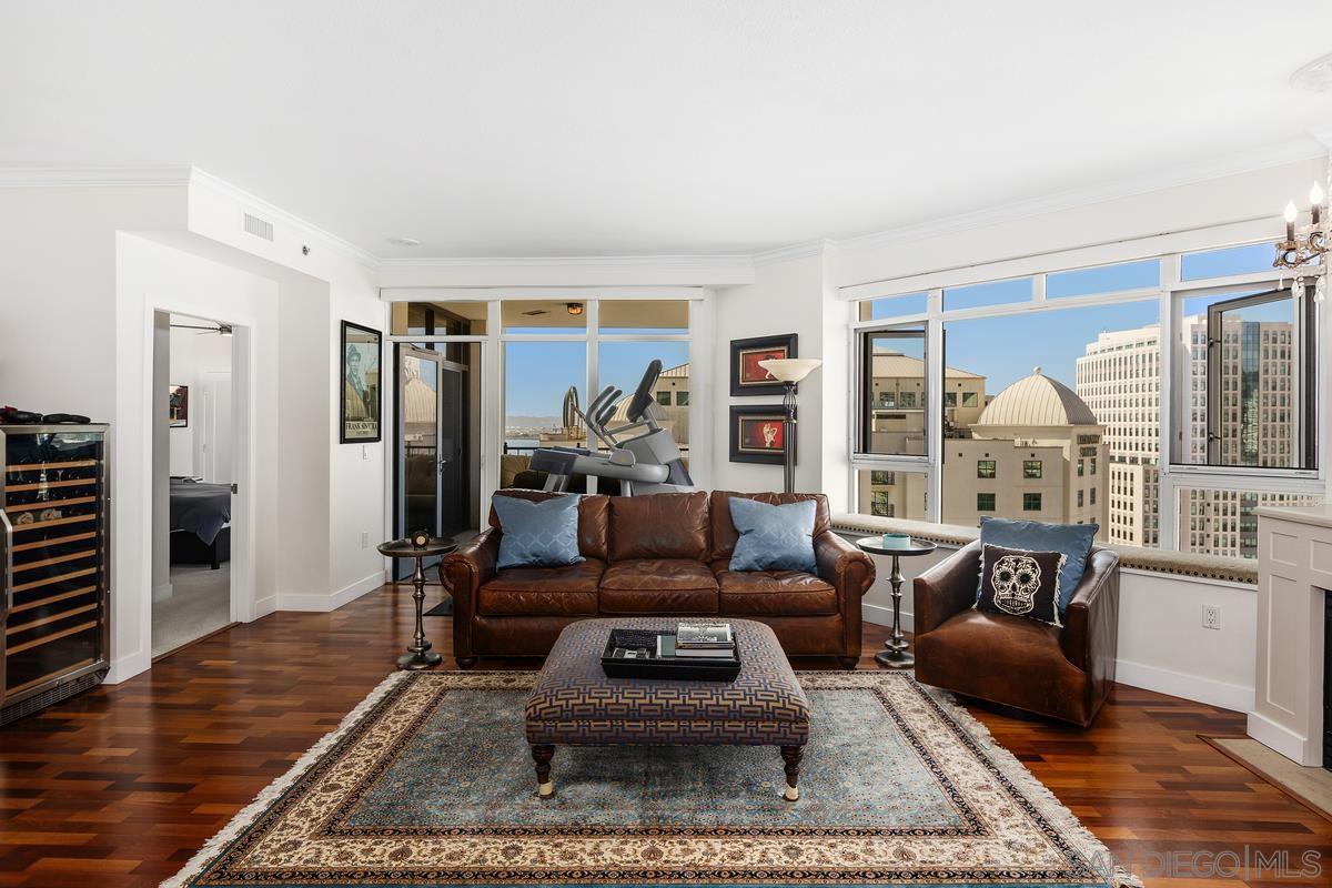 Rarely on the market and highly desirable northwest facing Park Place condo with a split 2-bedroom floorplan features mesmerizing downtown cityscape and bay views, from North Island and Point Loma, to the twinkling lights of the Marina District and the recently completed IQHQ. The elegantly renovated kitchen is highlighted by the addition of a built-in bar providing extended counter space, with dual built-in wine refrigerators, expanded island with a custom upholstered seating area, beautiful beveled quartz...Interested in this Listing?
