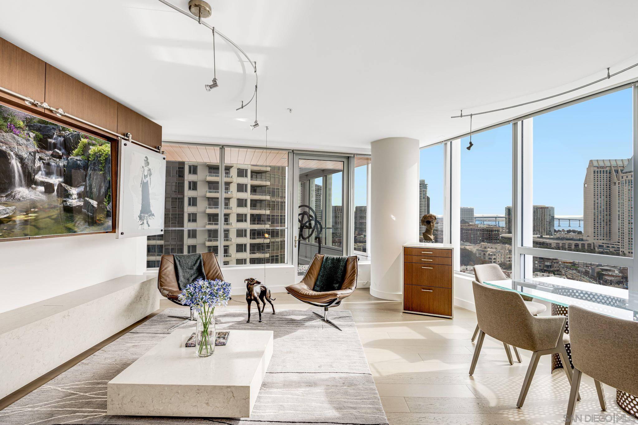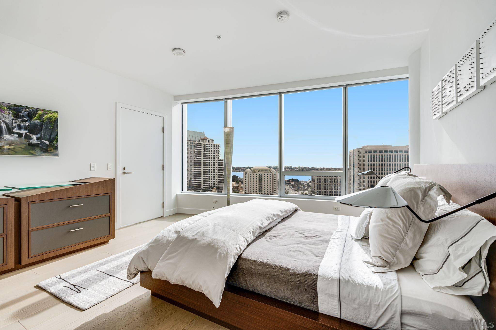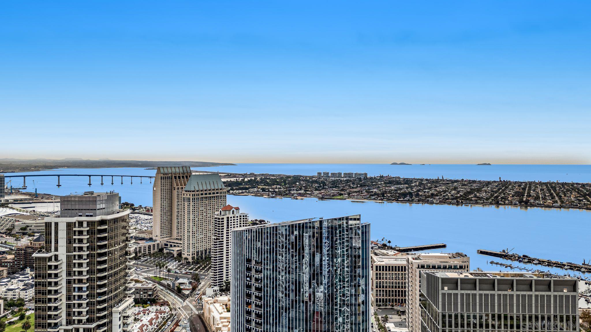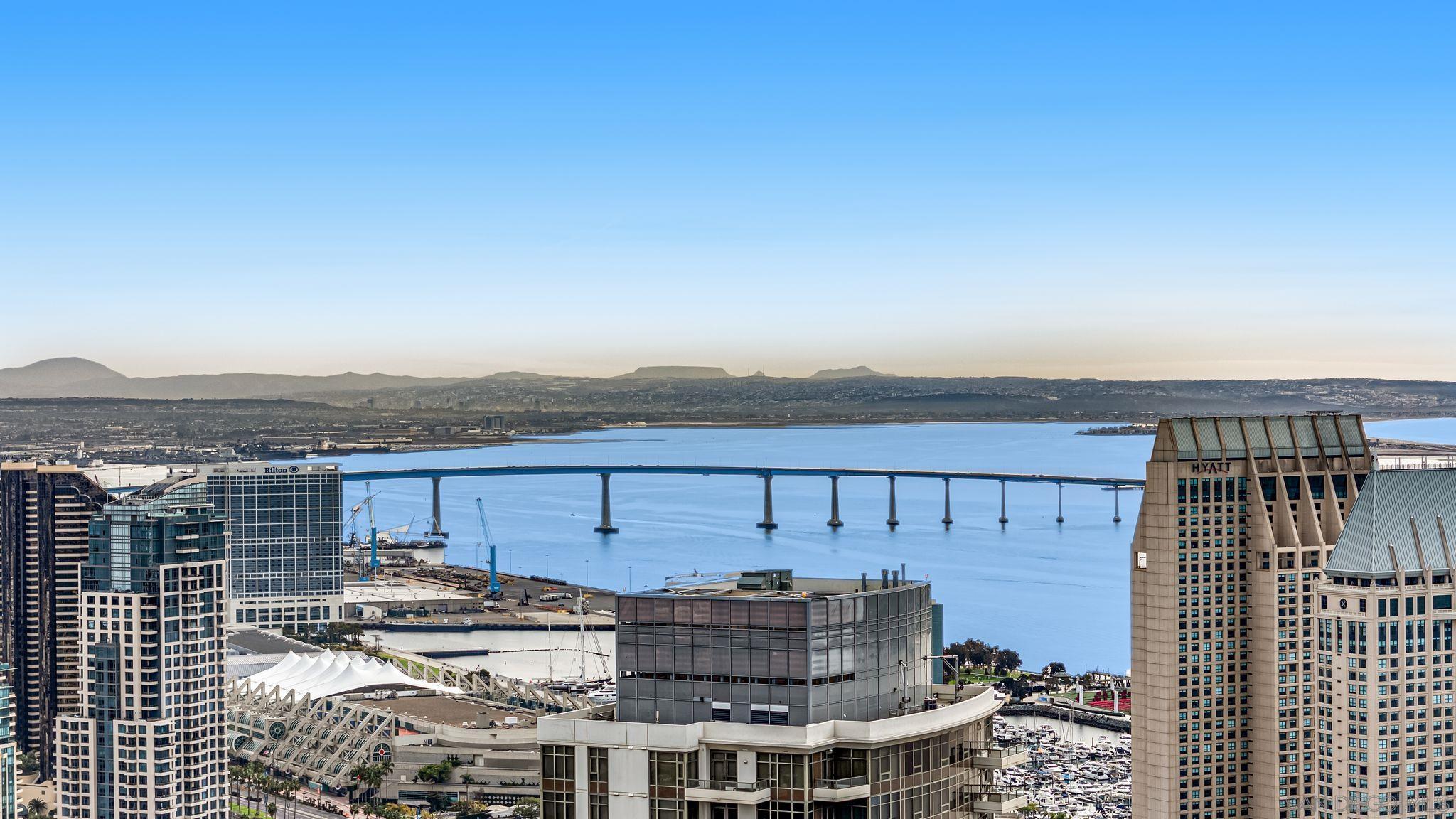 Experience the pinnacle of waterfront luxury in this SE, S, and SW-facing residence at the iconic Pacific Gate. Captivating views stretch from Point Loma and the Pacific Ocean to the San Diego Bay, Coronado Bridge, Mexico, and beyond offering a breathtaking backdrop for everyday living. The home has been thoughtfully upgraded by the seller, featuring a custom media center in the living room and built-ins in the second bedroom. The split bedroom layout offers maximum use of space while ensuring privacy. Beautiful en-suite elevates comfort with heated floors, a separate glass-enclosed shower, a relaxing soaking tub, and a spacious walk-in closet. Pacific Gate redefines luxury with unparalleled amenities: enjoy access to a private luxury car fleet, a yacht share, 24-hour concierge services, a resort-style pool with cabanas, a state-of-the-art fitness center, a resident lounge, a screening room, and a guest suite. Perfectly situated to offer the best of city living, this residence is steps from premier shopping, dining, and entertainment, while its elevated position ensures tranquility and exclusivity.Interested in this Listing?
