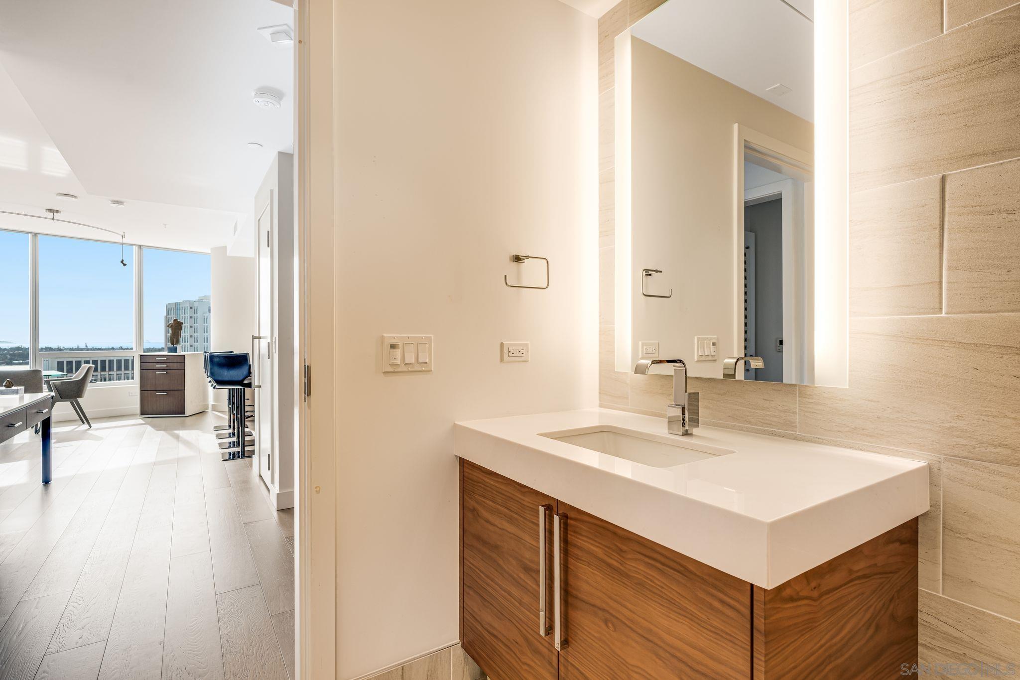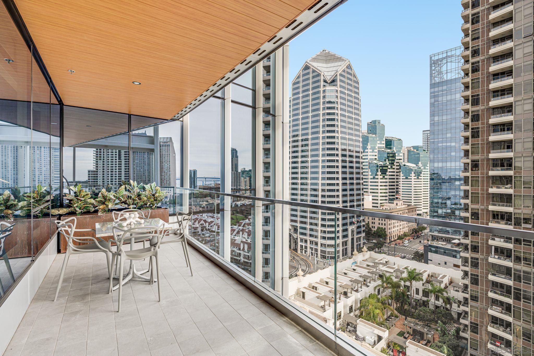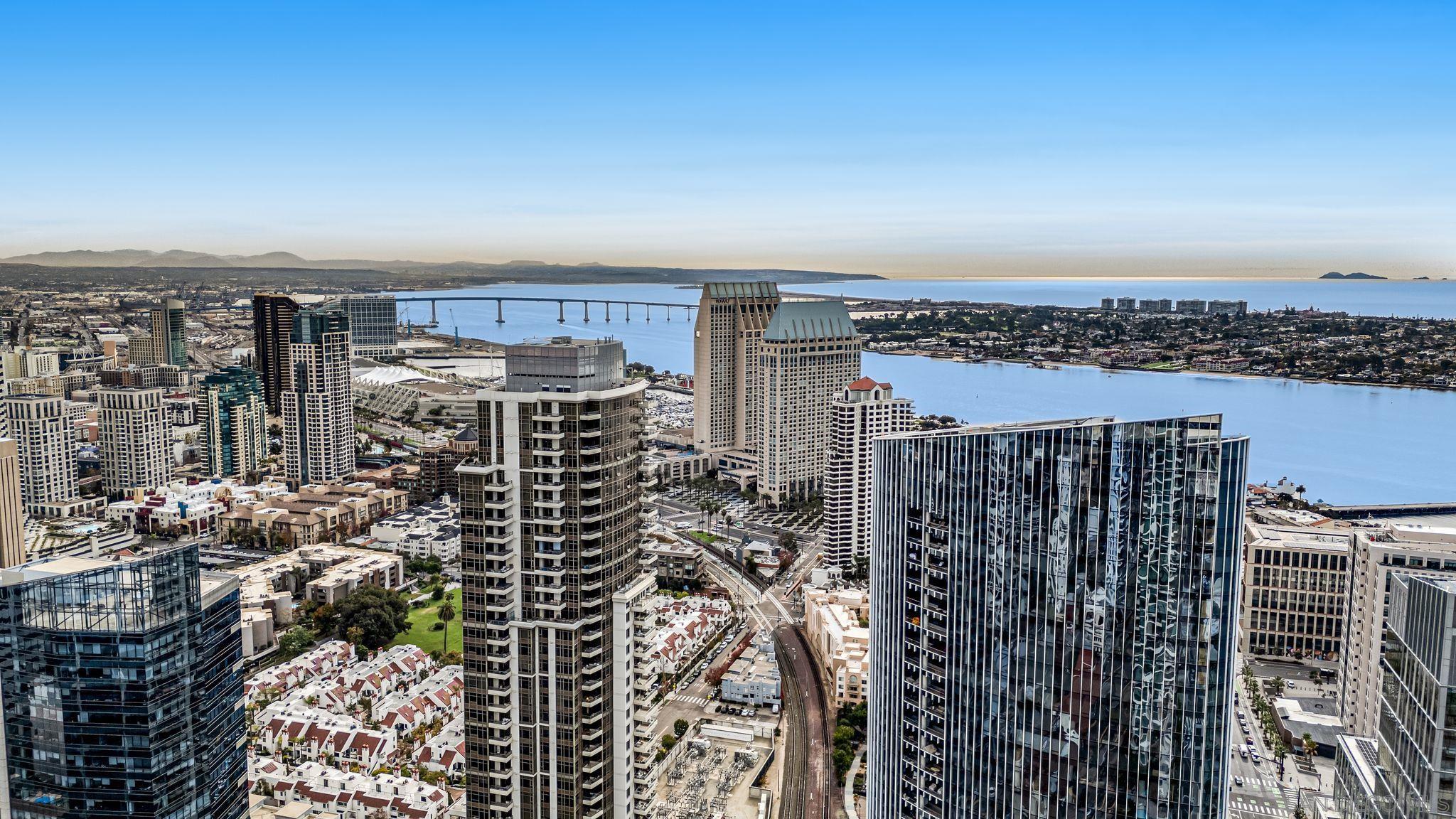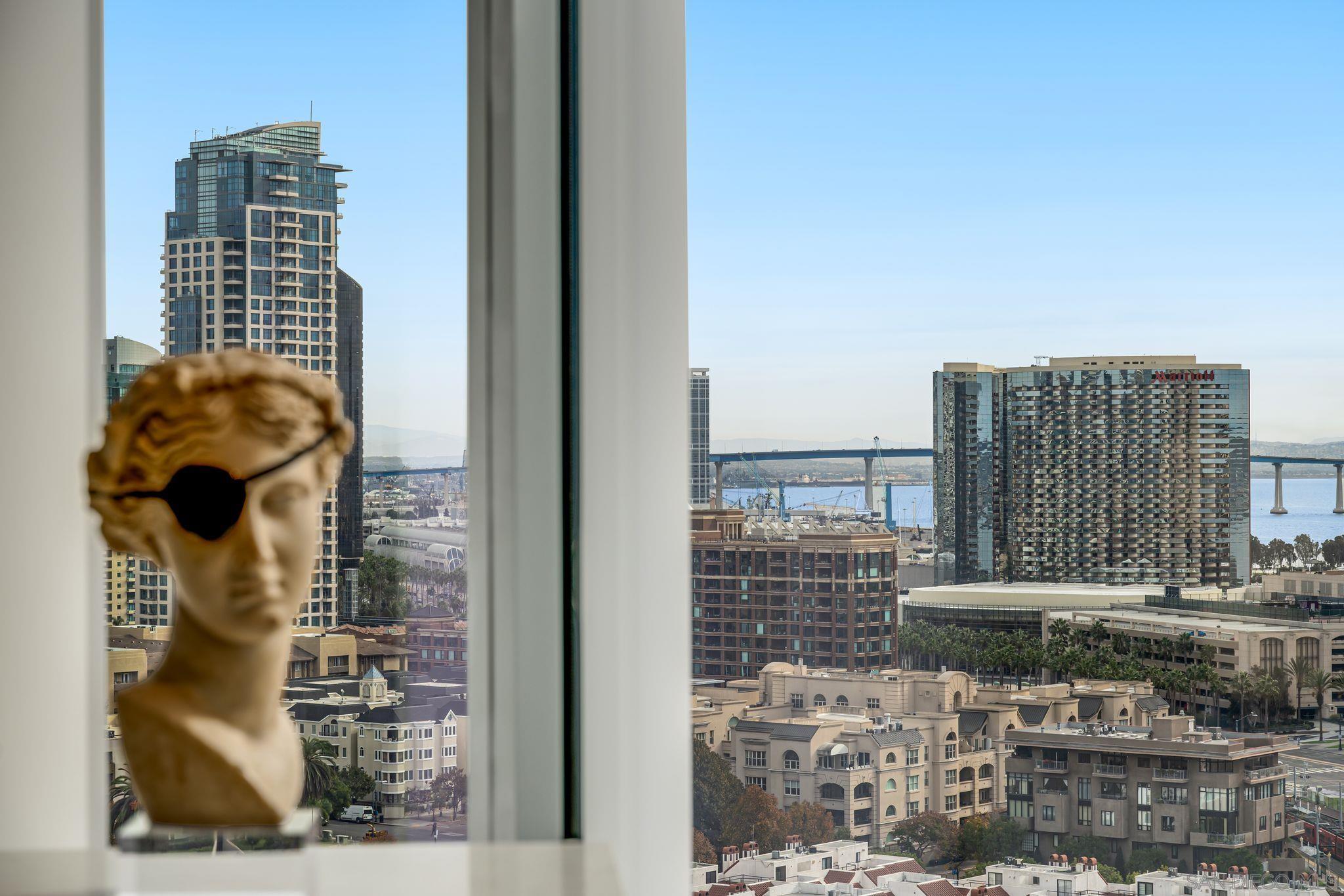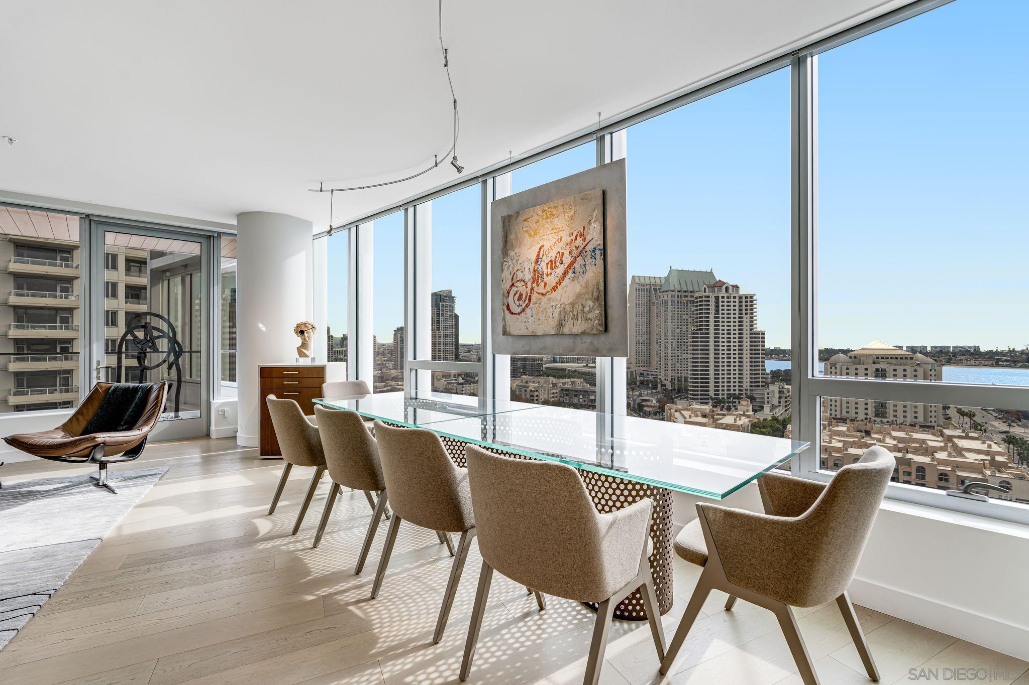 Experience the pinnacle of waterfront luxury in this SE, S, and SW-facing residence at the iconic Pacific Gate. Captivating views stretch from Point Loma and the Pacific Ocean to the San Diego Bay, Coronado Bridge, Mexico, and beyond offering a breathtaking backdrop for everyday living. The home has been thoughtfully upgraded by the seller, featuring a custom media center in the living room and built-ins in the second bedroom. The split bedroom layout offers maximum use of space while ensuring privacy. Beautiful en-suite elevates comfort with heated floors, a separate glass-enclosed shower, a relaxing soaking tub, and a spacious walk-in closet. Pacific Gate redefines luxury with unparalleled amenities: enjoy access to a private luxury car fleet, a yacht share, 24-hour concierge services, a resort-style pool with cabanas, a state-of-the-art fitness center, a resident lounge, a screening room, and a guest suite. Perfectly situated to offer the best of city living, this residence is steps from premier shopping, dining, and entertainment, while its elevated position ensures tranquility and exclusivity.Interested in this Listing?