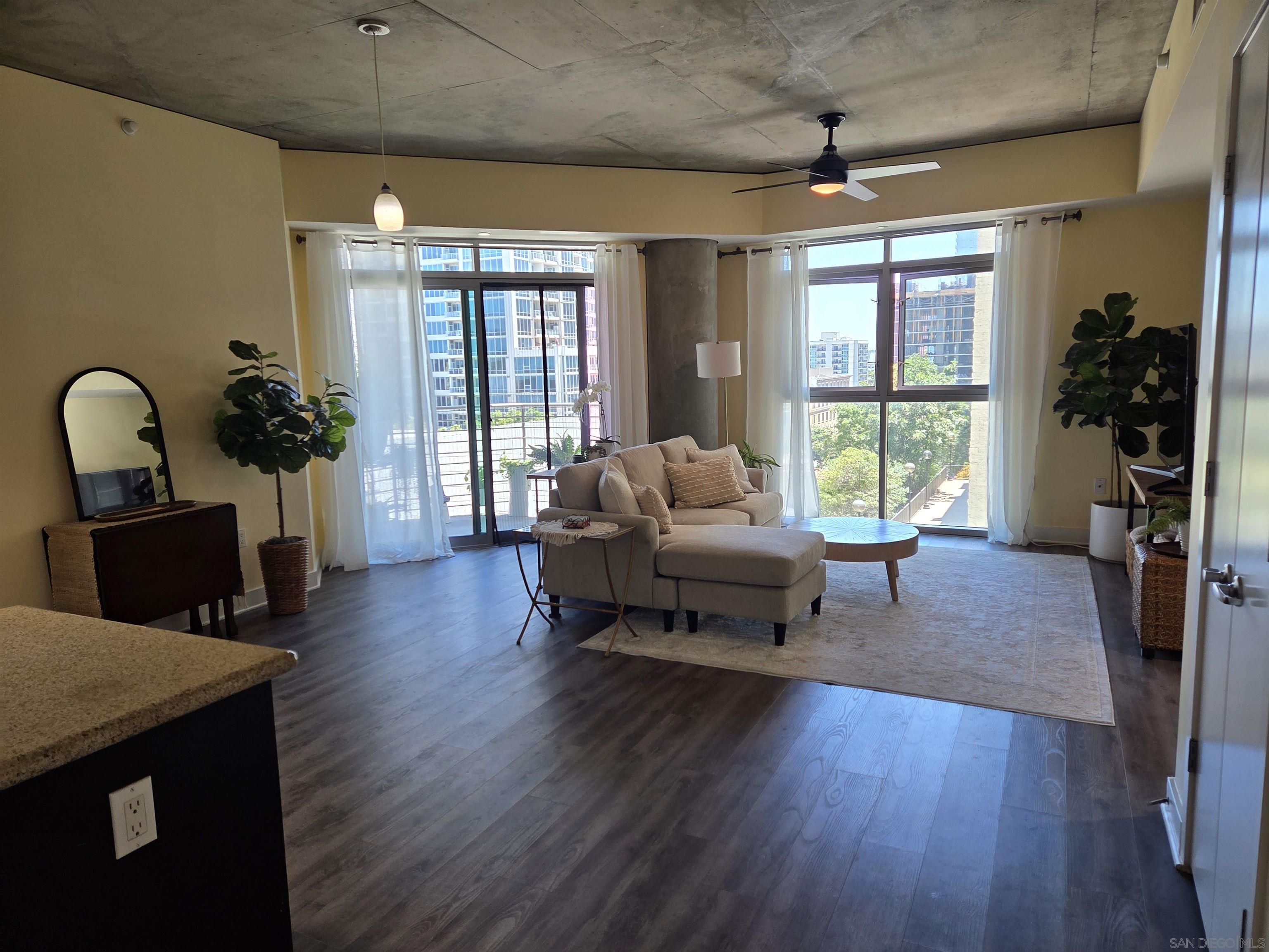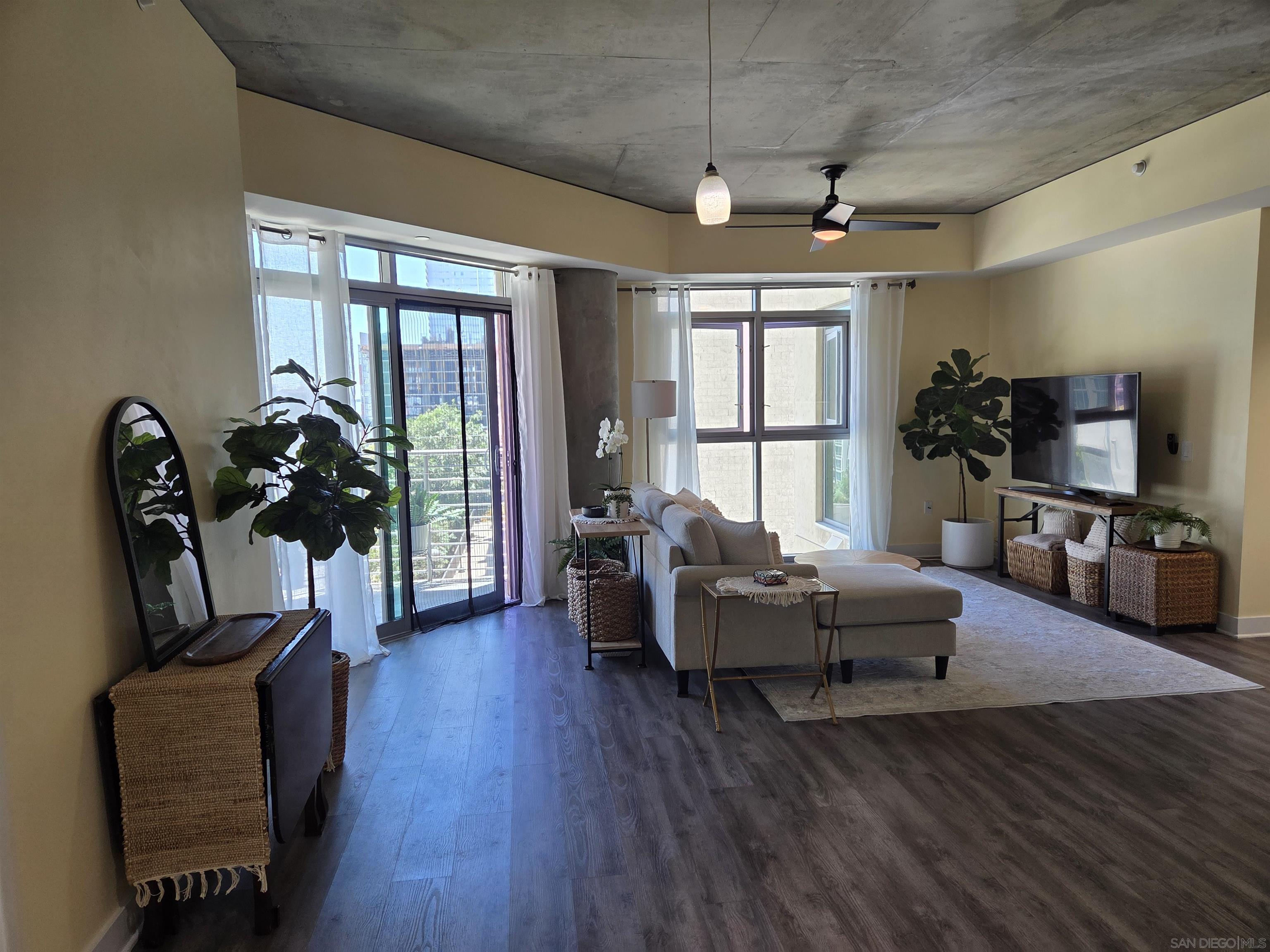 Price reduction plus the seller will consider a credit for a temporary interest rate buy down! This beautiful, spacious and light-filled condo is located in the very walkable neighborhood of Cortez Hill, conveniently located on a hill in the northeast area of downtown with jacaranda lined streets, in the highly sought after Cortez Blu building! Cortez Hill is located within walking distance of Balboa Park, south of Banker's Hill and east of Little Italy. Enjoy the city views from your private balcony or through the floor to ceiling windows in every room. There are newer, beautiful luxury vinyl tile floors throughout the main areas of the condo with carpet in the large master bedroom and second bedroom. The soaring cement ceilings and expansive windows compliment the gourmet kitchen with newer appliances and a large pantry. The kitchen flows freely into the expansive and open living spaces. The master bedroom has a large walk-in closet, en-suite bathroom with dual vanities, a luxurious soaking tub as well as a separate shower. The second bedroom is a nice size with large windows and there is a second full bathroom close by, as well as a full size washer and dryer. The concrete ceilings and floors also provide a very quiet space for you to enjoy. There is one dedicated parking space, plus, for residents of Cortez Hill, additional permitted street parking is available for a $15 annual fee!Interested in this Listing?