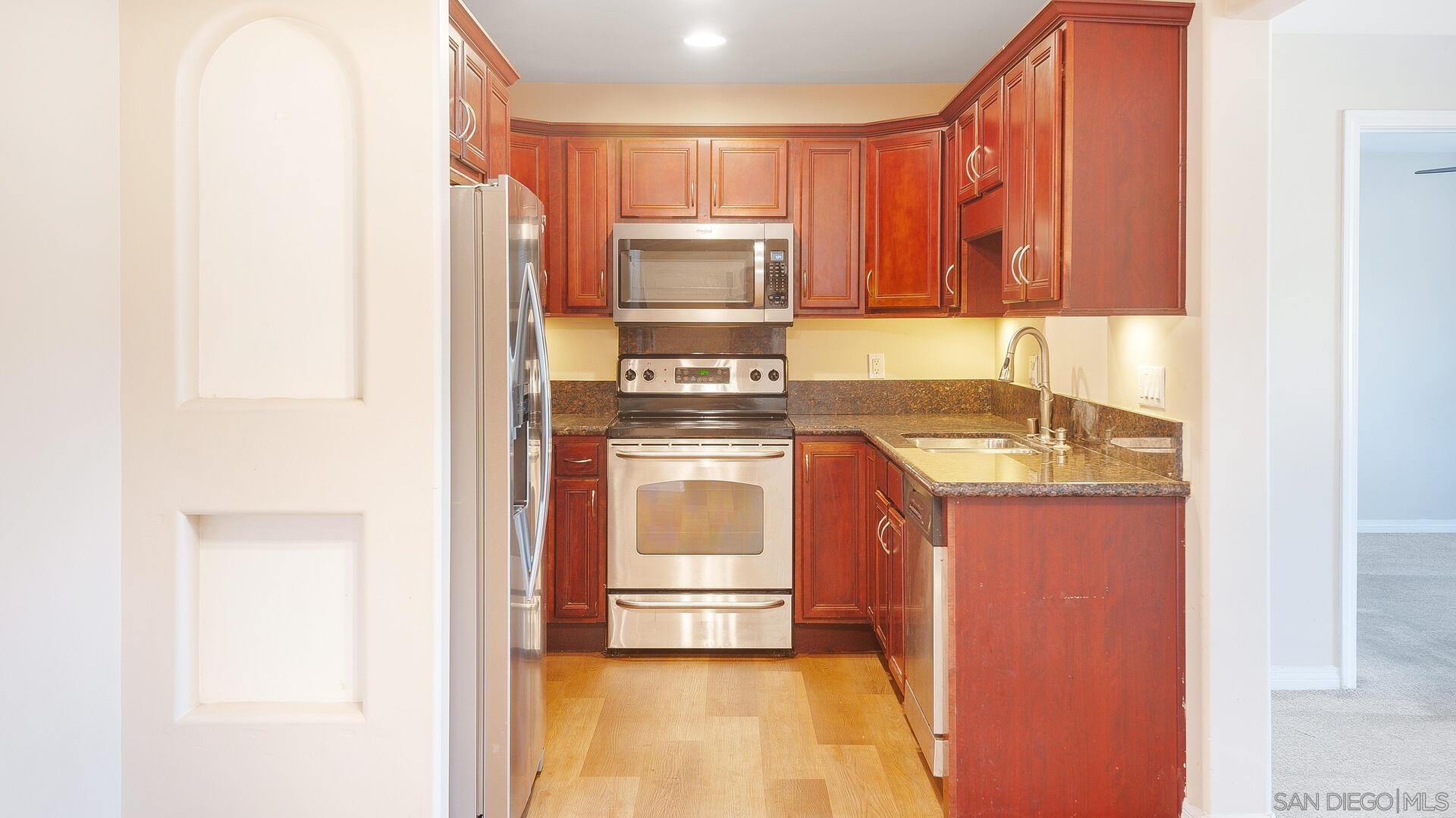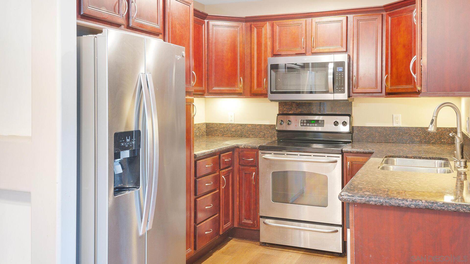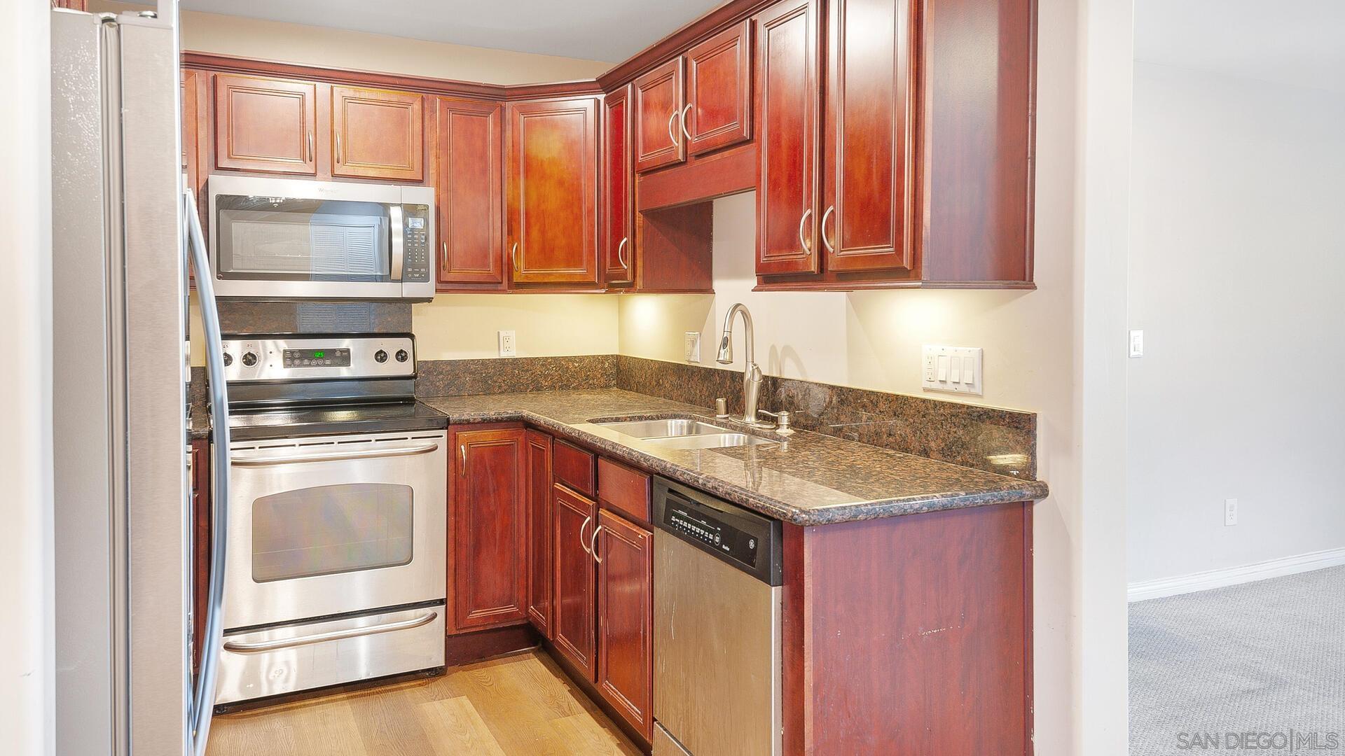 This beautifully upgraded 2BR/2BA condo is located walking distance to SDSU in the desirable 'Collwood Point complex & features TWO reserved parking stalls! Completely remodeled kitchen features all stainless-steel appliances & granite slab countertops w/ cherry wood cabinetry, opening up directly to the spacious living room & dining nook. Interior upgrades also include recessed lighting throughout the main living areas, upgraded baseboards, ceiling fans in each BR, upgraded baths w/ matching granite & cherry wood vanities & tile shower, 'in-unit' stackable washer/ dryer for convenience, newer Central A/C for cooling & more! Upper, corner unit in a quiet & central location w/ only 1 shared wall. Secure building & gated complex w/ elevator, GATED parking within complex & 2 parking stalls sit just outside the unit! Complex amenities include Pool/ Spa, fitness center & community BBQ. Walking or biking distance of only .8 miles to SDSU w/ easy access to freeway & nearby public transportation. Great investment. Fantastic location! Complex is perfect for a rental, student residence &/ or owner occupant. Low monthly HOA fee includes water, trash & sewer + the HOA is currently redoing the entire complex w/ new roofing.Interested in this Listing?