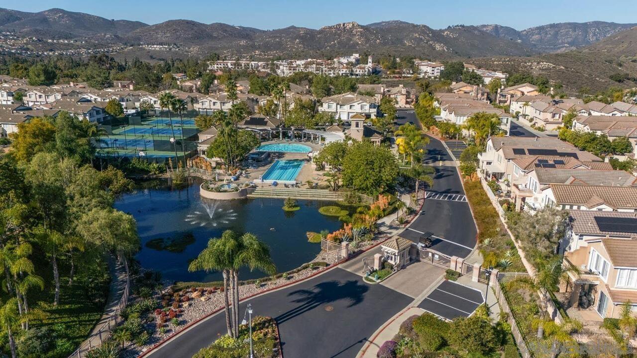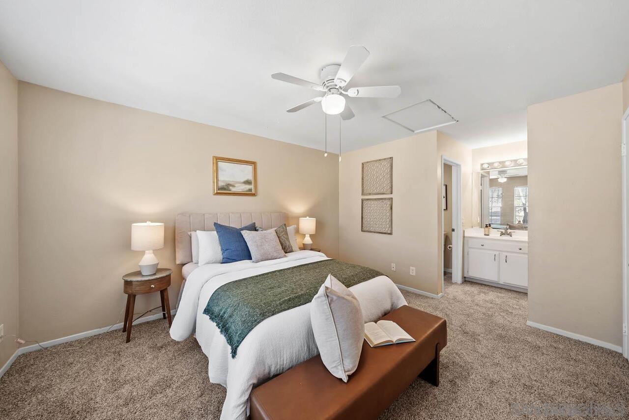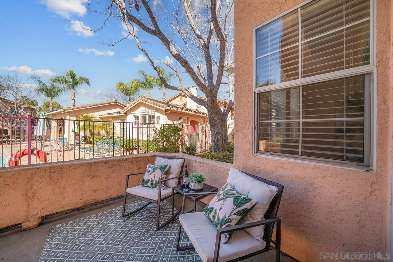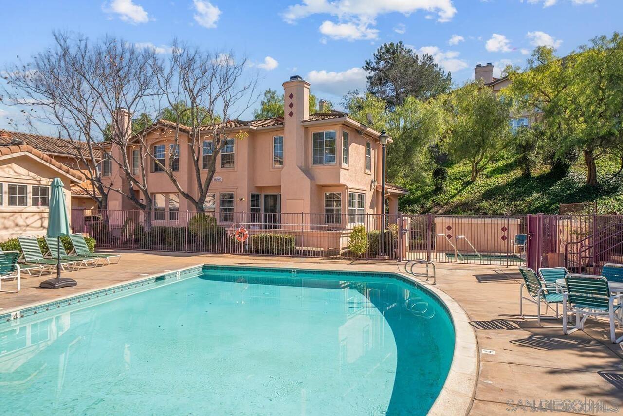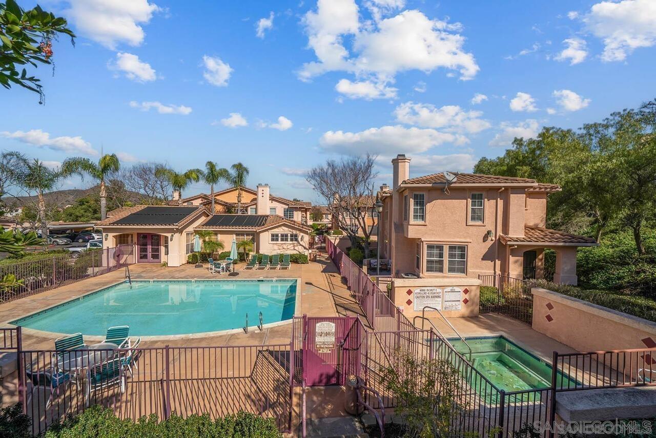 Discover the perfect blend of luxury and convenience in this stunning corner townhome, with the sought-after and rarely available floorplan featuring spacious dual master suites upstairs that lives like a single family home. Located in the prestigious Morada community of the gated Vista Del Lago, this Mediterranean-inspired neighborhood offers resort-style living with a prime location behind the smaller community pool and spa, giving your oversized patio a private, vacation-like feel. Inside, enjoy an abundance of natural light, tile floors, new carpet, a cozy slate hearth, ceiling fans, a Nest Smart thermostat, and upgraded recessed lighting. The kitchen is equipped with stainless steel appliances, a laundry closet with extra storage, and a new washing machine, dishwasher, and microwave (installed in 2023). Residents enjoy world-class amenities, including multiple pools and spas, an exercise room, tennis and pickleball courts, a basketball court, a playground, a dog park, a clubhouse with a pool table, and a scenic pond with a fountain. The community also features EV charging stations and a 24-hour guarded entrance for added security and peace of mind. Situated in the award-winning Poway Unified School District and just minutes from Lake Hodges, hiking trails, golf courses, wineries, and top-rated schools, this home offers the best of Rancho Bernardo living. VA approved. HOA includes water, sewer, trash, and amenities. Don t miss your chance to live your best life here!Interested in this Listing?