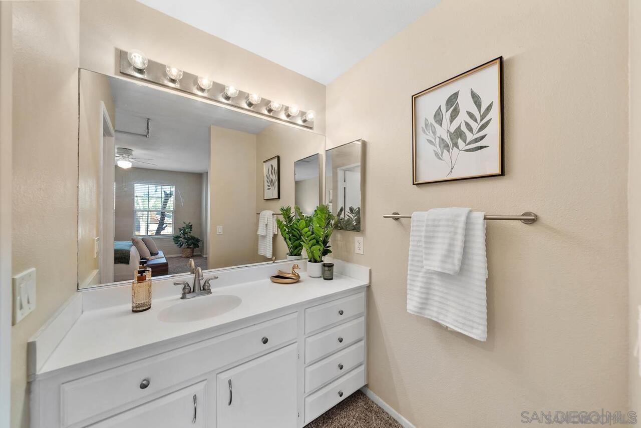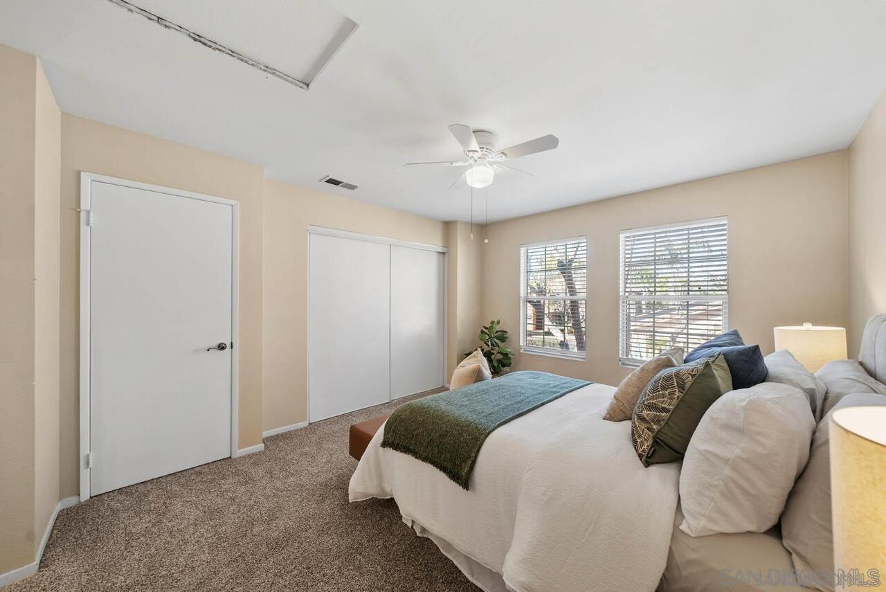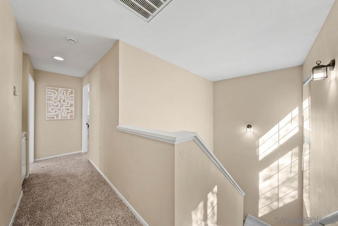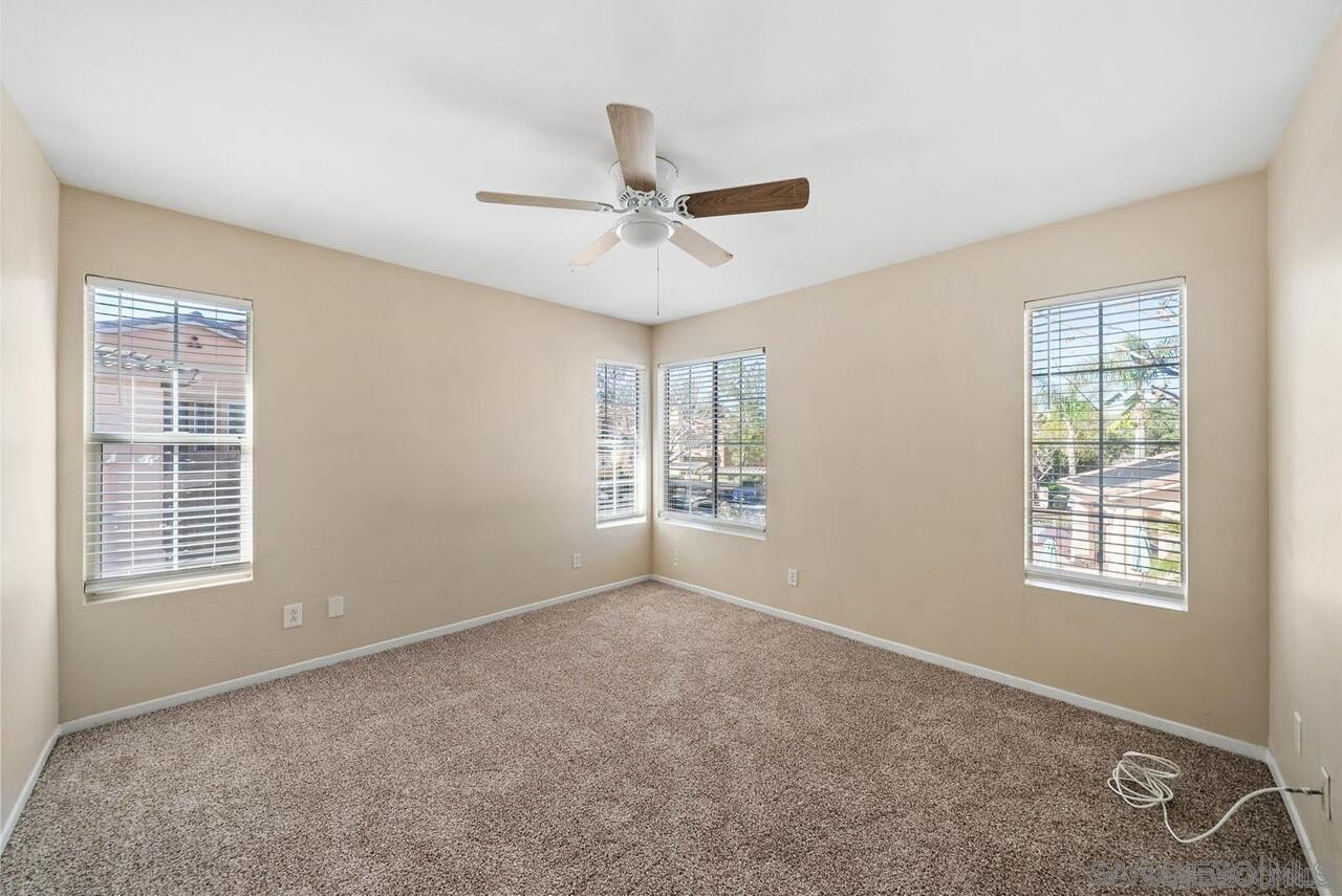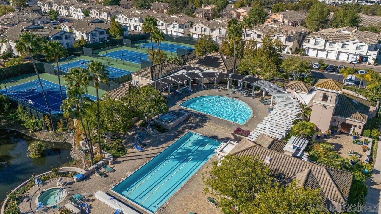 Discover the perfect blend of luxury and convenience in this stunning corner townhome, with the sought-after and rarely available floorplan featuring spacious dual master suites upstairs that lives like a single family home. Located in the prestigious Morada community of the gated Vista Del Lago, this Mediterranean-inspired neighborhood offers resort-style living with a prime location behind the smaller community pool and spa, giving your oversized patio a private, vacation-like feel. Inside, enjoy an abundance of natural light, tile floors, new carpet, a cozy slate hearth, ceiling fans, a Nest Smart thermostat, and upgraded recessed lighting. The kitchen is equipped with stainless steel appliances, a laundry closet with extra storage, and a new washing machine, dishwasher, and microwave (installed in 2023). Residents enjoy world-class amenities, including multiple pools and spas, an exercise room, tennis and pickleball courts, a basketball court, a playground, a dog park, a clubhouse with a pool table, and a scenic pond with a fountain. The community also features EV charging stations and a 24-hour guarded entrance for added security and peace of mind. Situated in the award-winning Poway Unified School District and just minutes from Lake Hodges, hiking trails, golf courses, wineries, and top-rated schools, this home offers the best of Rancho Bernardo living. VA approved. HOA includes water, sewer, trash, and amenities. Don t miss your chance to live your best life here!Interested in this Listing?