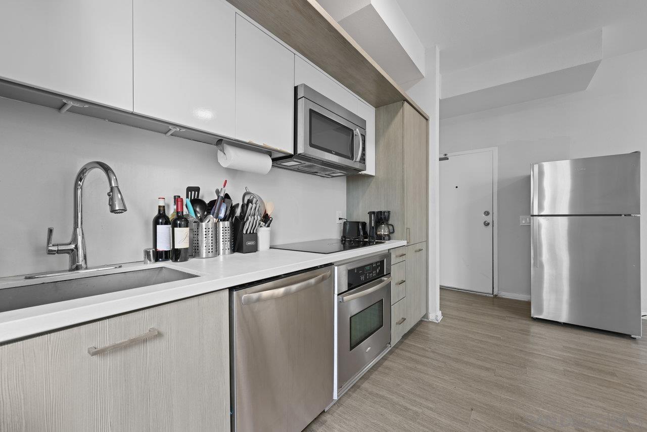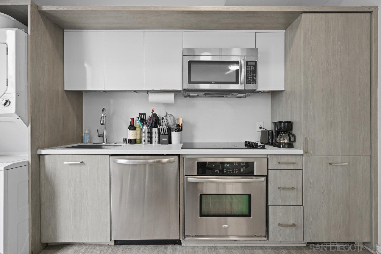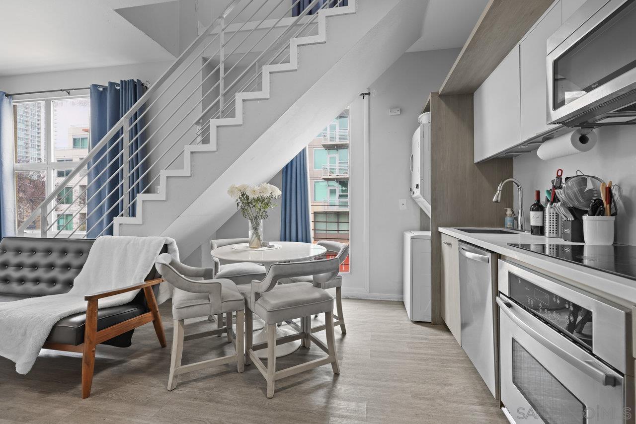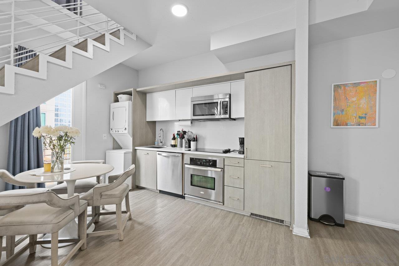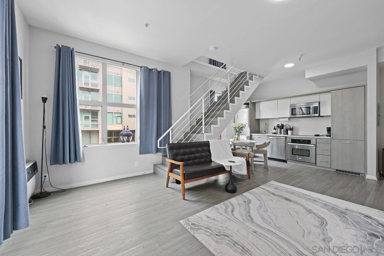 Step into this sleek and modern two-level loft designed by renowned architect Jonathan Segal, located in the heart of East Village. This contemporary home boasts an open living, dining, and kitchen area on the entry level, complemented by a private patio perfect for outdoor dining or relaxation. The upper level features a spacious bedroom and bath that opens up to a rooftop deck, providing a unique and inviting urban retreat. Highlights: 660 sq. ft. of thoughtfully designed living space New flooring throughout and an on-trend kitchen In-unit laundry for added convenience One dedicated parking space in a gated lot (#22) Enjoy the vibrant lifestyle of East Village, just a short distance away from popular restaurants, Petco Park, and downtown attractions. This unit is located on the second floor of a boutique complex with 36 units. Please note there is no elevator access.Interested in this Listing?