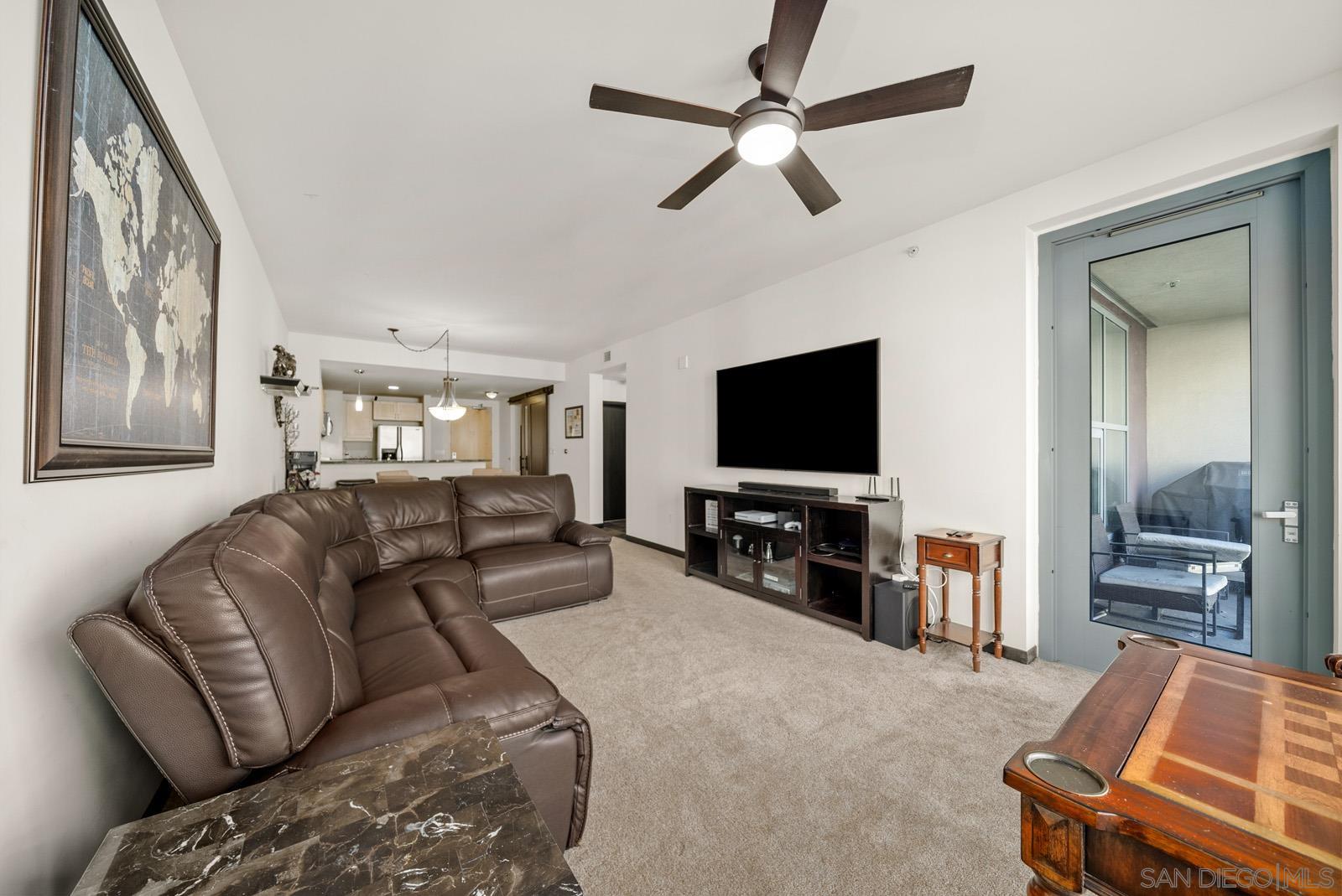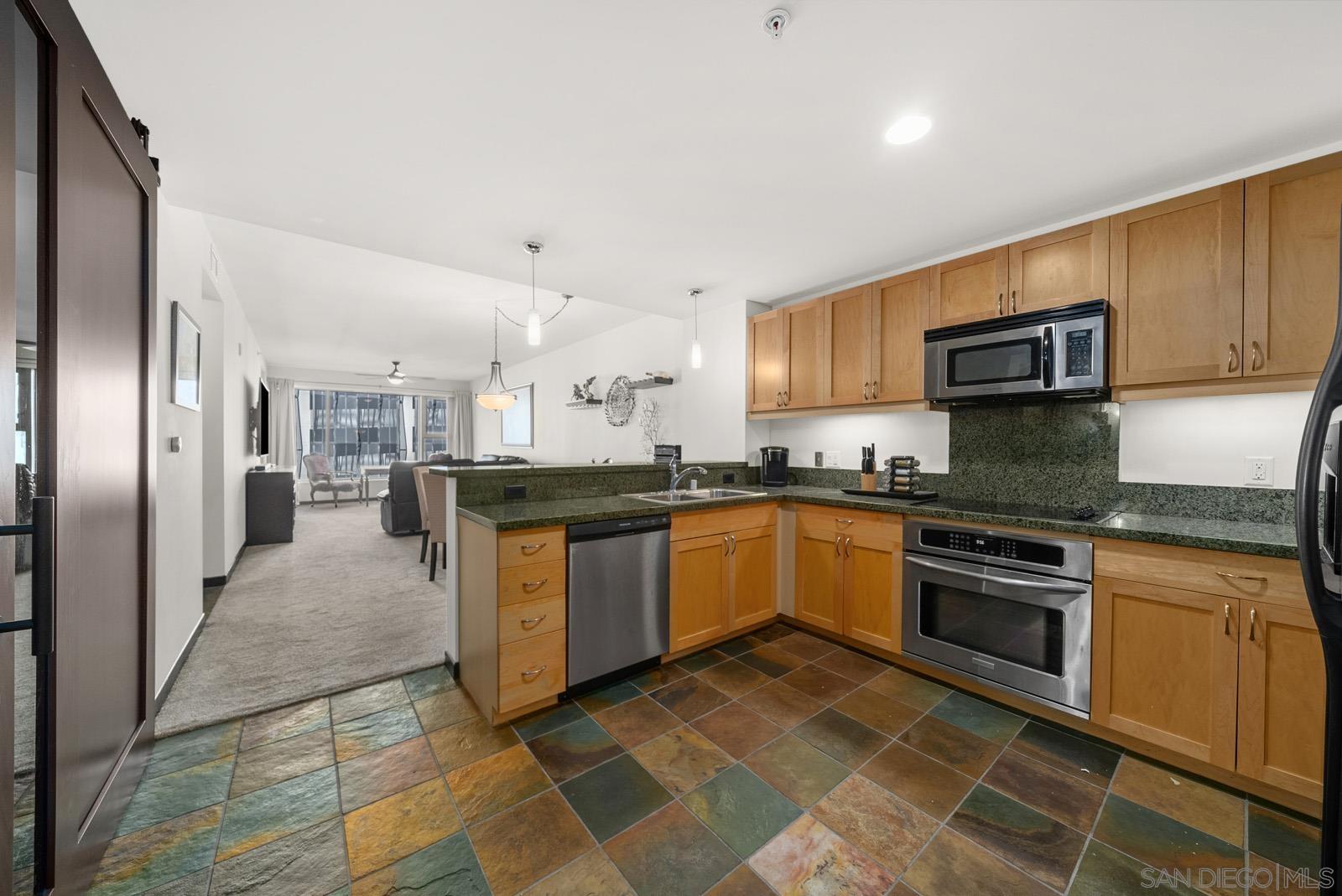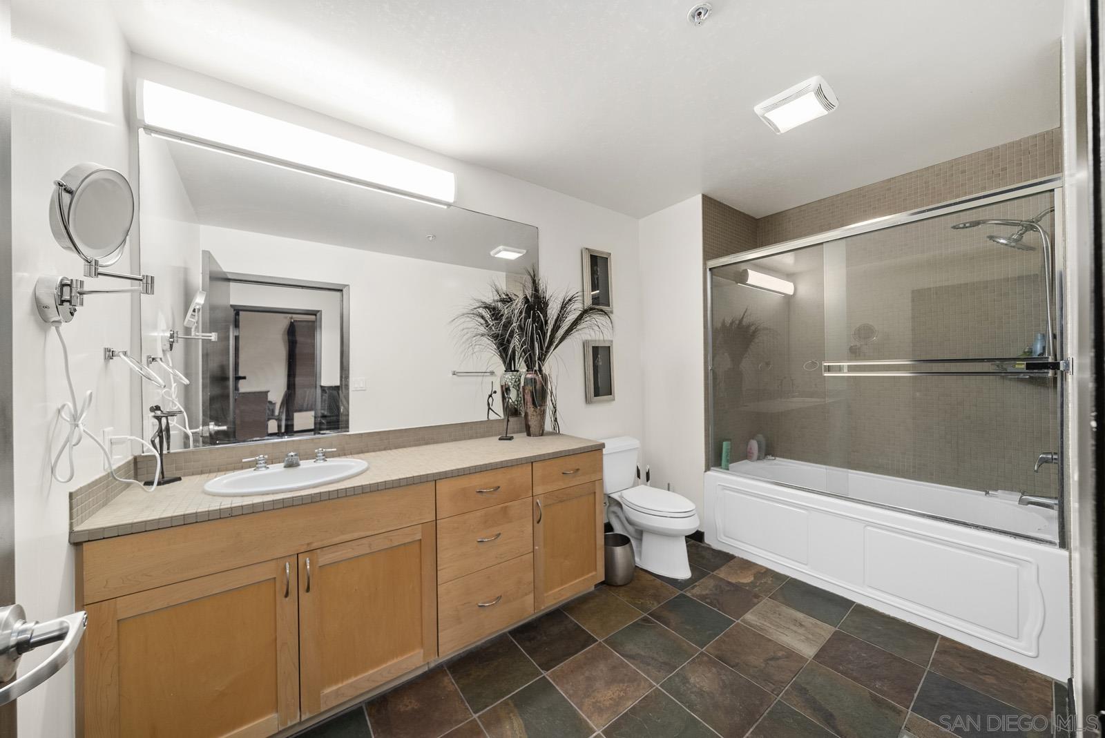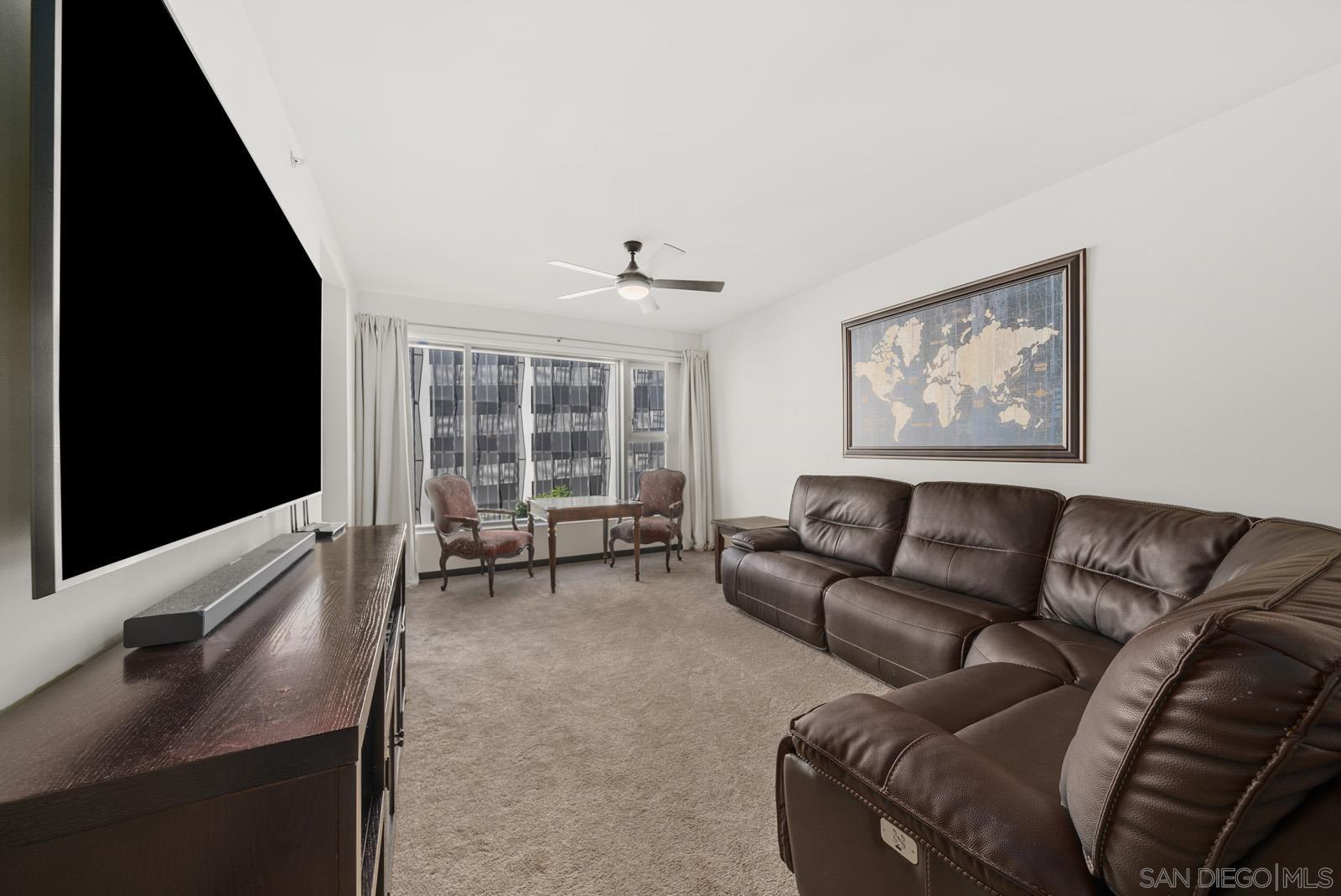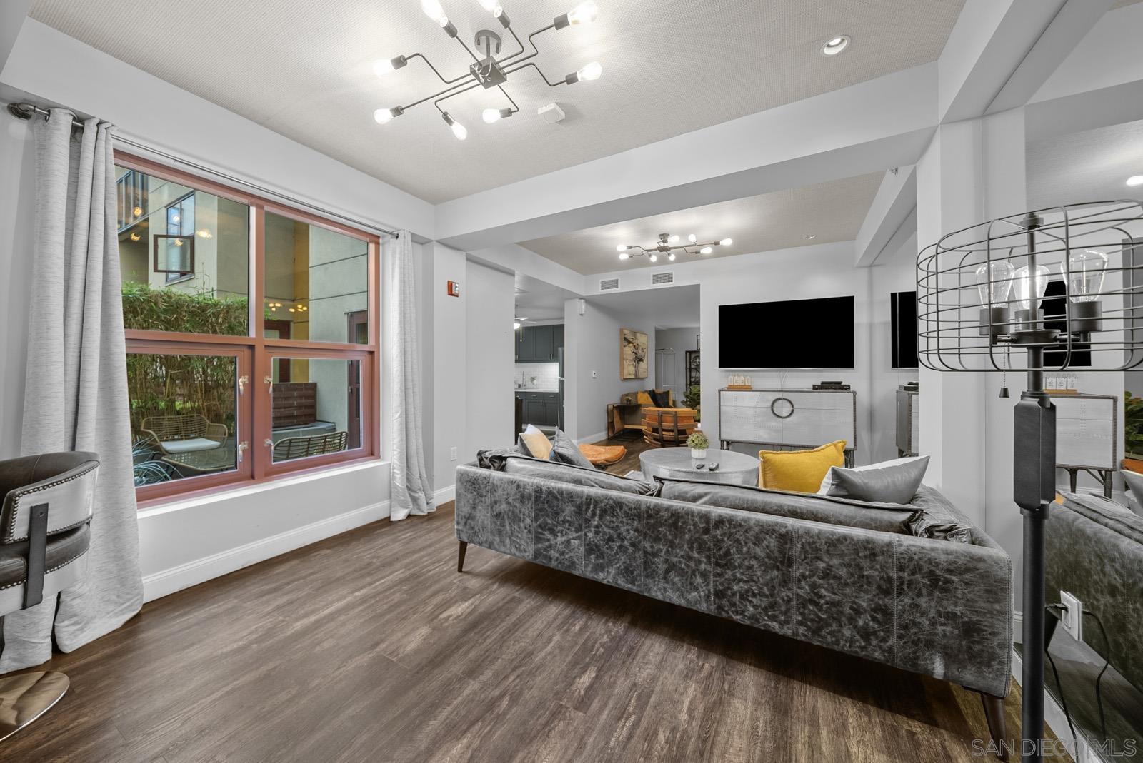 Experience vibrant downtown life just steps from Petco Park and the library. This stylish unit boasts 9' ceilings and oversized windows that flood the space with natural light. Enjoy your private balcony off the living room, sleek slate flooring, and a contemporary kitchen equipped with granite countertops and stainless steel appliances. The large in-unit washer/dryer makes laundry a breeze. A spacious 7'5" breakfast bar comfortably seats four, and the mirrored closet in the master bedroom adds a touch of elegance. An extra room offers flexibility as a second bedroom, home office, or den. Stay cool with the new A/C, and choose to purchase the unit fully furnished or unfurnished. Community perks include a tranquil Zen garden, a stylish clubhouse, additional storage, and a well-equipped workout room. Don't miss out on this East Village gem!Interested in this Listing?
