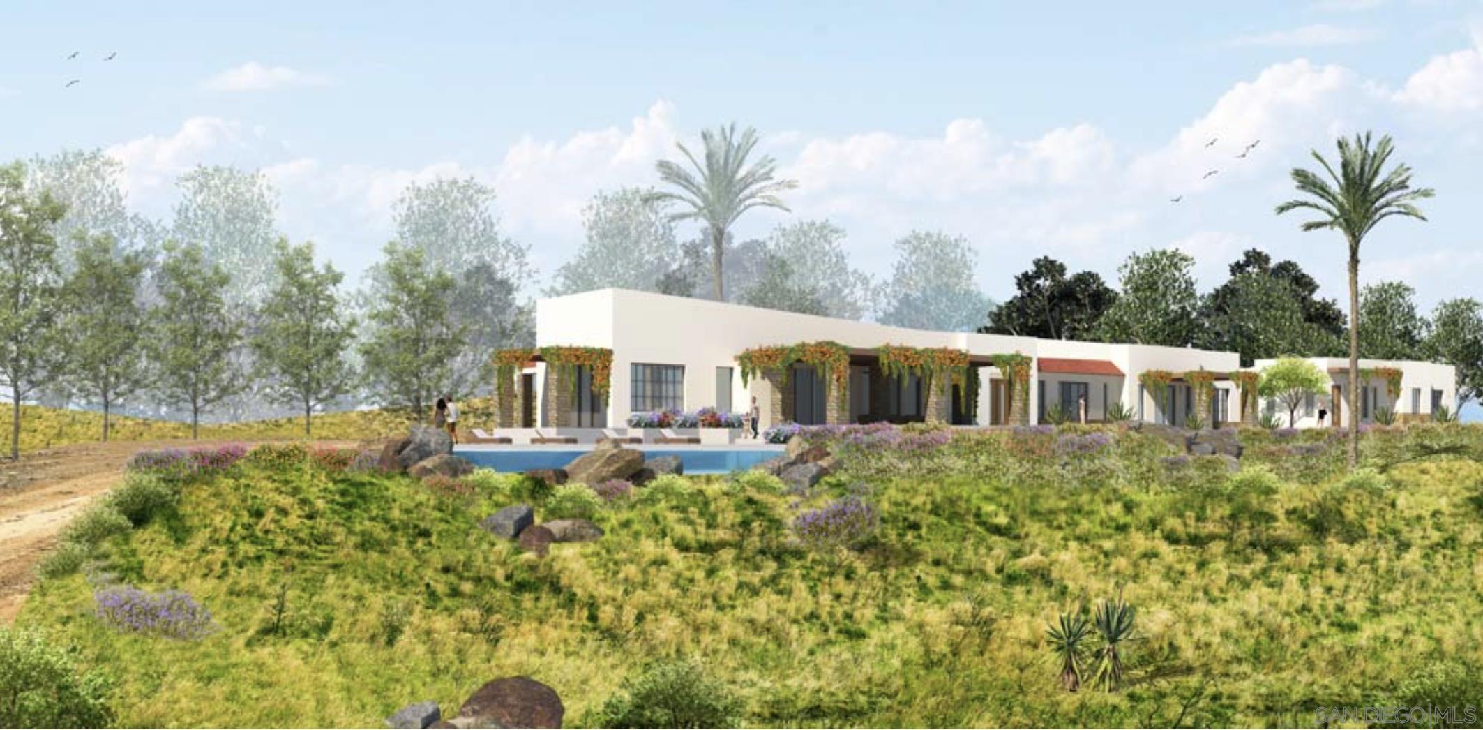 Casa de las Palmas offers a stunning parcel located in the Covenant of Rancho Santa Fe. This 2.92-acre lot offers proximity to the Rancho Santa Fe village, golf, tennis, and equestrian facilities. The planned 6,902 sq. ft. Santa Barbara-inspired residence is designed to embrace indoor-outdoor living, with 4 bedrooms, an office (convertible to an additional bedroom), gym/game room, 5 full baths, 2 half baths, and a 3-car garage. A separate casita/granny flat will feature 1 bedroom, kitchen, living area, laundry room, 1.5 baths, and an attached 1-car garage. The property is thoughtfully designed with expansive outdoor spaces, including patios, a pool, outdoor kitchen, fountains, and landscaped areas that enhance the serene creek flowing through the property. Enjoy breathtaking valley views and a location just minutes from freeways and San Diego's top attractions.Interested in this Listing?