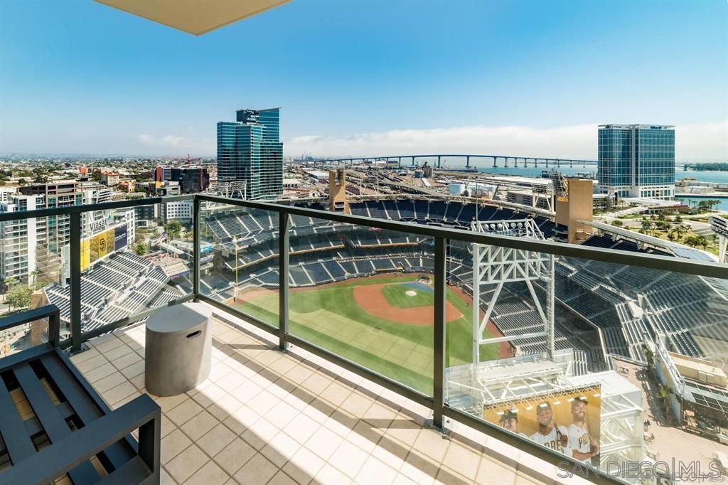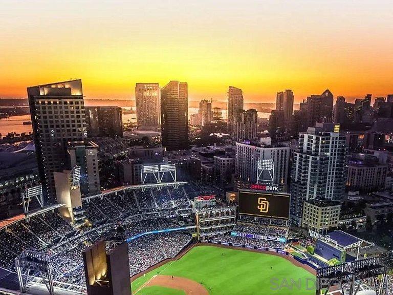 Turnkey, fully furnished, just bring your suitcase, southeast corner residence with Tesla charger located in The Legend building. Unmatched downtown and harbor views but the best view is directly into the ballpark. Share unmatched memories with friends as you enjoy a wide ange of Petco Park concerts & events...from SDSU basketball to ATP tennis, motocross, monster trucks and epic fireworks shows galore. Forget about Padres season tickets because you can catch every game from your own balcony.