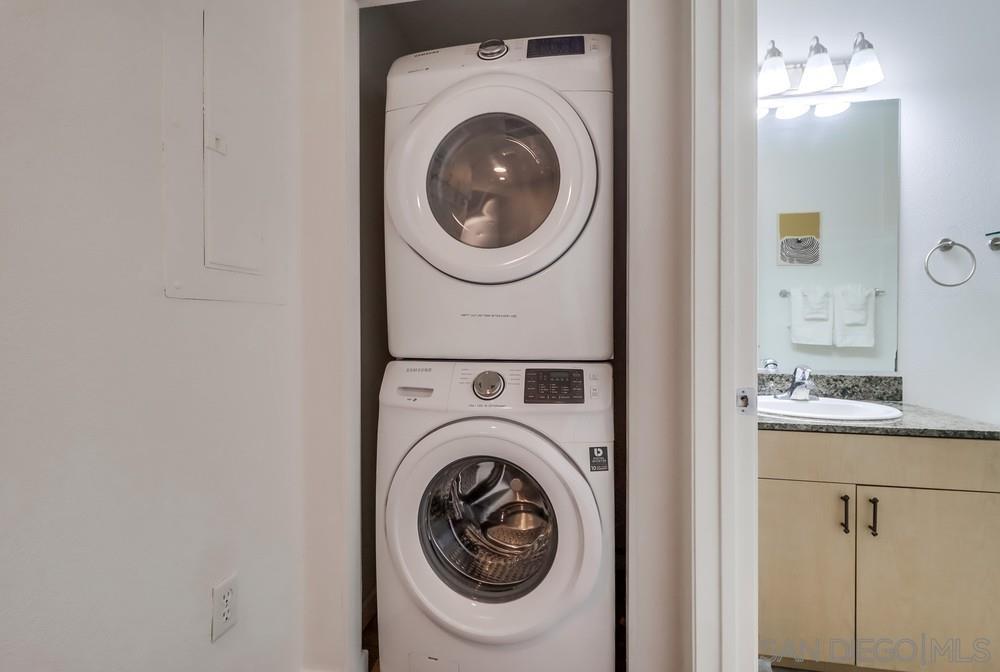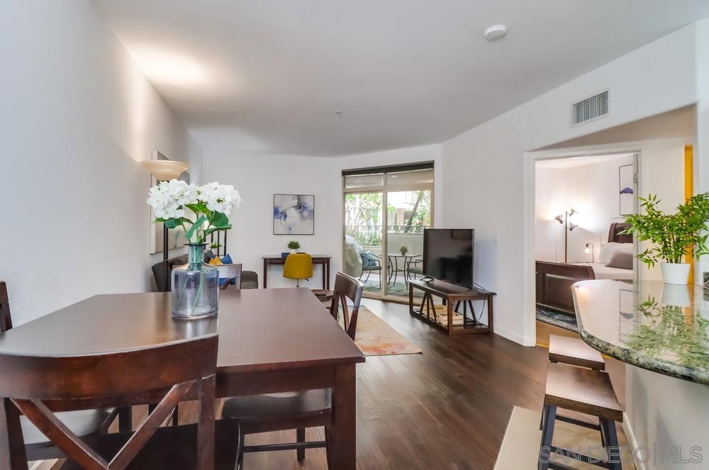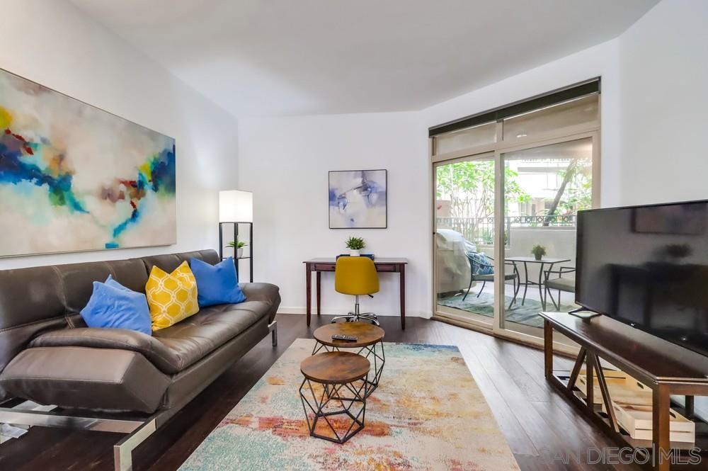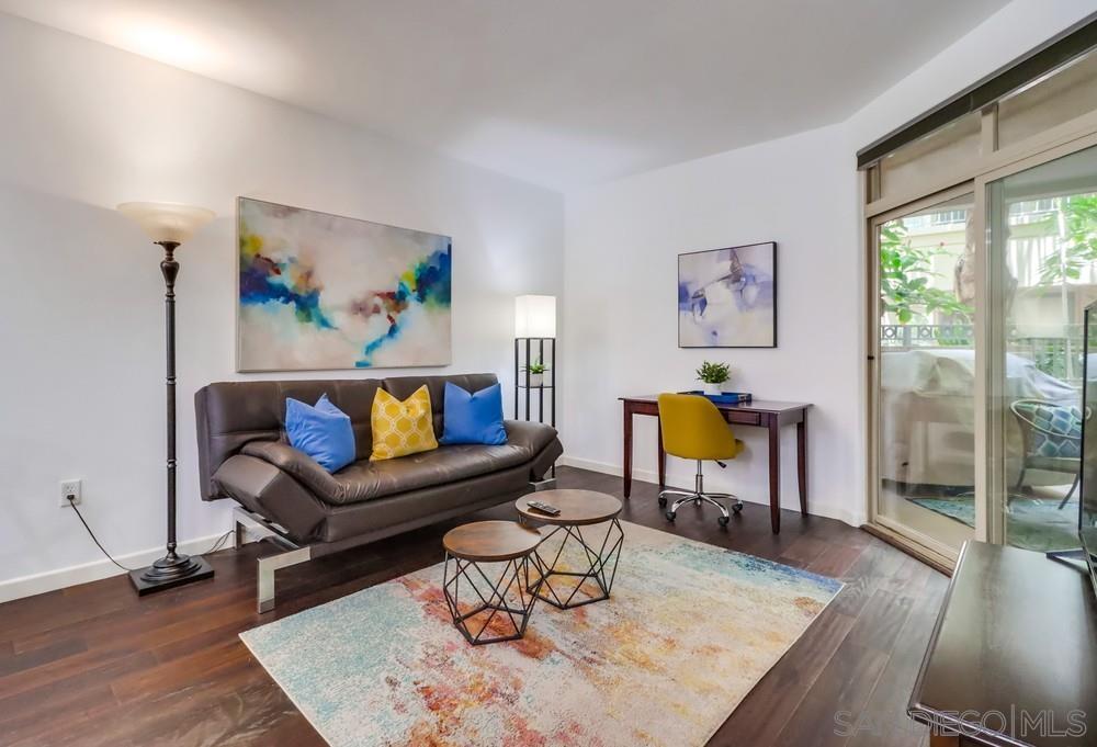 Welcome home to this FULLY FURNISHED, larger 1 bed / 1 bath, 721 sqft unit in the highly sought-after community of Piazza Palermo located in the charming Little Italy neighborhood. Piazza Palermo is a 6-story, mid-rise, secure building situated in a prime location that can't be beaten. You will appreciate the spacious, light, bright & airy vibe throughout this residence. A full-size kitchen with granite counters provides the perfect space to whip up culinary delights and entertain guests. This home features a stackable washer/dryer in-unit, A/C, engineered wood flooring, and a balcony to enjoy peaceful, parklike views. Building amenities include a pool, spa, fitness center, and guest parking. Walking distance to everything: the wildly popular Little Italy Farmer's Market, Waterfront Park, Seaport Village, Balboa & Petco Parks, Gaslamp Quarter, fantastic dining, cafes, bars, boutiques, and entertainment. Close proximity to the train, trolley, airport, beaches & more. Don't miss the opportunity to call this residence home - bring your suitcase and experience the true magic of Little Italy living! We welcome all Dep't of Defense (DOD) and we'd love to work with you, so if you're looking for something different, please inquire about Downtown Condo Guys other listings.