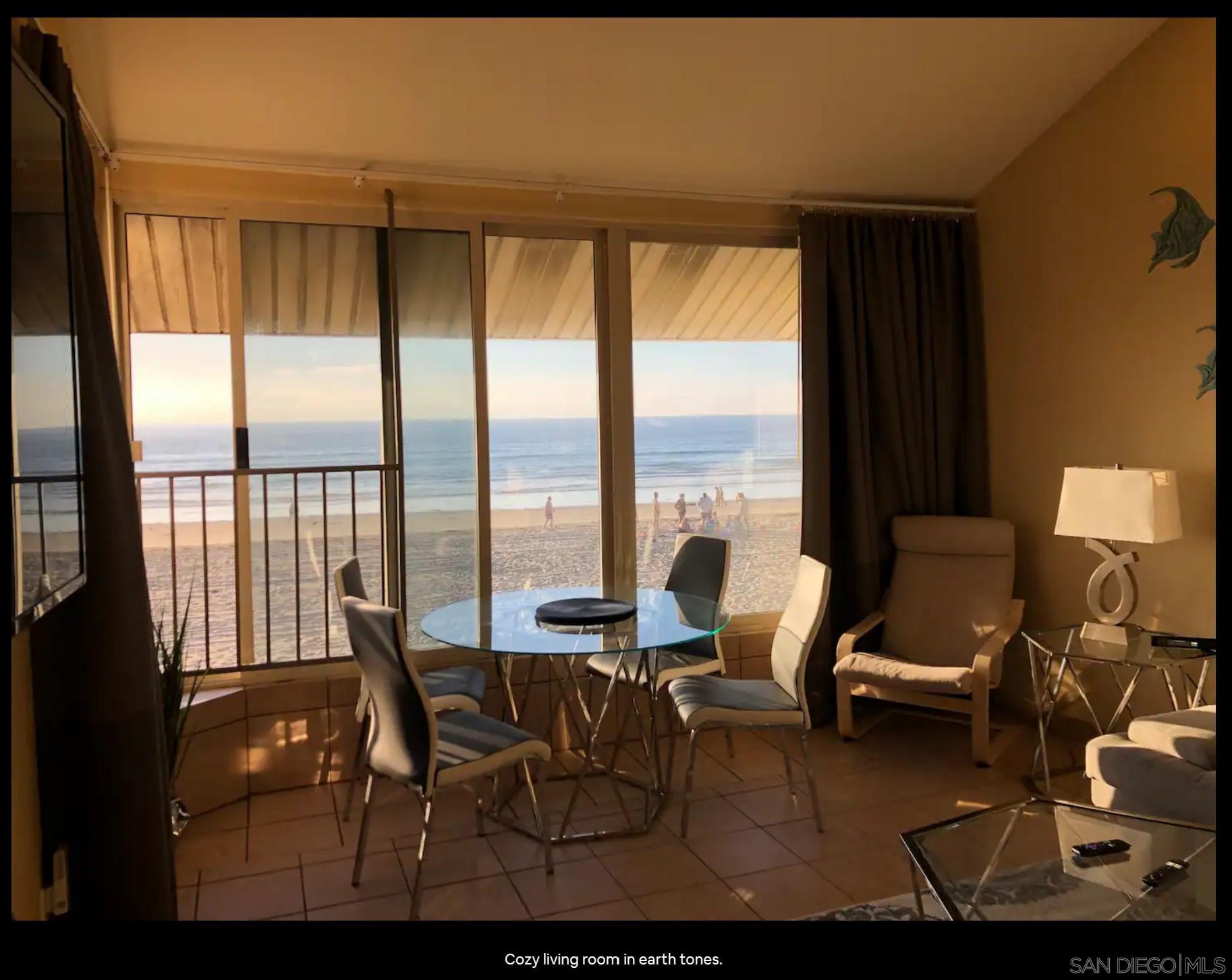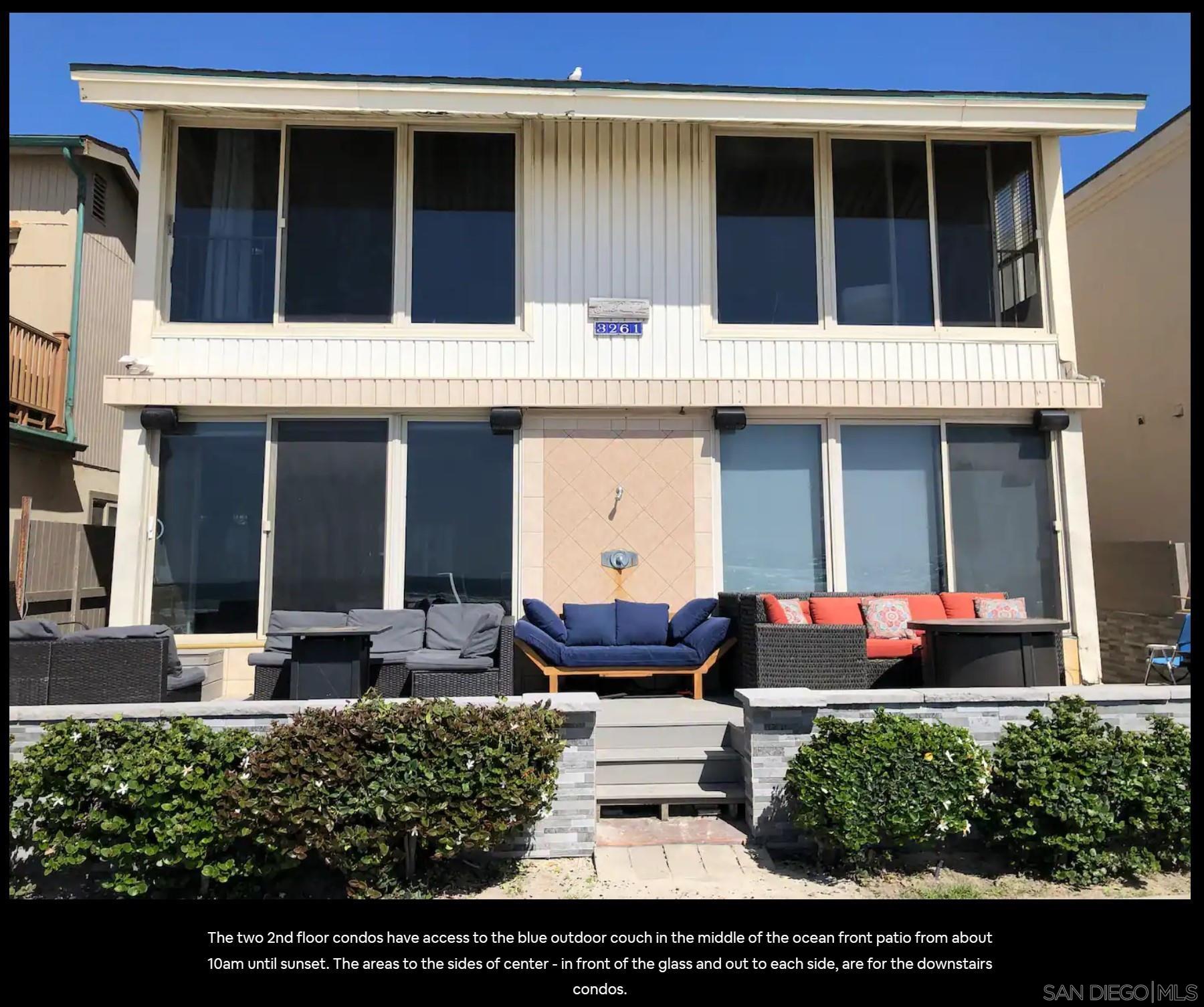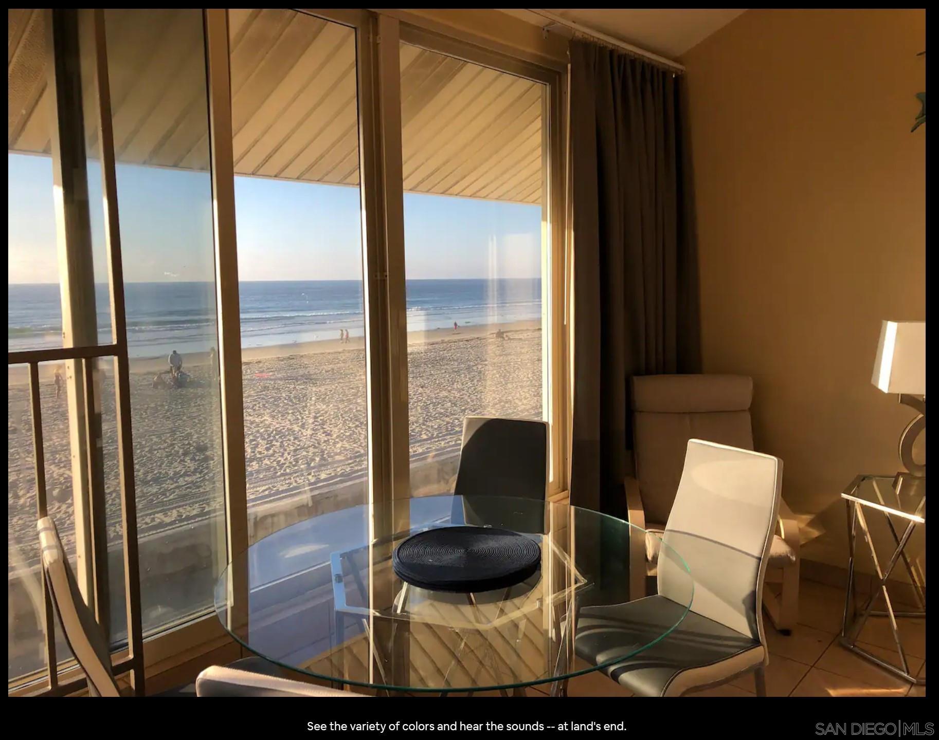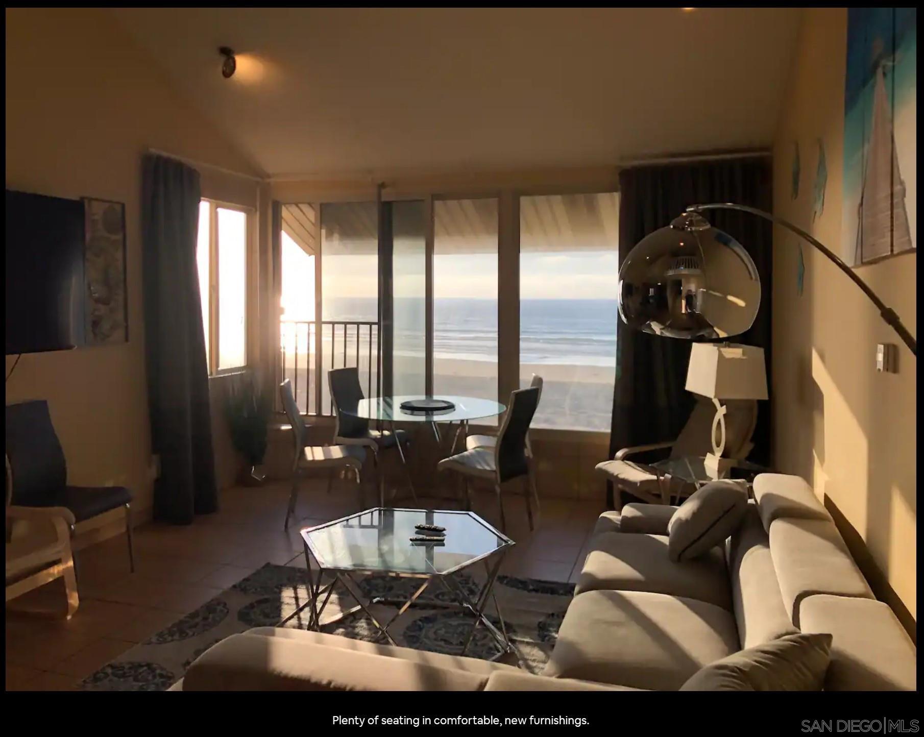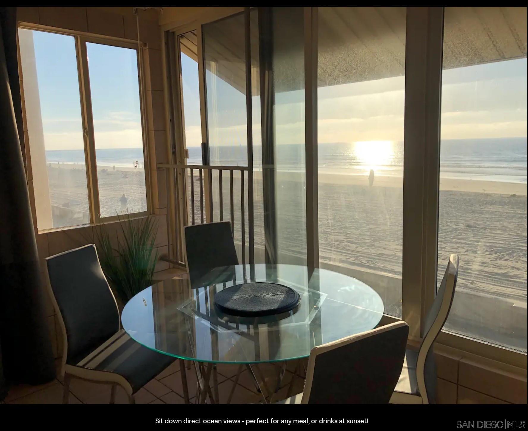 Oceanfront in Mission Beach, San Diego Panoramic ocean views and as near to the sand as it gets - right on the beach boardwalk! This is a high end vacation rental being offered at a reduced, longer term rental rate for the off-season. Suitable for corporate clients, homeowner seeking residence during remodeling or restoration, travel nurses, etc. Will consider all tenants with good profiles. Large, modern 3 bedroom, 2 full bath condo -- Upper unit! Fully furnished Fully equipped kitchen including dishwasher Parking for one vehicle. Extra off-street parking available for nominal fee Garage parking may also be available. Short distance to everything - grocery stores, retail, and Belmont Park, but quiet and well buffered from the activity Laundry on site Will consider pets.Interested in this Listing?