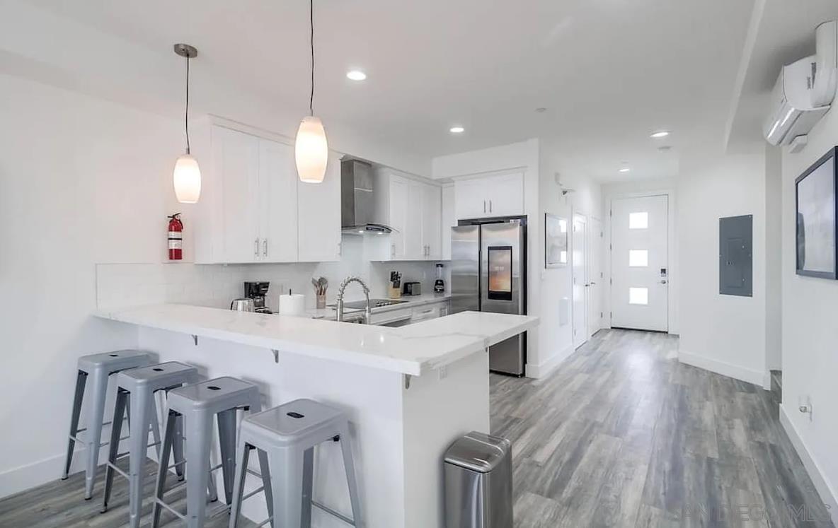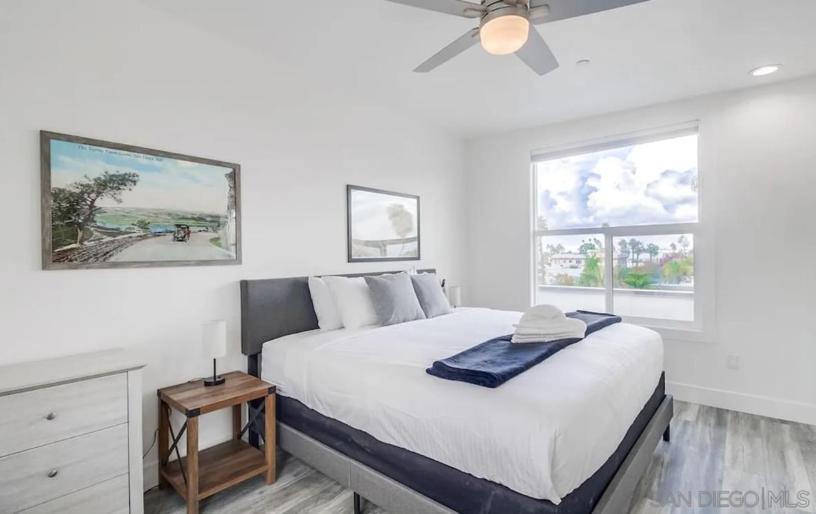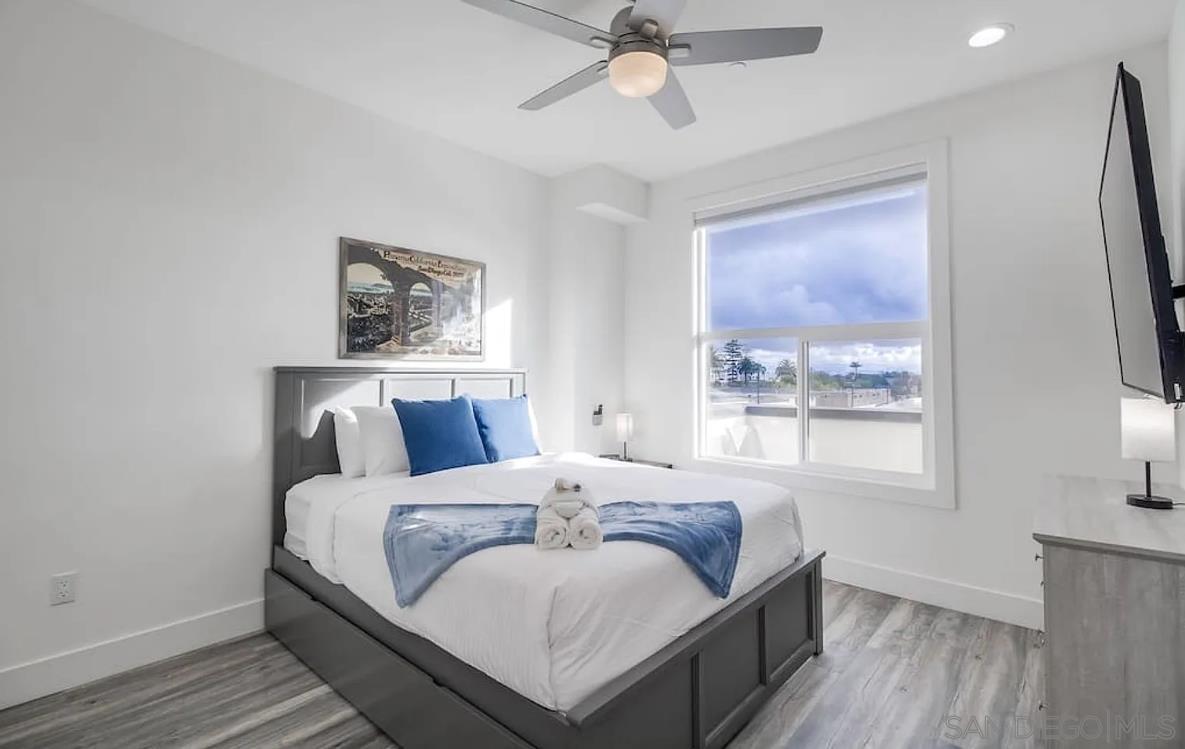 Step into this inviting apartment, featuring a spacious open-layout design with 10-foot ceilings that create a bright and airy ambiance. The living room is furnished with a pullout couch, a smart TV, and a relaxing massage chair. Adjacent to the living room, a fully equipped kitchen boasts stainless steel appliances, including a dishwasher and a smart Samsung refrigerator. An informal dining area provides bar seating and a dining room table, leading to a small balcony with a propane grill. Guests will have access to the secured parking garage. The primary bedroom's balcony features a private hot tub, available for your enjoyment.