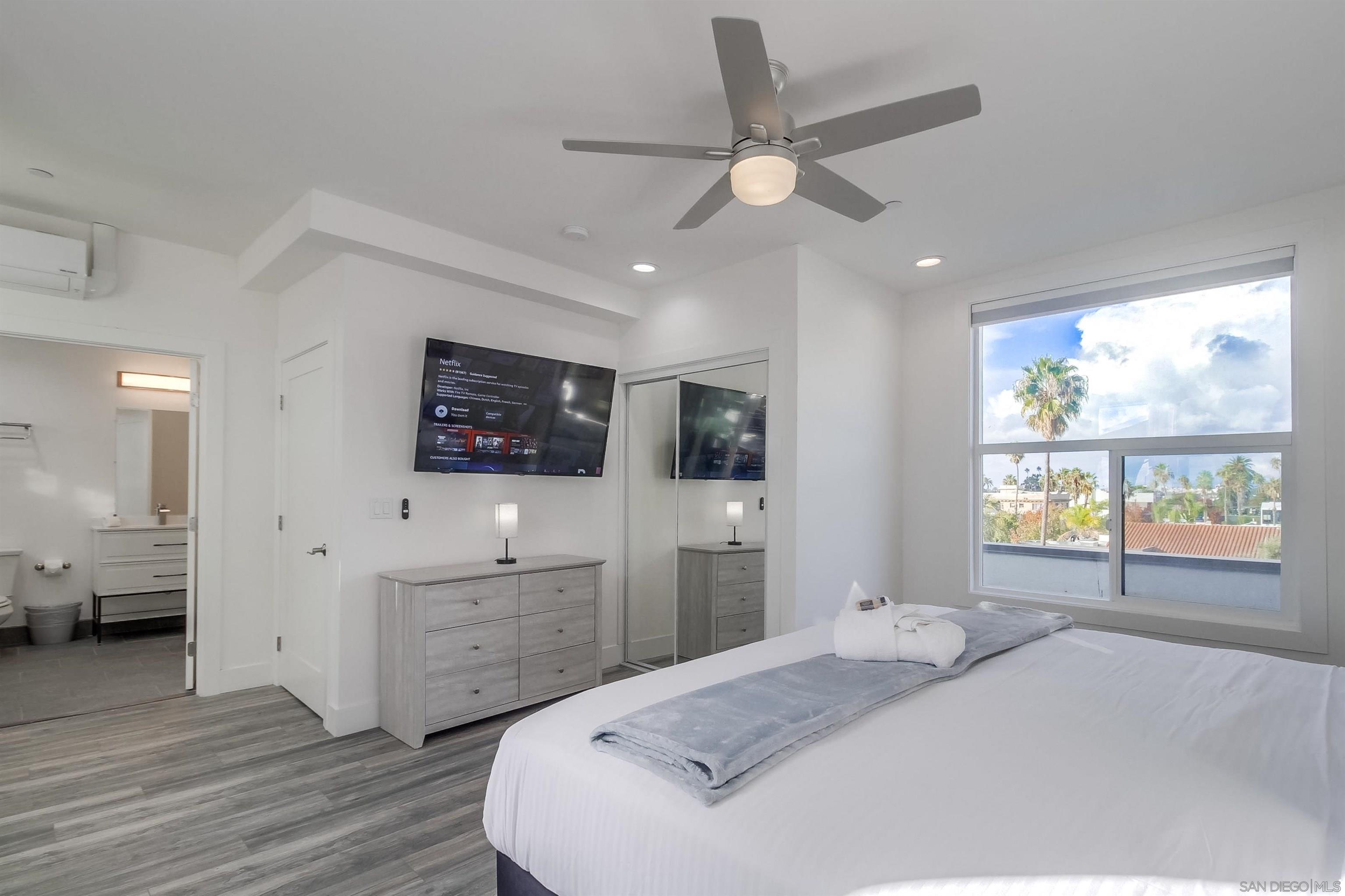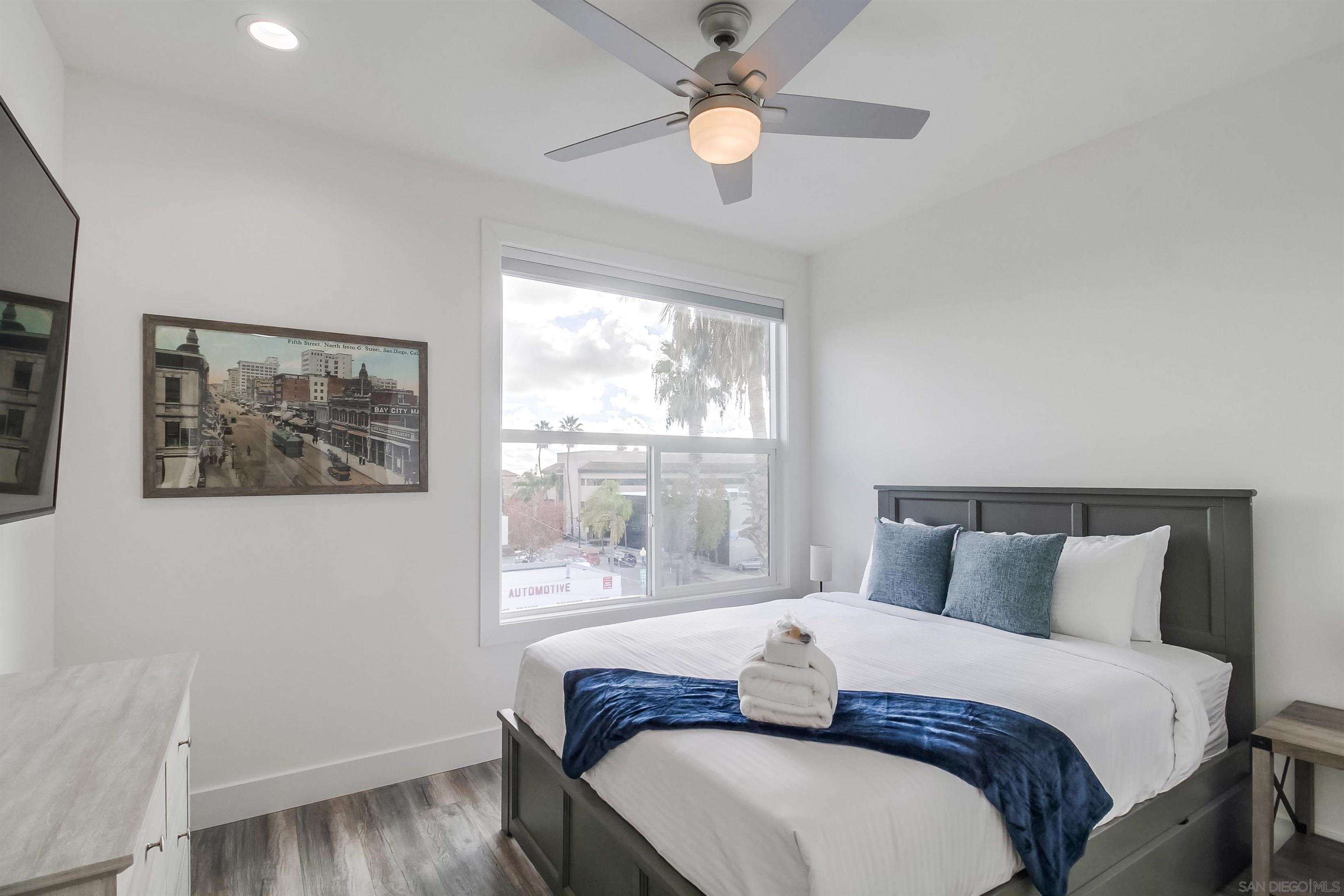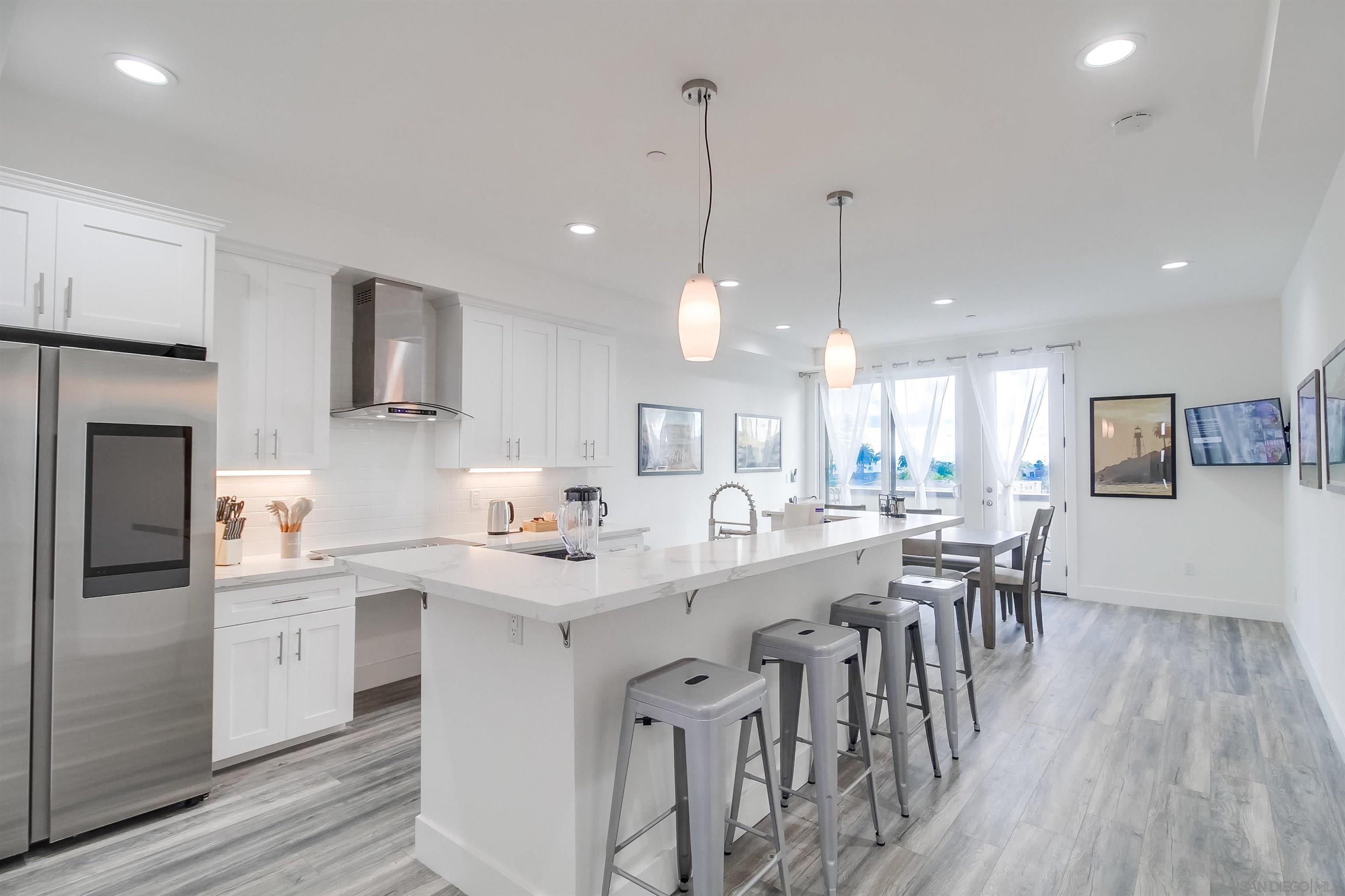 Move in ready 2 bedroom featuring a bright and spacious atmosphere, open-layout, 10-foot ceilings, luxury vinyl plank flooring, central air and heat mini-splits, full-size washer and dryer side by side with well-equipped kitchen, complete with stainless steel appliances, including a dishwasher and a smart Samsung refrigerator. Floor-to-ceiling sliding glass door leading to a private balcony.