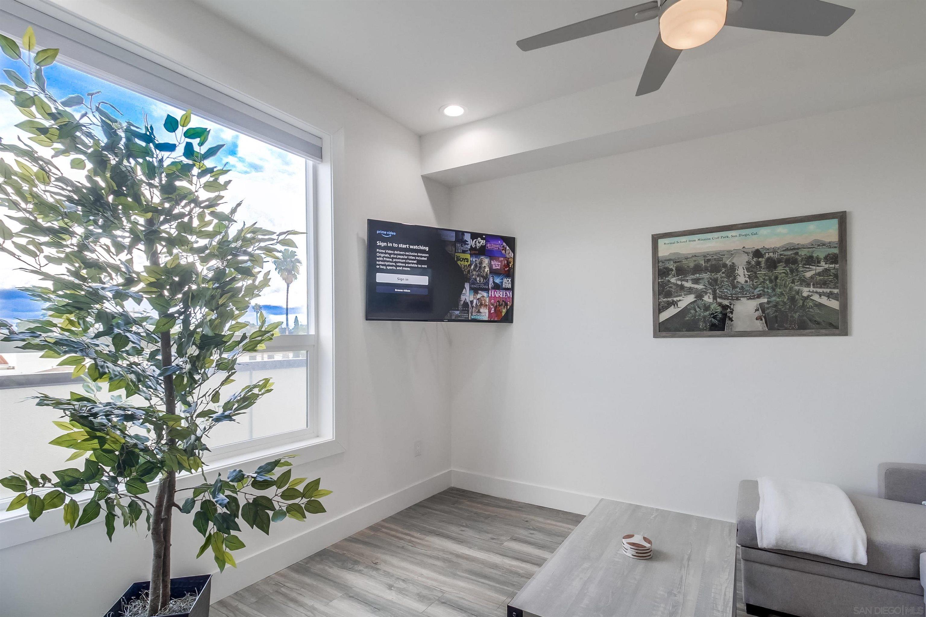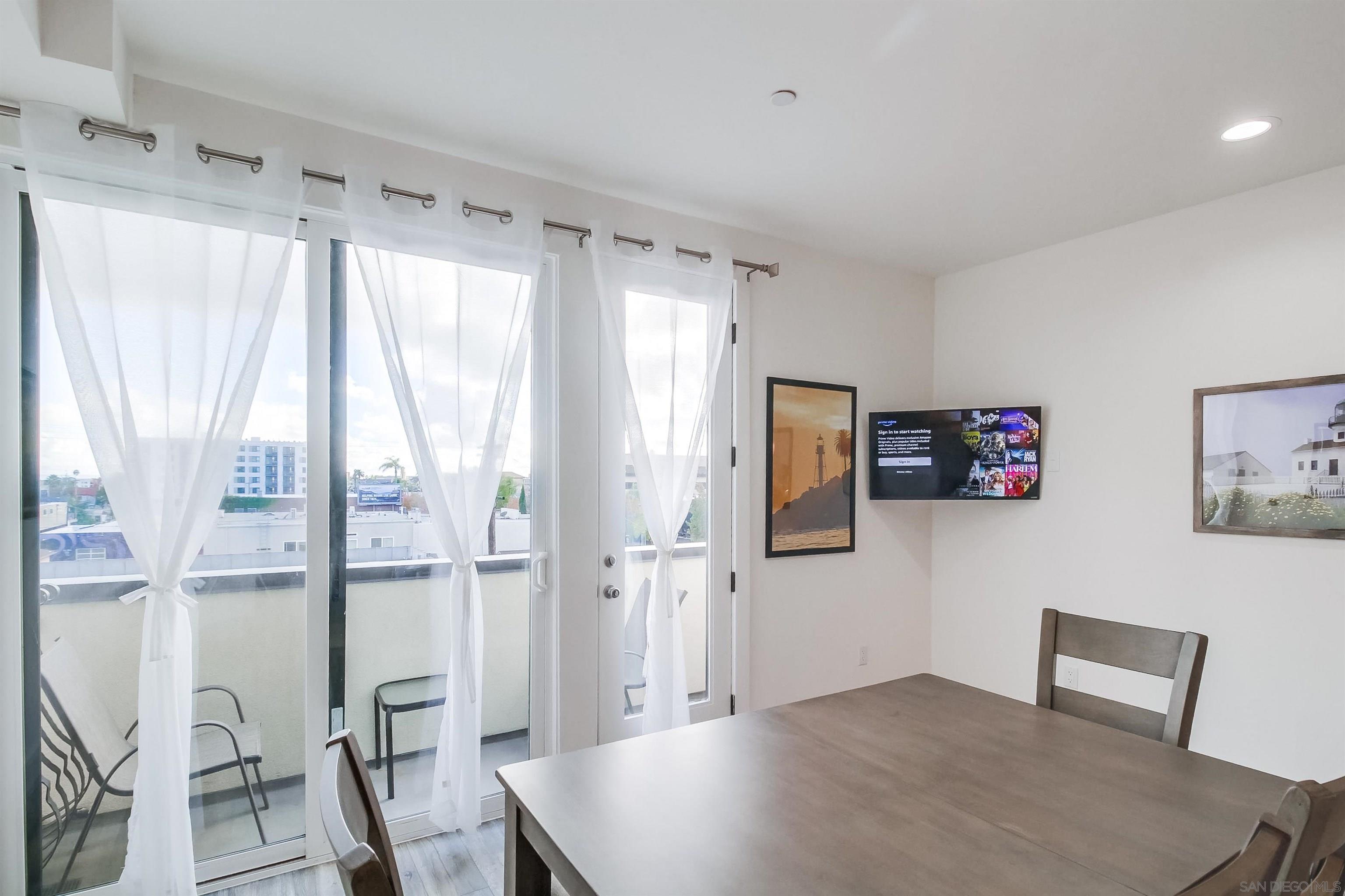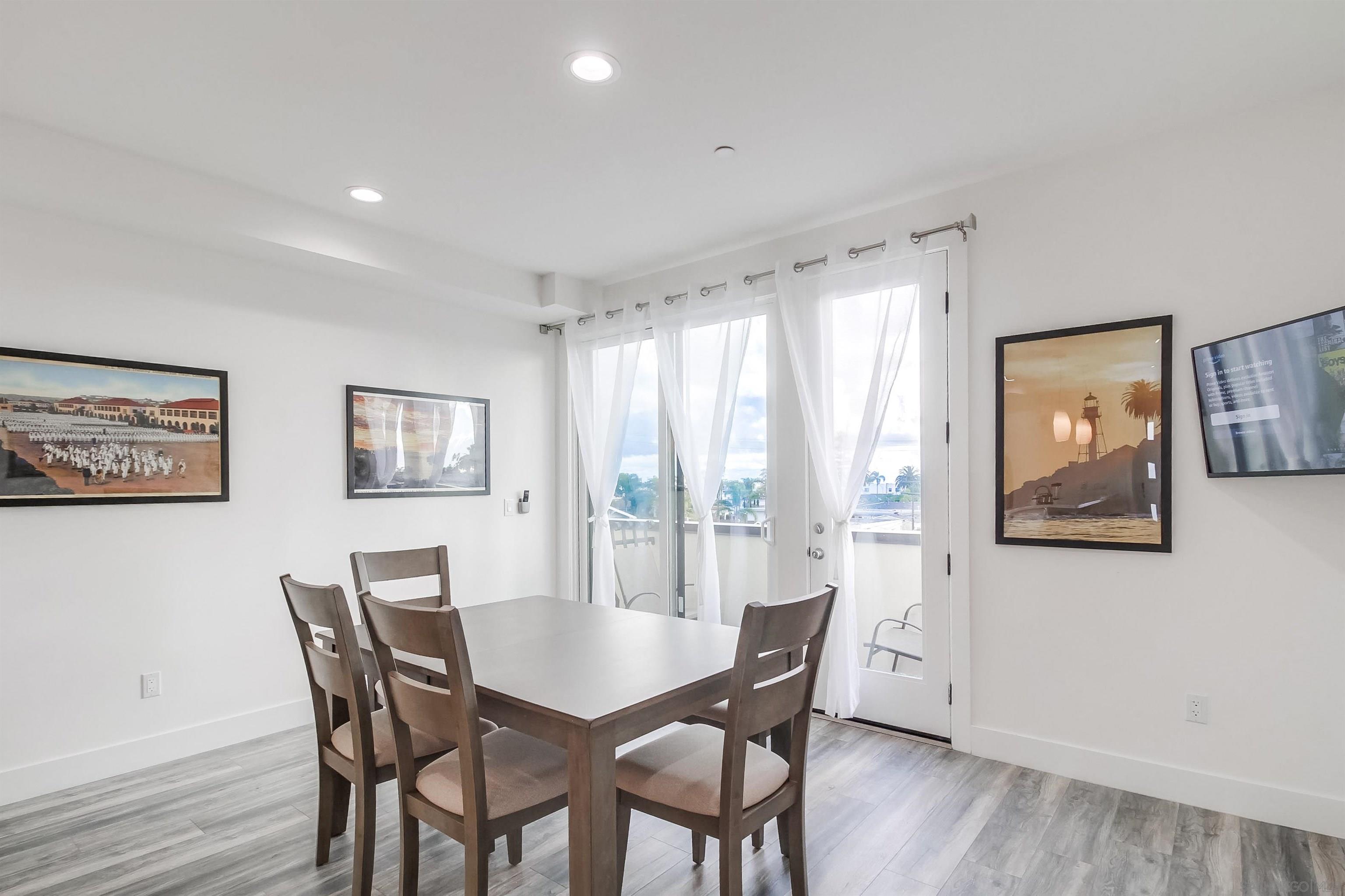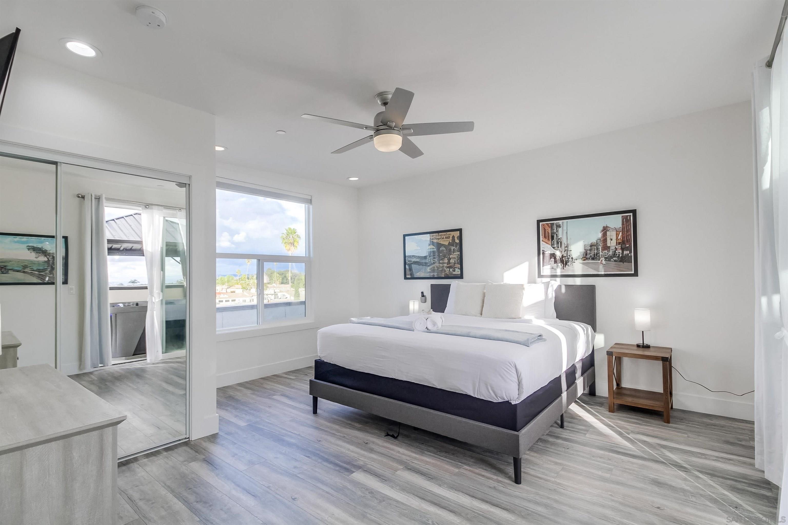 Move in ready 2 bedroom featuring a bright and spacious atmosphere, open-layout, 10-foot ceilings, luxury vinyl plank flooring, central air and heat mini-splits, full-size washer and dryer side by side with well-equipped kitchen, complete with stainless steel appliances, including a dishwasher and a smart Samsung refrigerator. Floor-to-ceiling sliding glass door leading to a private balcony.