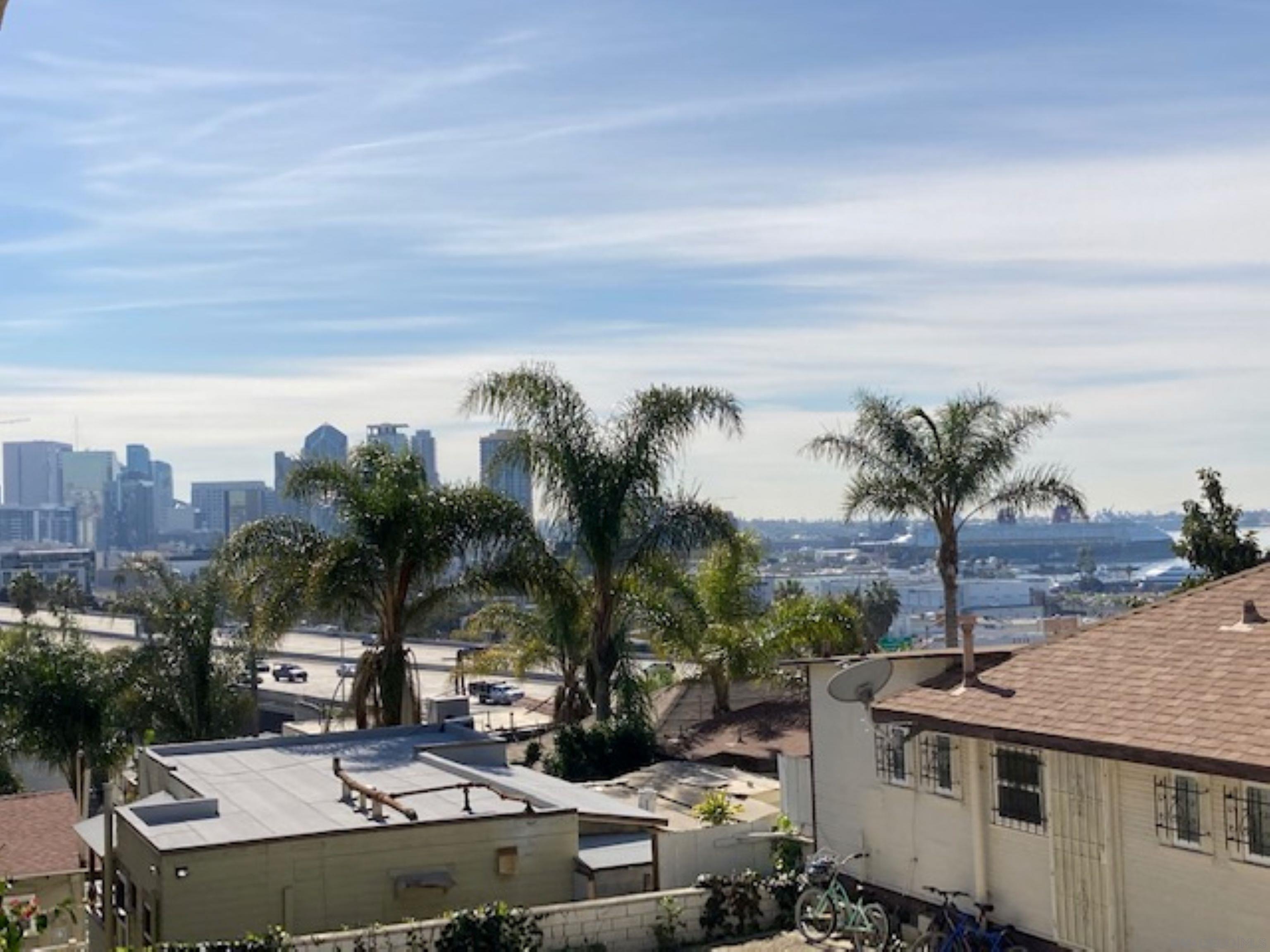 This remodeled unit is a large 1,050 sq ft 2 bed 2 bath condominium. It is a corner unit less than a 10 minute walk to Little Italy and close access to freeways. The unit features new calcutta quarts counter tops, vinyl plank flooring, new shower and baths, sound proof windows and doors, central air conditioning and heat, one off street parking, and views of down town and San Diego Bay.
