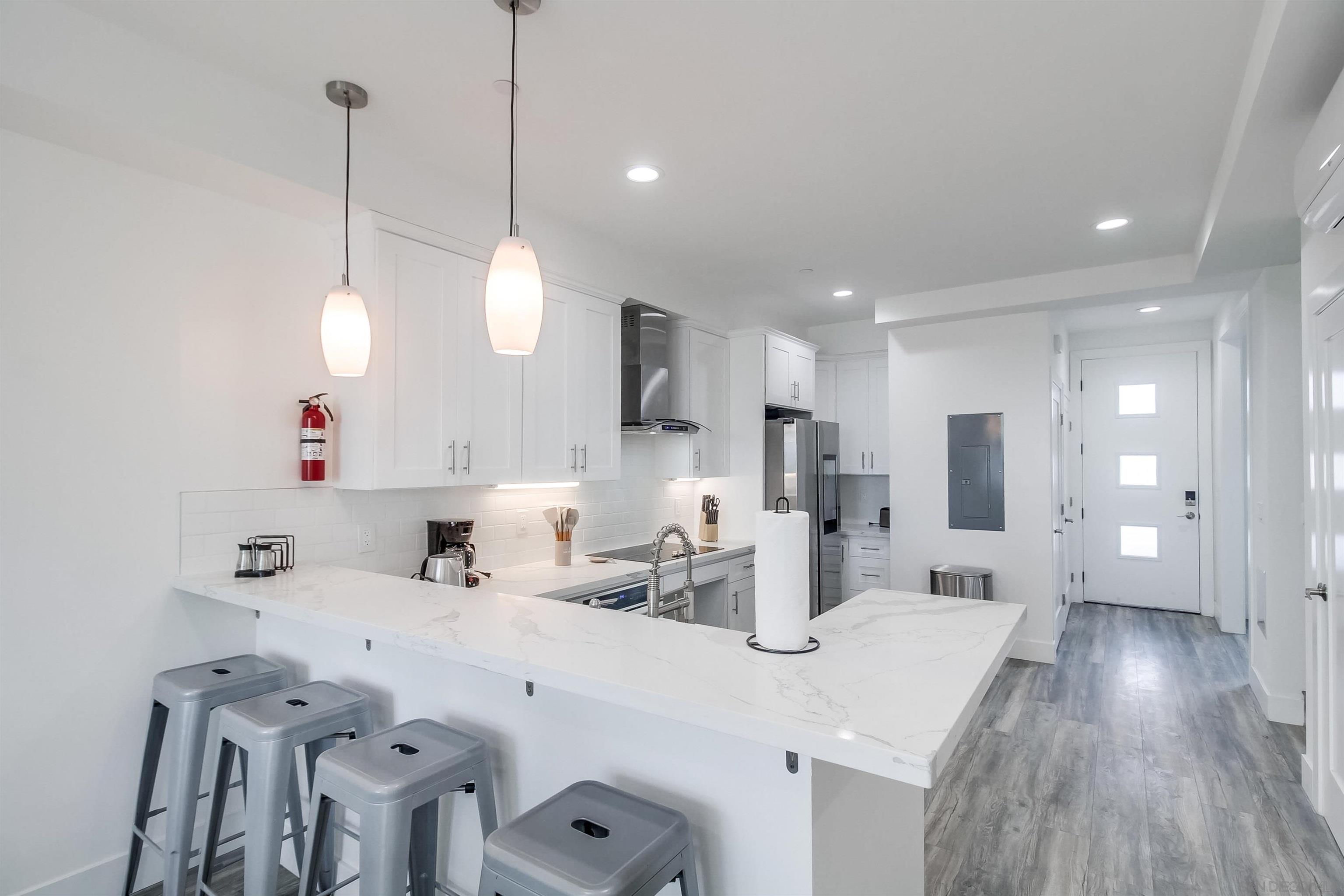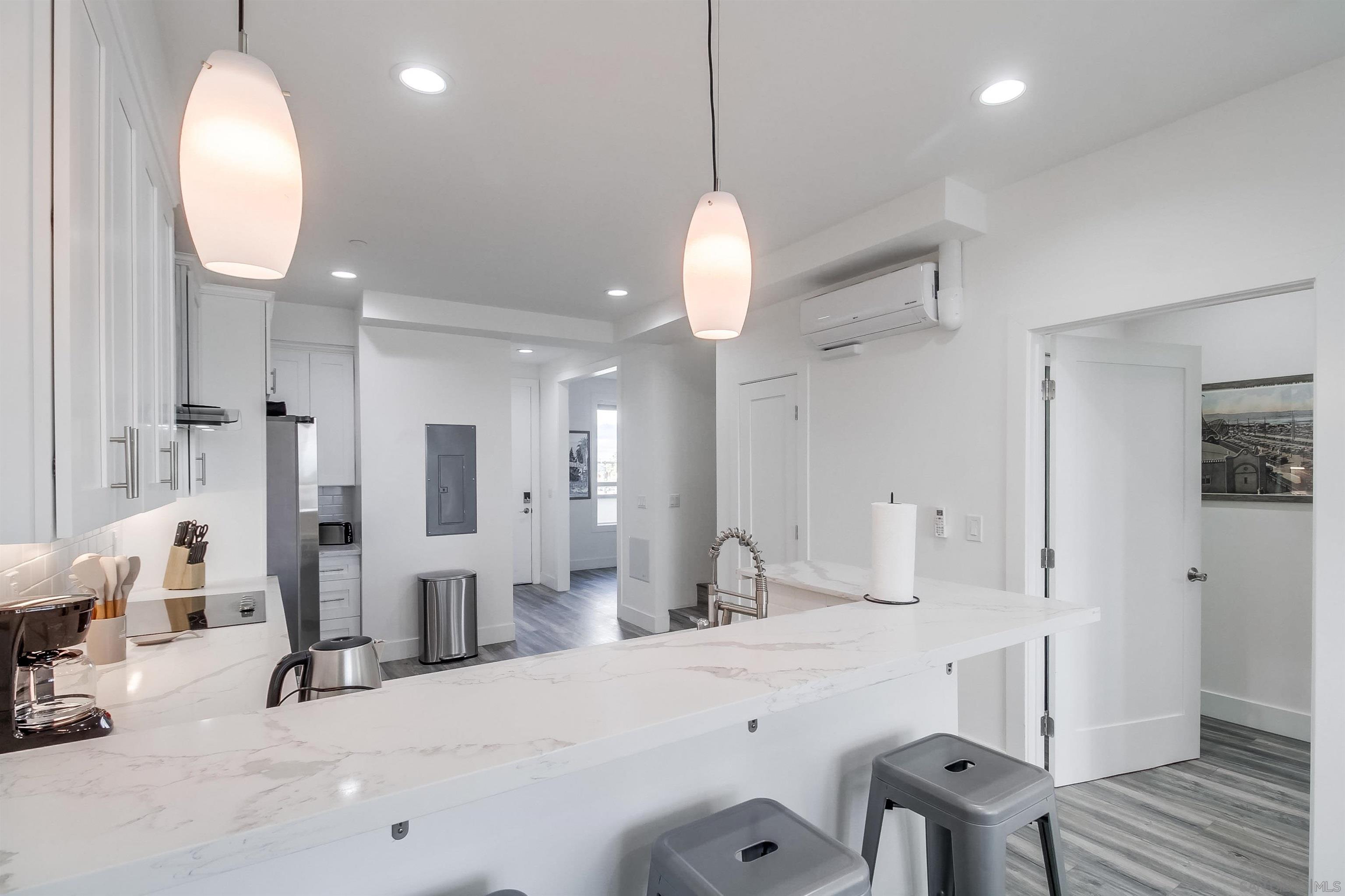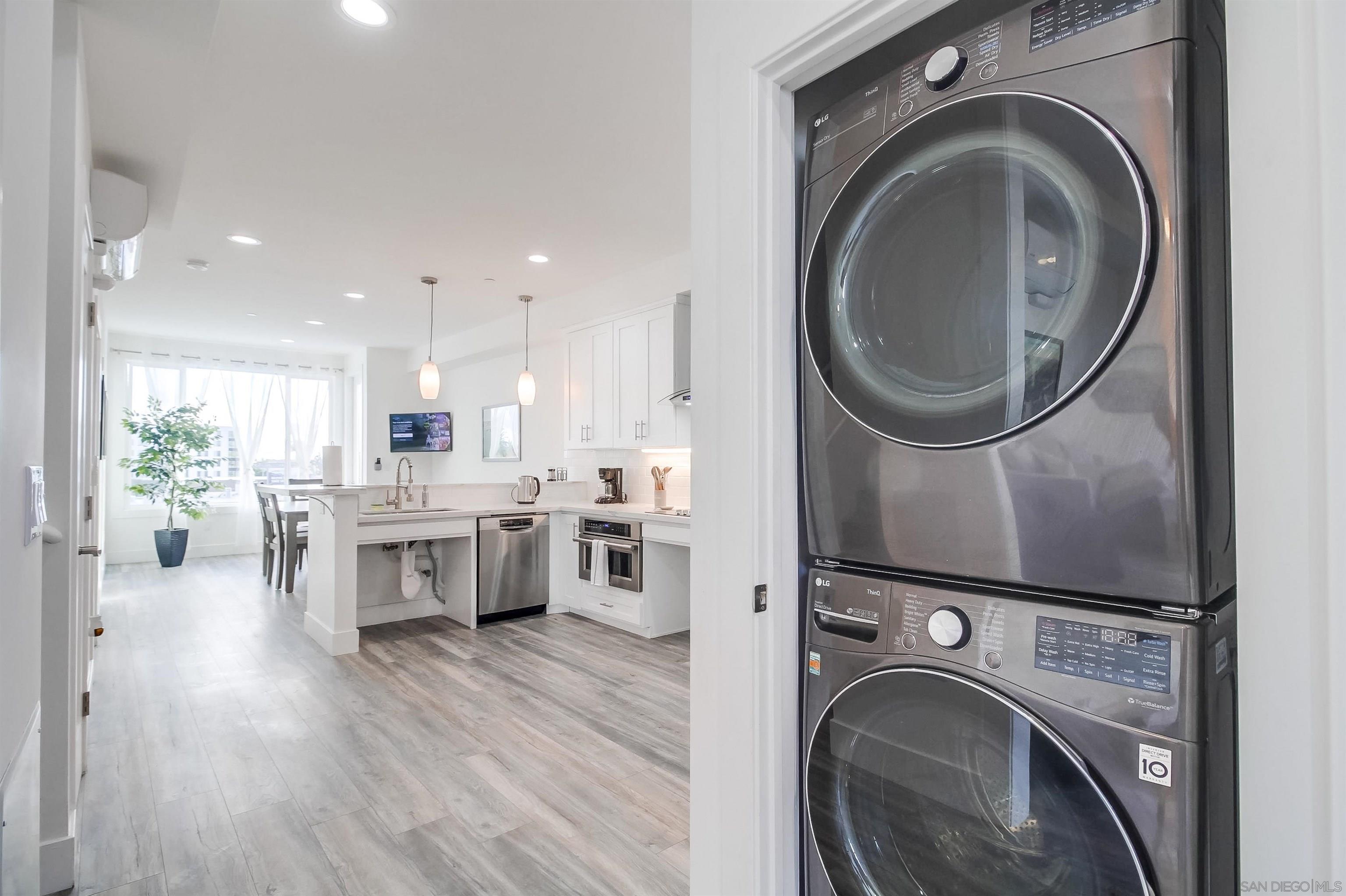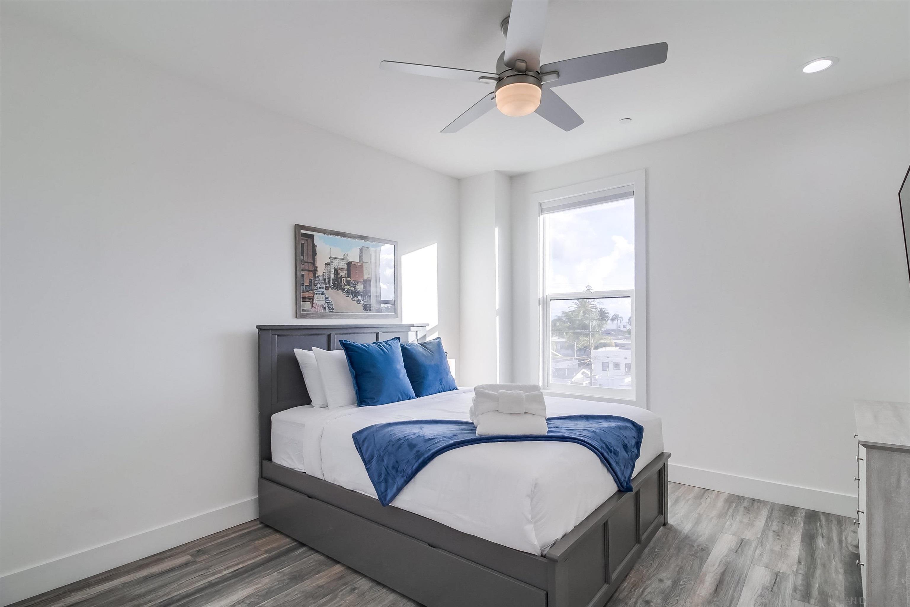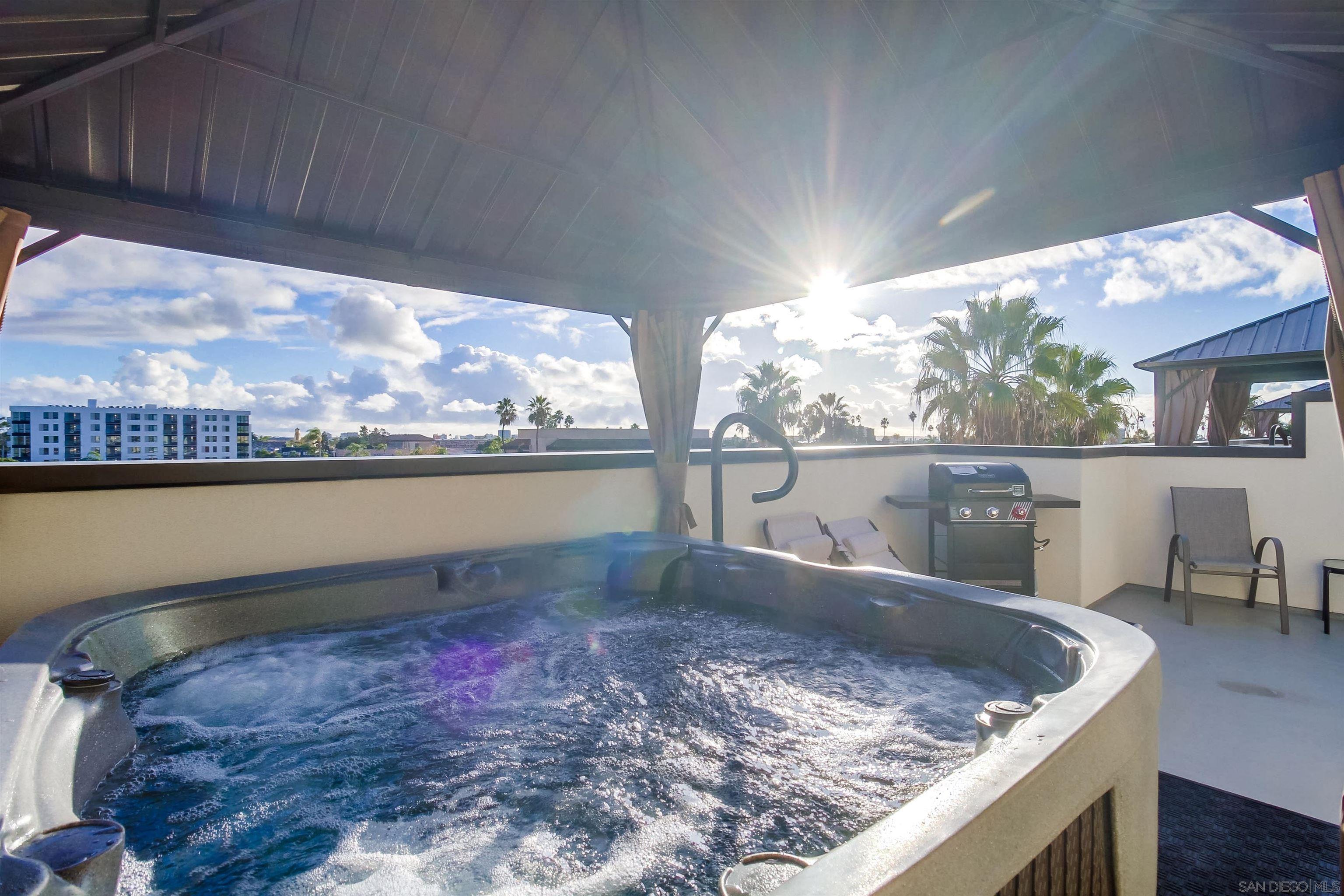 Step into this inviting apartment, featuring a spacious open-layout design with 10-foot ceilings that create a bright and airy ambiance. The living room is furnished with a pullout couch, a smart TV, and a relaxing massage chair. Adjacent to the living room, a fully equipped kitchen boasts stainless steel appliances, including a dishwasher and a smart Samsung refrigerator. An informal dining area provides bar seating and a dining room table, leading to a small balcony with a propane grill. Guests will have access to the secured parking garage. The primary bedroom's balcony features a private hot tub, available for your enjoyment.