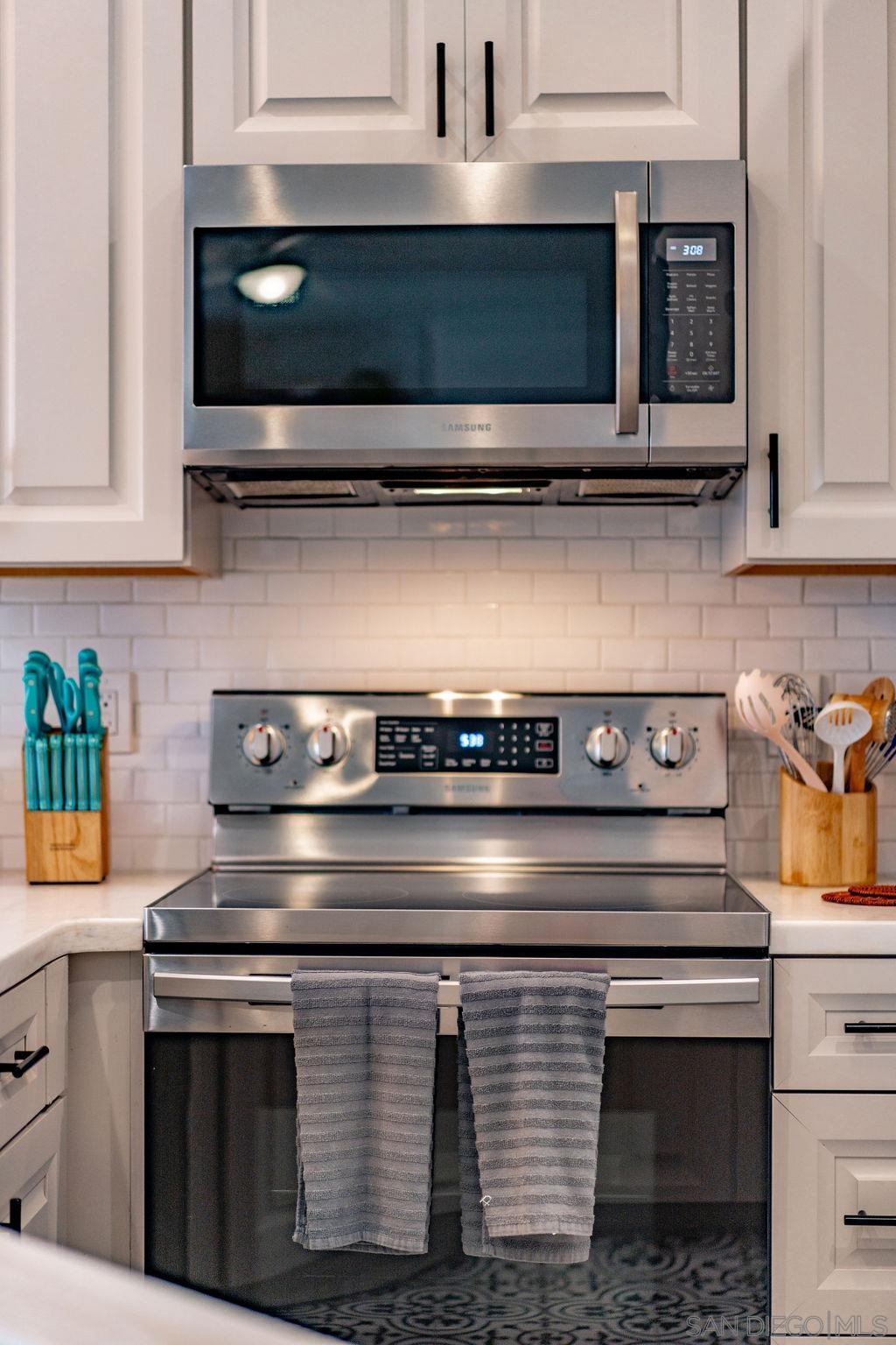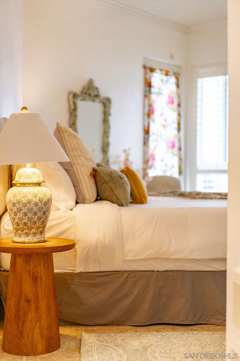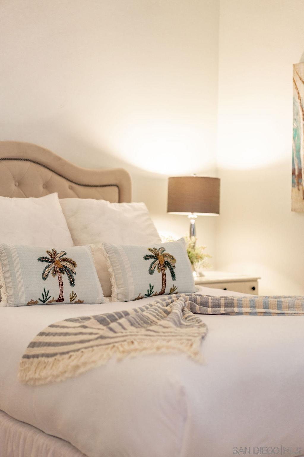 Welcome to this quaint and delightful 2-bedroom, 2-bath oceanfront townhome located right on the famous Mission Beach boardwalk, where you are just steps away from the sand! This beach abode boasts a lovely large patio situated right on the boardwalk, perfect for people-watching and ocean-gazing due to its incomparable location. The outdoor space features ample outdoor seating, an umbrella for shade, and a small table ideal for casual sunset dining. There is also a BBQ grill and lounge chairs for your enjoyment. Inside, the living room offers a comfy sectional couch, a ceiling fan, a flatscreen TV, plus a sliding glass door that opens up to the beachfront patio, blending indoor comfort with outdoor beauty. The updated kitchen is equipped with stainless steel appliances, bar seating for two, and a bistro table for two, making it a seamless space for cooking and dining. The first bedroom features a king bed, a flatscreen TV, and ample closet space. The second bedroom has a queen bed, a flatscreen TV, and a ceiling fan to ensure a comfortable stay. Additional amenities include a stacked washer/dryer for your convenience and parking options with one space in the garage (small car) plus one tandem parking spot in the driveway. Experience the best of Mission Beach living in this oceanfront gem!