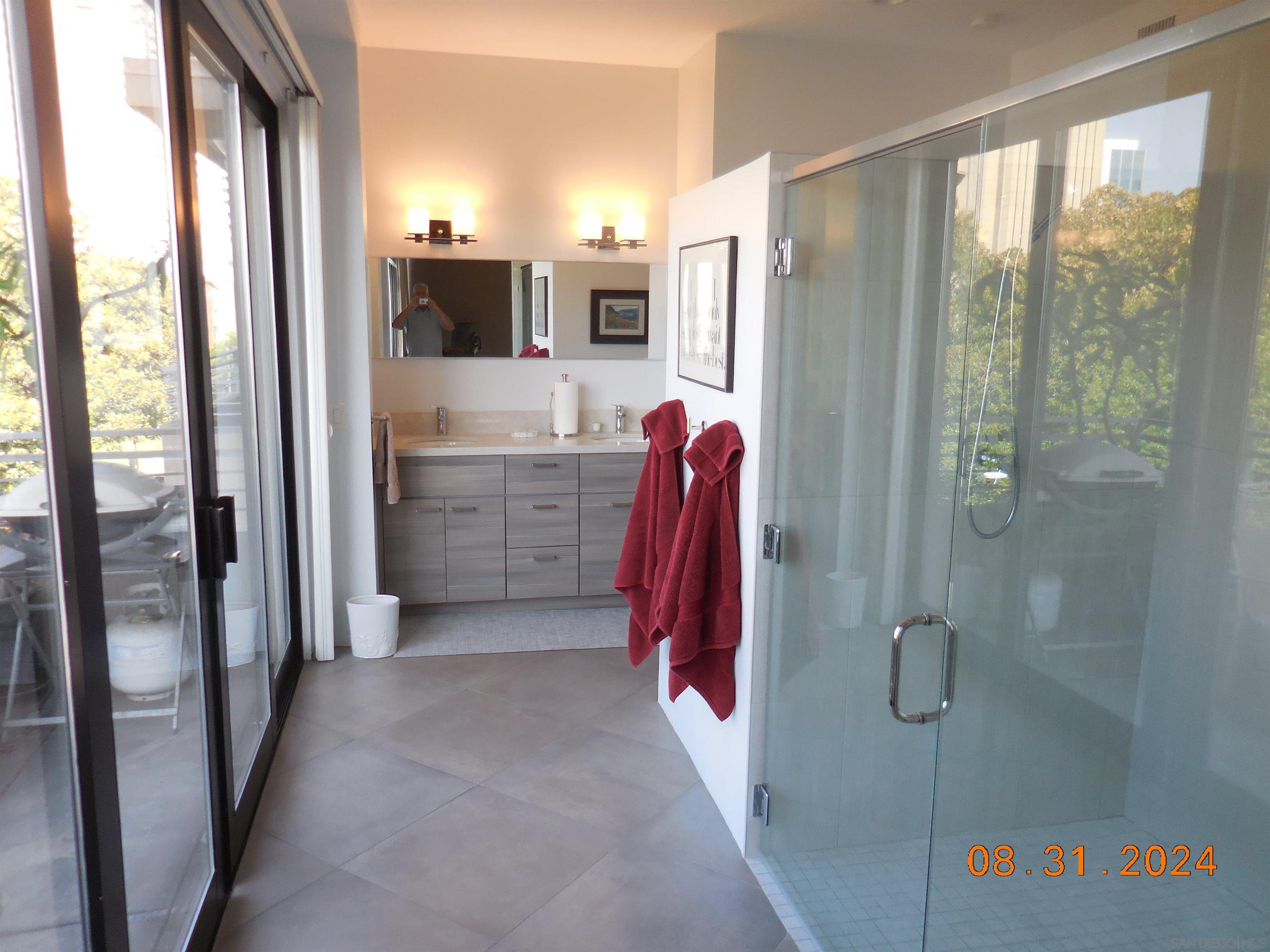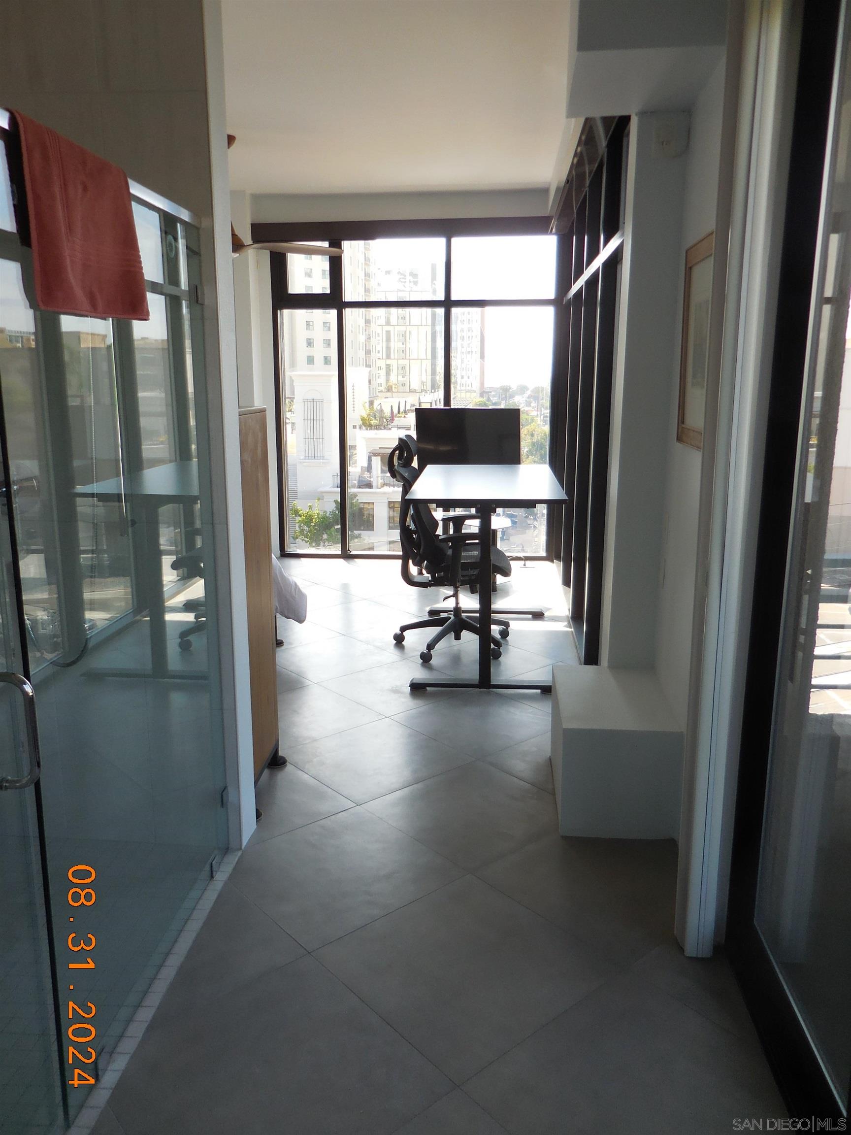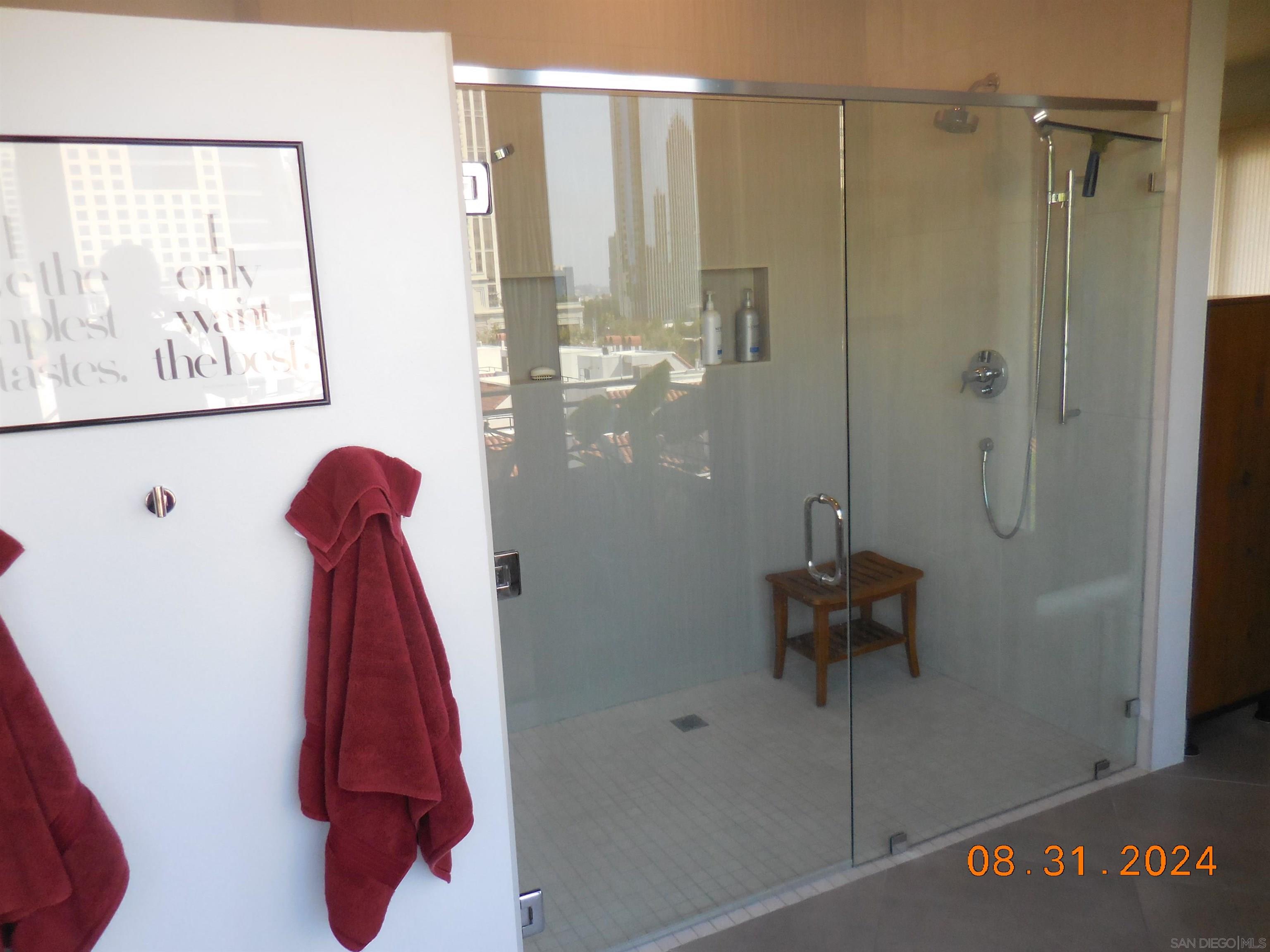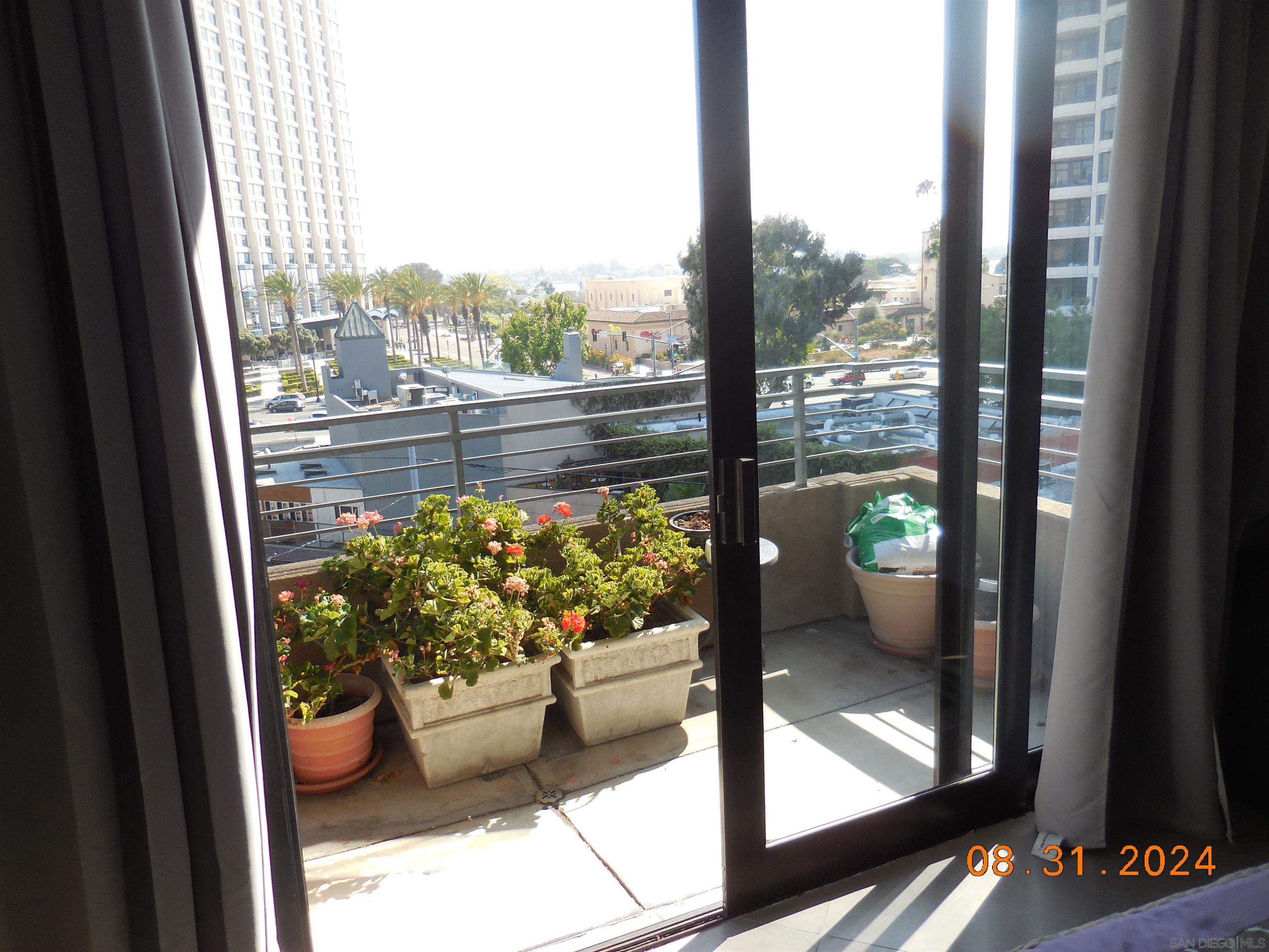 Furnished one of a kind unique loft space with windows on 3 sides (like living in a glass house but with privacy). Corner condo with views to North, West and South with amazing outlooks to the City. 3 decks (one on each side). Ceiling heights 9'6". Very livable space with little wasted space. Flooring is 24" concrete tiles. Kitchen with Thermador 6 burner gas stove, refrigerator, dishwasher, microwave and pantry. Primary bath has oversized shower which overlooks North deck. 2nd bath with corner shower (no tub). Stack W/D. 2nd bedroom has deck overlooking Hyatt. Primary bedroom is on the West and North side (no door to this BR, 3' opening). Primary closet is very large with many built-ins. Fully furnished with sofas, dining table, bar seats, 2 tv's, 2 queen size beds, stand up desk, linens and kitchen ware. You Tube TV, internet and water provided by owner. Tenant pays Electricity. 2 car side by side parking.