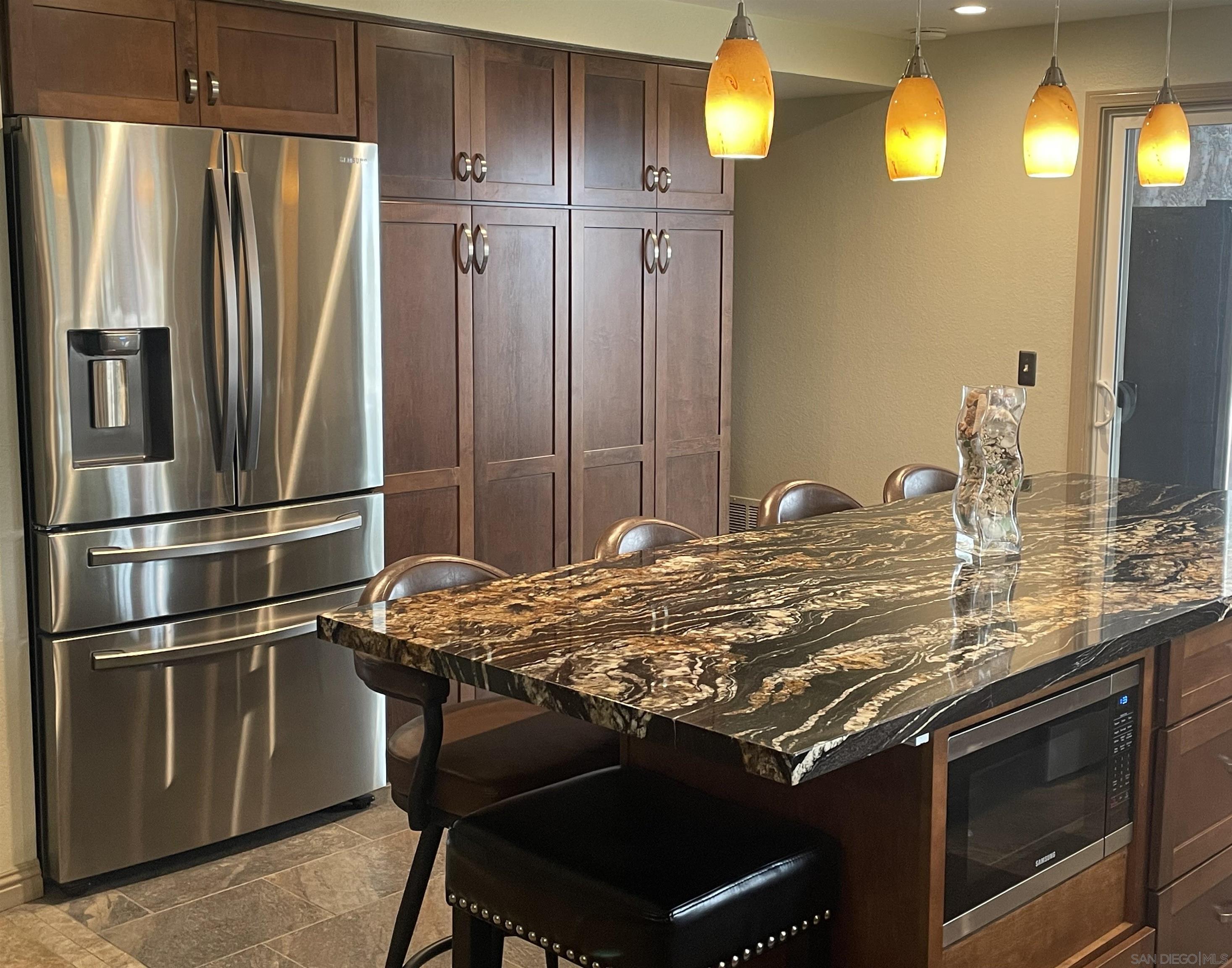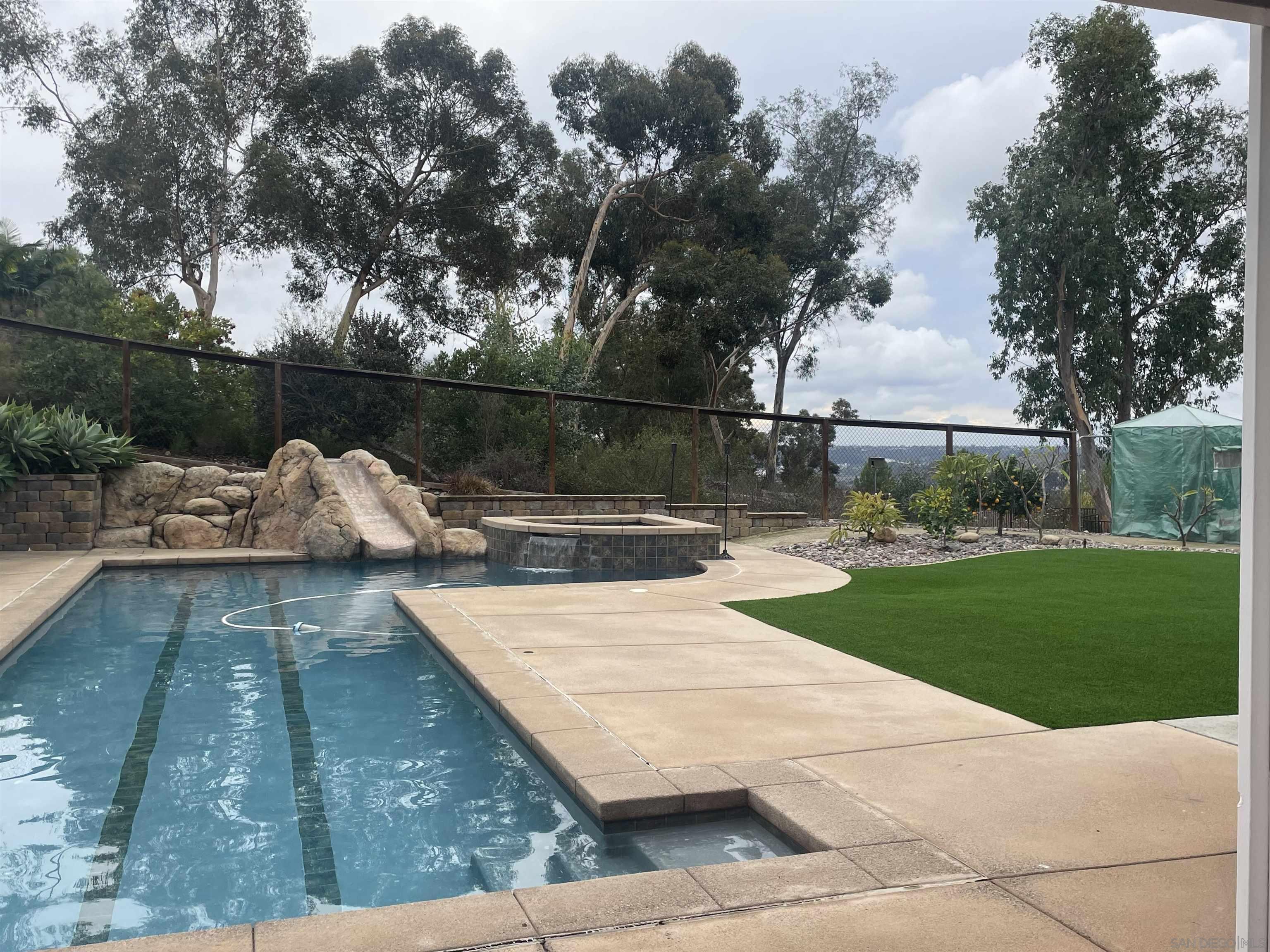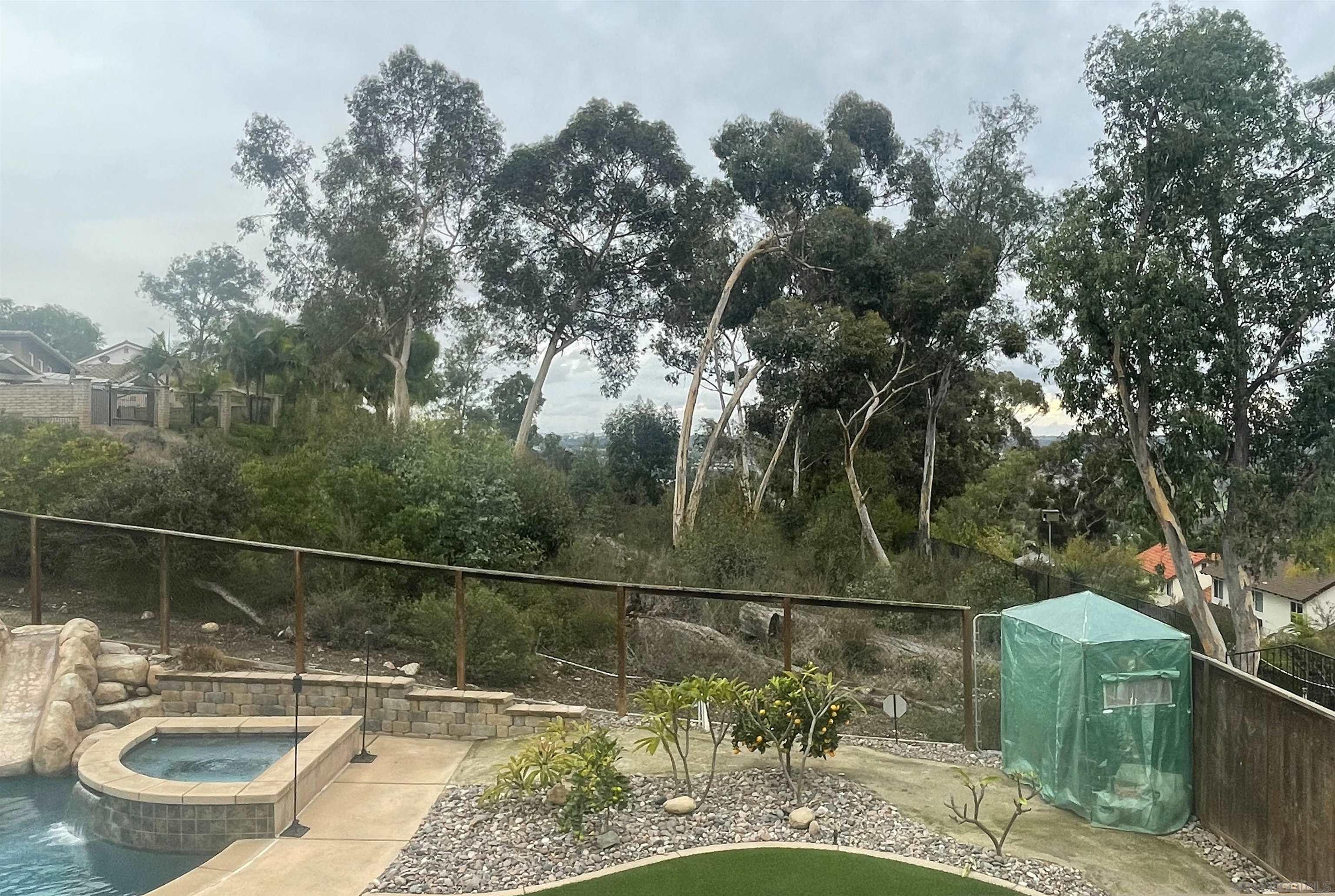 MOVE IN READY! This gorgeous, fully furnished, 3 bedroom 2 1/2 bath, 2 story home is nestled on a canyon in the quiet community of Tierrasanta. Some of the highlights include a newly remodeled kitchen, with stainless steel appliances, granite counter-tops and a wine refrigerator. Downstairs features a cozy fireplace, vaulted ceilings, a downstairs office area and a room adjoining the kitchen perfect for snuggling up and watching TV. Upstairs features three spacious bedrooms. The master bathroom features an oversized closed and a newly remodeled bathroom with a walk-in shower with lovely tile. The second bedroom has a large balcony that boasts beautiful views of the landscaped back yard, canyon and San Diego sunsets. The third bedroom features a convenient office area as well as a futon bed that doubles as seating. The back yard, complete with fruit trees features a beautiful lap swimming pool with a water-slide as well as a Jacuzzi. Owls and hawks are a few of the frequent visitors. The two car garage includes extra storage space and shelving as well as the washer and dryer. This lovely home is conveniently located within 5 minutes of the 15 freeway, close to Highways 8, 163, 52 and Highway 5. It is a short commute to La Jolla Shores, Mission Valley, the San Diego Zoo, Liberty Station and many other popular San Diego spots.