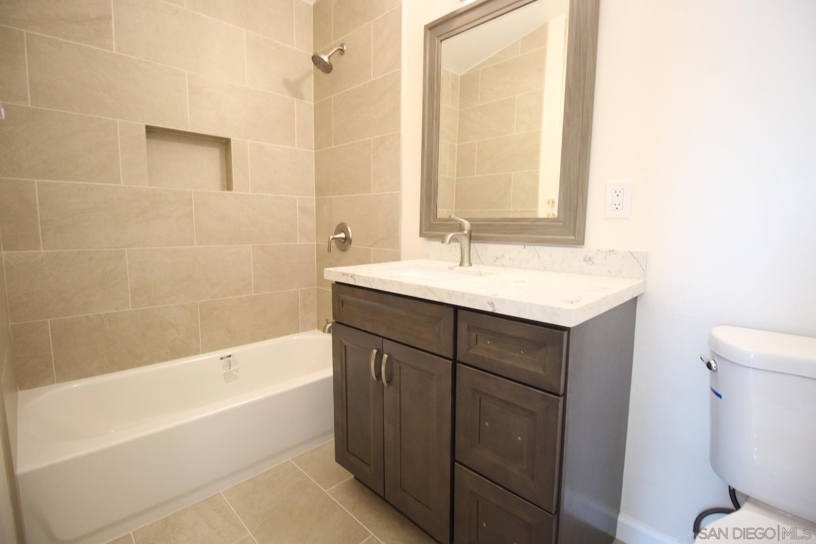 Completely remodeled in North Claremont 3 bedroom and two full baths in a Duplex,Across from elementary school and community park.Private yard.A/C ,Hardwood floors throughout,New kitchen,Large new bathrooms.New Dual pane windows,Vanities,Ceiling fans,Recessed lights,Newly built Laundry room with new washer/dryer.low maintenance yard And 2 Parking spaces with private access from ally .New roof. Walk to big Clairemont shopping center,Vons,movie theatre etc.Central location close to P.B,UTC and freeways.