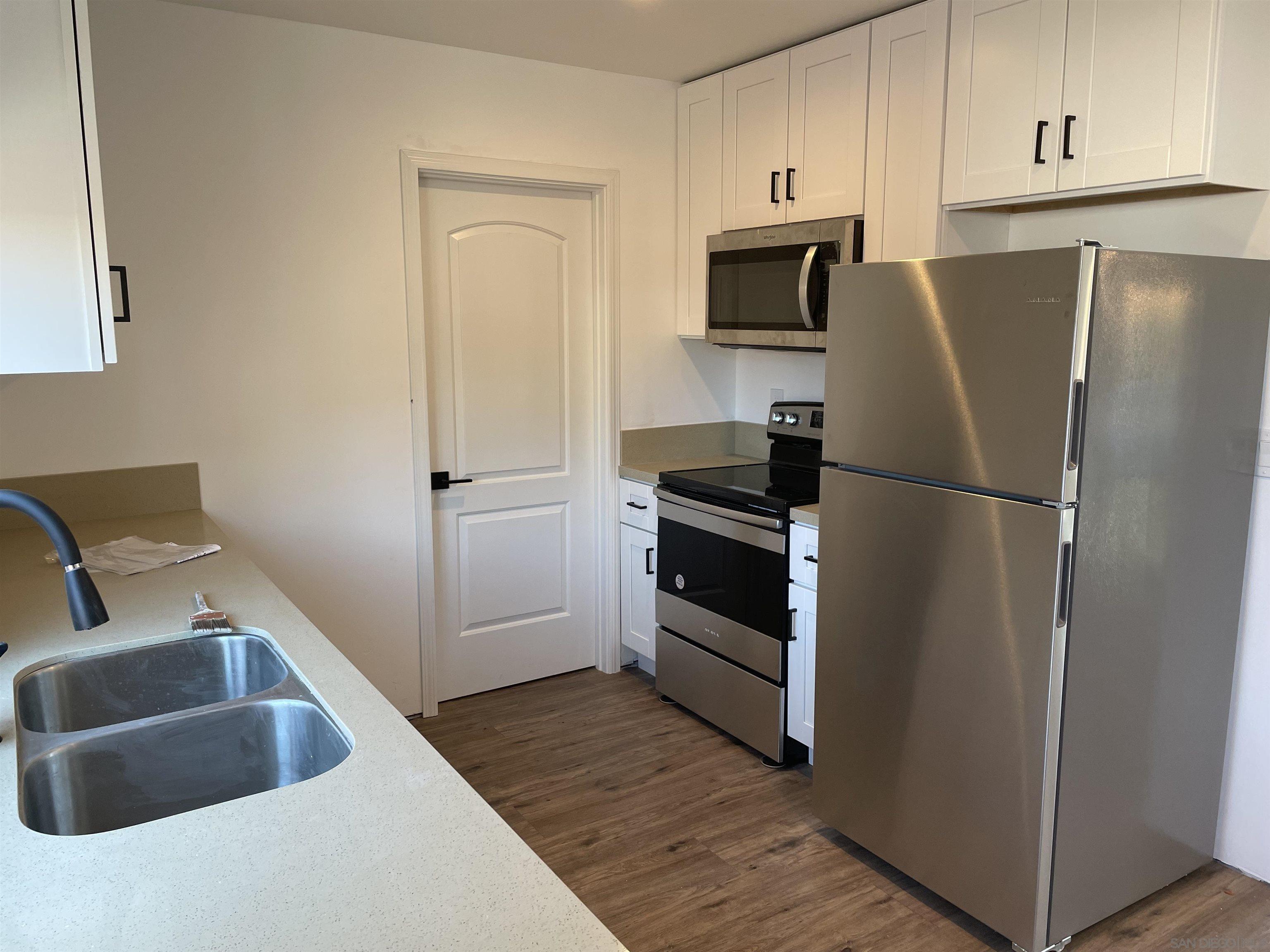 NEWLY BUILT ,Separate and Quiet single story in North Claremont One bedroom and full bath( in a Duplex),with Private Parking&patio.AC, Hardwood floors throughout,New kitchen,New bathrooms.New Dual pane window and sliding doors,Vanities,Ceiling fans,Recessed lights,Laundry in kitchen.Tankless water heater.New low maintenance yard .2 sliding doors from living room and bedroom to the enclosed yard.Walk to big shopping center,restaurants ,Movie Theatre Vons and more..Close to freeways,Pacific beach and UTC
