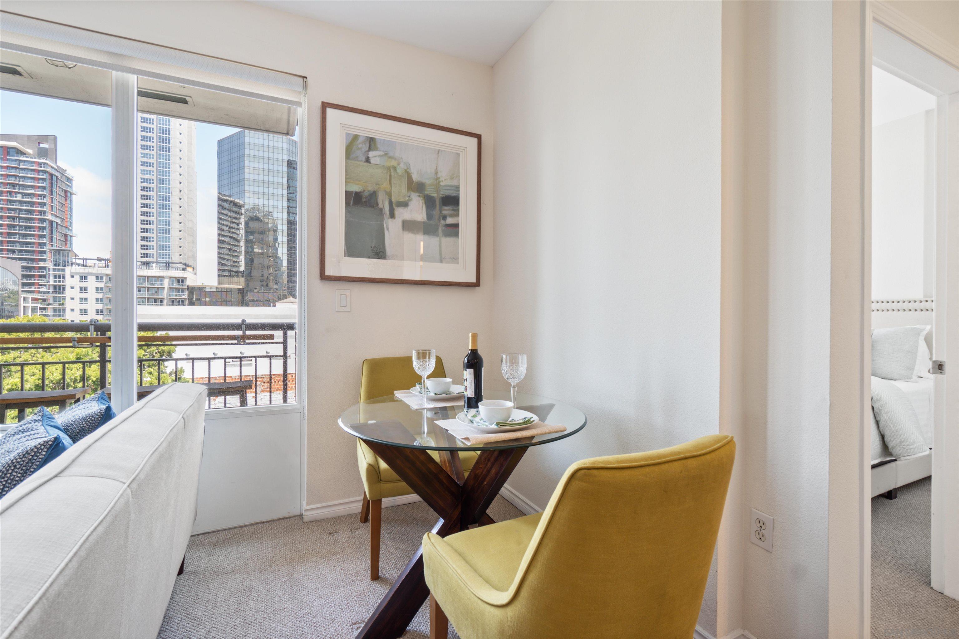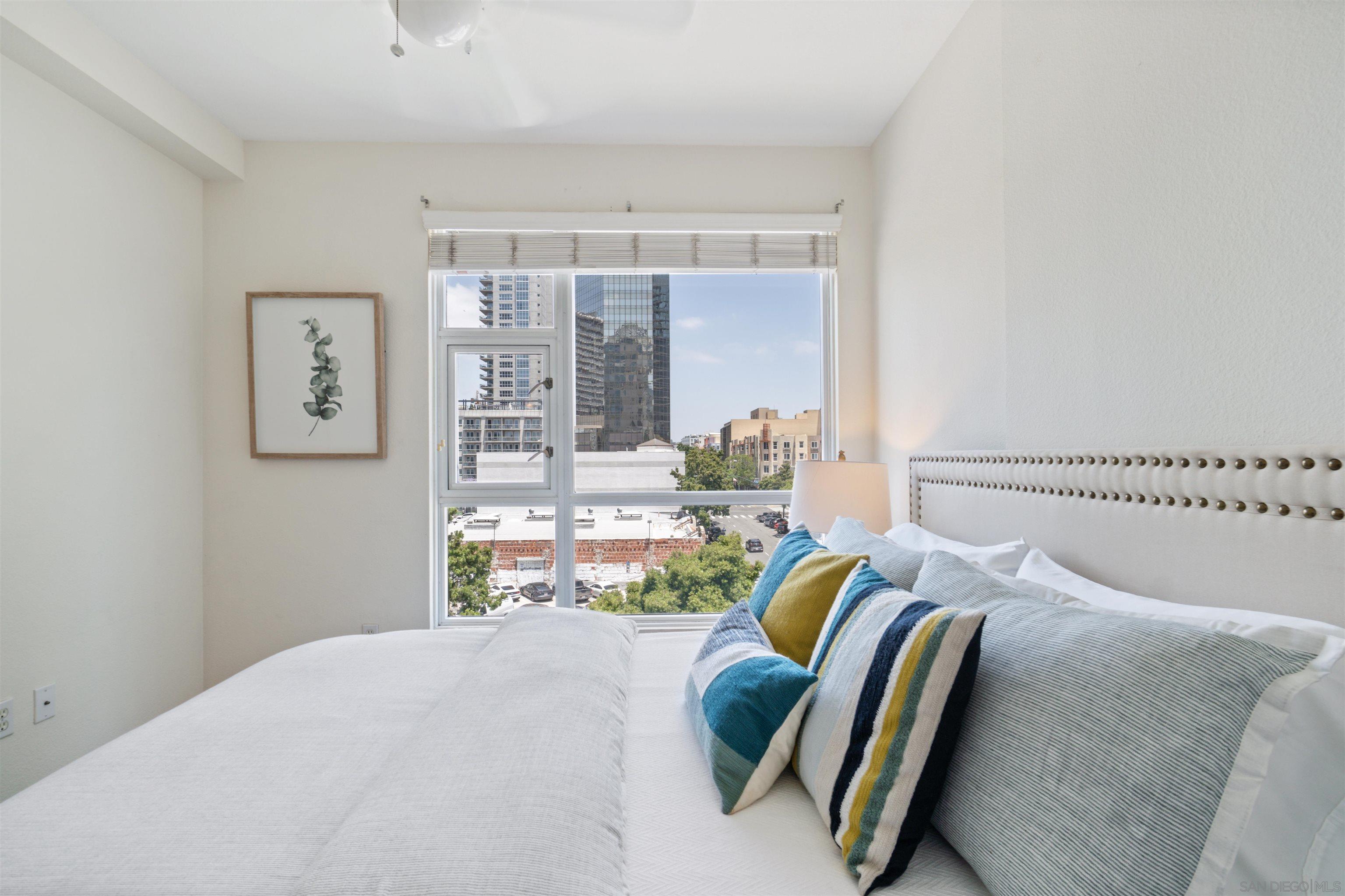 Enjoy year-round indoor/outdoor living in the wildly popular Treo building in this spacious 2 bed, 2 bath, 1 parking, FURNISHED UNIT with PRIVATE PATIO & CITY, BAY VIEWS & BEAUTIFUL SUNSETS. Warm, elegant interior features a gourmet kitchen with cherry cabinets, granite counters, and stainless appliances providing the perfect space to whip up culinary delights and entertain guests. The resort-style amenities include heated pool, spa, sun deck, BBQ area, fitness center, community room, security & concierge services! WALKING DISTANCE to EVERYTHING: fantastic dining, cafes, bars, boutiques, entertainment, Little Italy Farmer's Market, Waterfront Park, Petco & Balboa Park, Seaport Village, bay, train, trolley, airport, and more! AVAILABLE NOW! This unit has been fully refreshed. This won't last! Lease to start within 10 days and we welcome all Dep't of Defense (DOD) We'd love to work with you, so if you're looking for something different, please inquire about Downtown Condo Guys other listings.