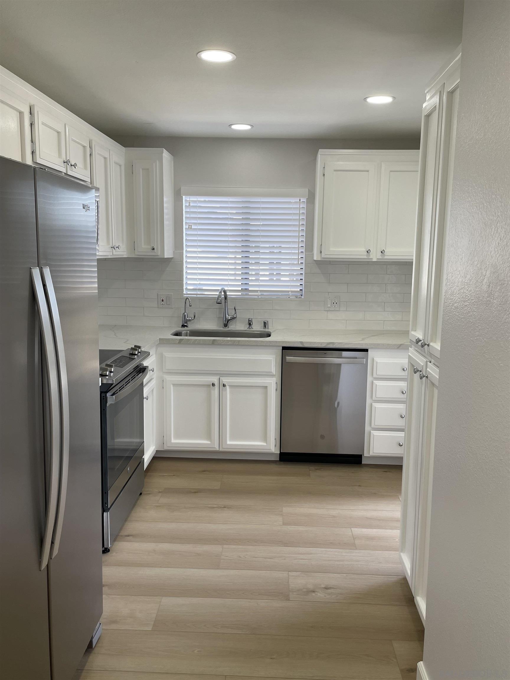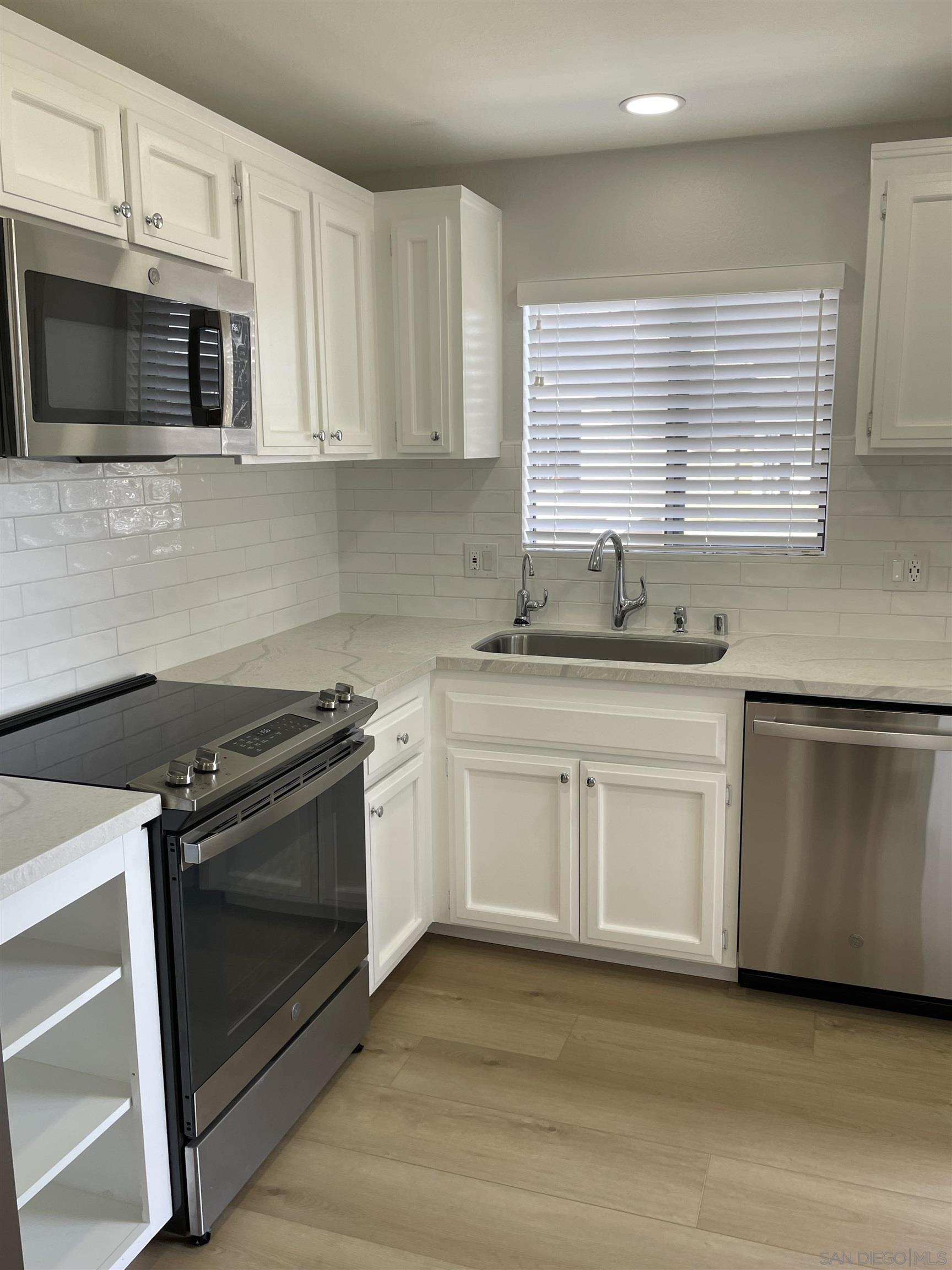 Look no further! This bright and airy, newly renovated townhome is centrally located and close to Mission Bay Park and Fashion Valley. This gorgeous townhome has 1,058 square feet of living space, 2 bedrooms 2 full bathrooms and an attached garage. The full size washer/dryer is located in the garage with lots of extra storage. This newly renovated home includes luxury vinyl plank flooring, new paint throughout, a spacious kitchen featuring granite countertops, new stainless steel kitchen appliances and direct access to a private patio. It features recessed lighting throughout as well as new window coverings. This sunny unit faces the south west and gets great sunlight all day. There is a large patio off the living room with sweeping views to the south. This is a lovely and quiet community with a beautiful pool, jacuzzi and clubhouse for your use! There is a one car garage, a reserved parking space as well as street parking. The fireplace is ambiance only, not for use for fires.