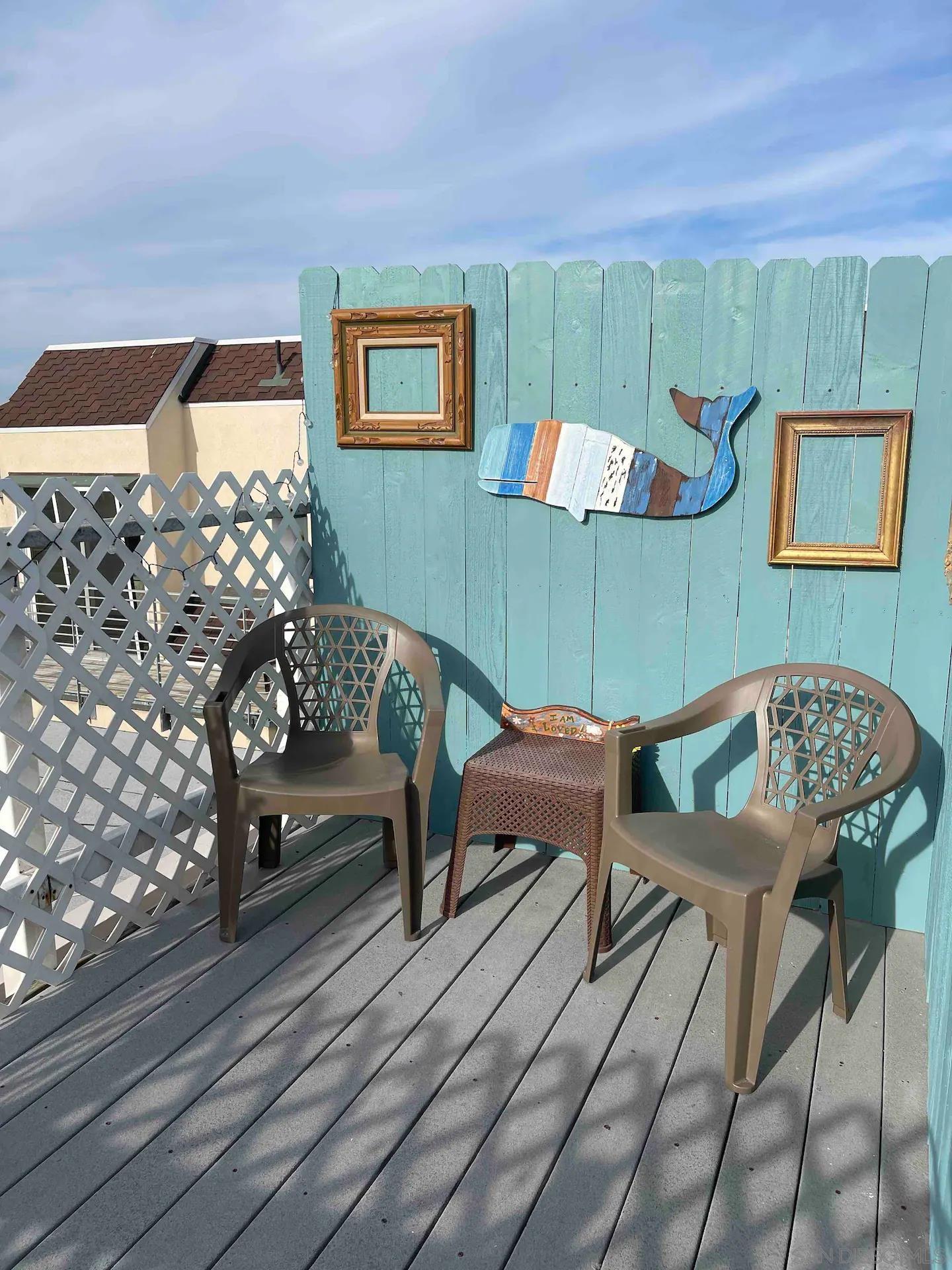 Available for short term rental. Listed rate is monthly Sept thru May: We also offer a 3 night minimum Sept thru May and 1 week in the summer season Sat to Sat. Can also be rented with adjacent 4 bedroom property to accommodate a total of 16 guests. Adorable 2 bedroom 1 bath with loft area furnished beach condo. 2 queen beds. 15 steps to the ocean front and 3 minute walk to the Bayfront. Cozy and cute. hardwood flooring and upper roof deck with a view of the ocean! STAYCATION and just steps to the beach!