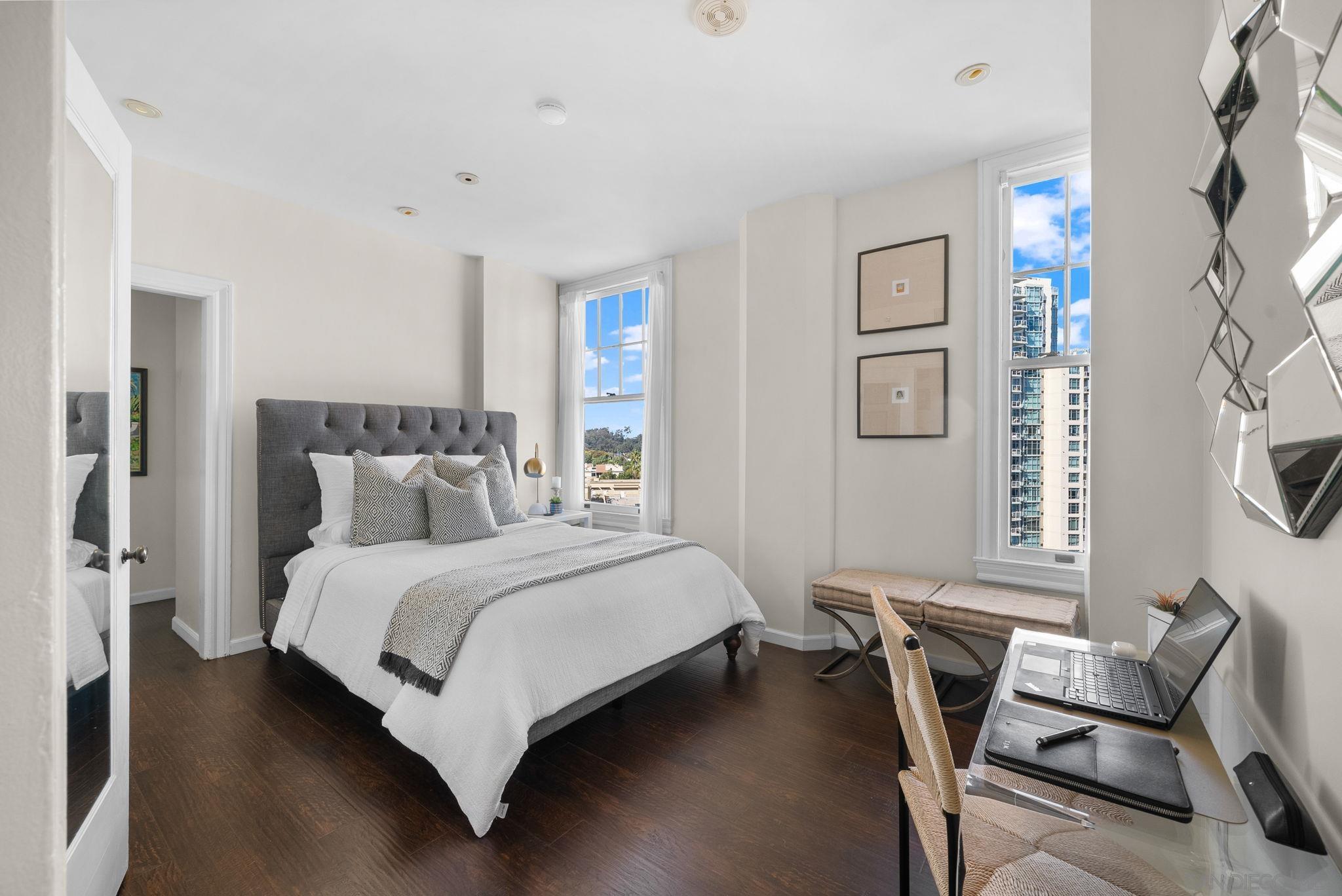 Experience urban elegance in this remodeled, fully furnished residence in the historic El Cortez building. Enjoy abundant natural light, a modern open-concept living space, dedicated workspace, and a kitchen with premium Miele appliances. Relax with views of Balboa Park, the Coronado Bridge, and downtown San Diego. Amenities include a fitness center, pool & amenity deck common area. Easy access to Downtown, Little Italy, Hillcrest, Balboa Park, Petco Park, the convention center, Zoo & airport.