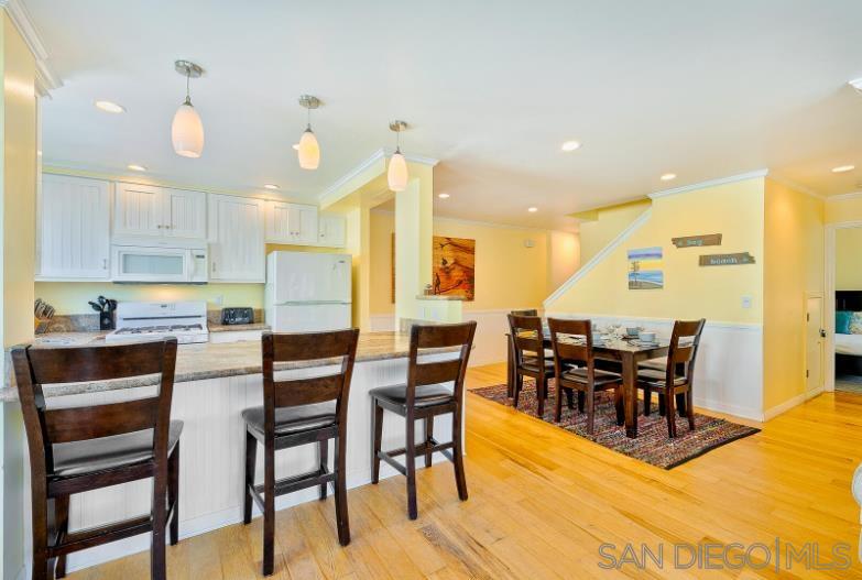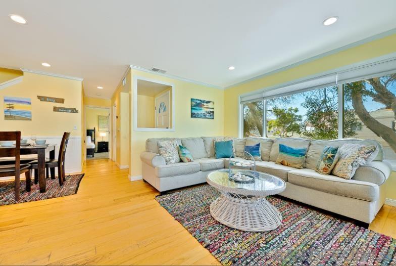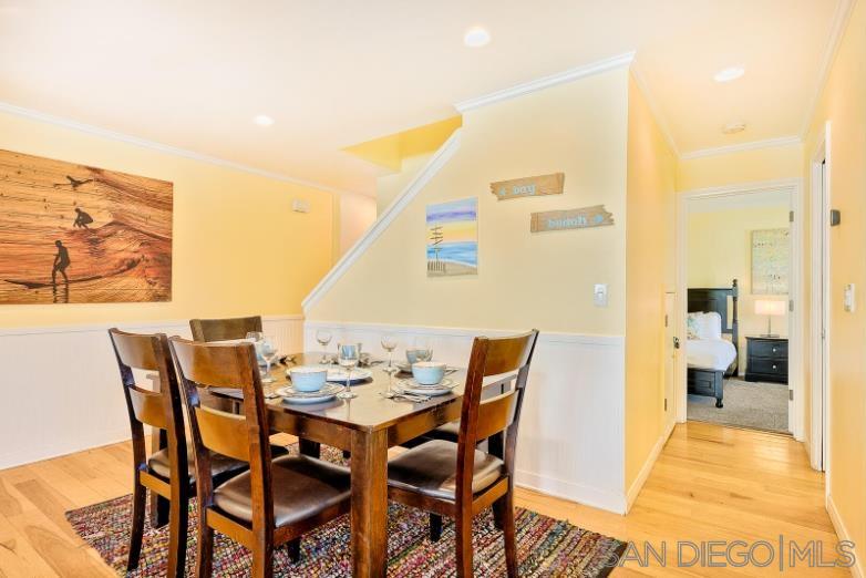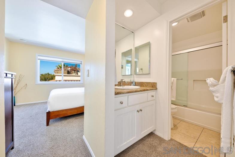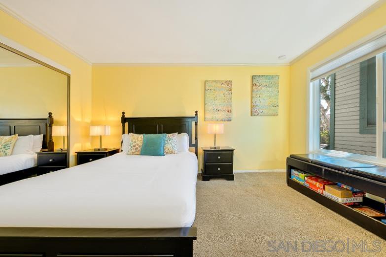 Boasting a private balcony with peek ocean views, a private garage, and a highly walkable location, this sparkling 3BR/3BA townhome is situated just steps from the bay and gorgeous Mission Beach. Take the spirit of adventure and beach gear out for a fun-filled day! Then cozy up beside your gas fireplace and stream favorite shows on the smart TV. Numerous local shops, eateries, and attractions like Belmont Park are within a short stroll. Spread out on this tri-level townhome with allows for eight (8) guests between three bedrooms. Dine alfresco on your sunny private balcony, furnished with a table for four. Fire up the BBQ grill and dine alfresco. Comfort awaits in the tranquil primary suite, appointed with a queen bed and an en-suite bathroom for your comfort and convenience. The second bedroom includes a queen bed, while the second bathroom hosts a walk-in shower. The third bedroom features two full size beds, a TV, private balcony access, and an en-suite bathroom with a tub/shower combination.