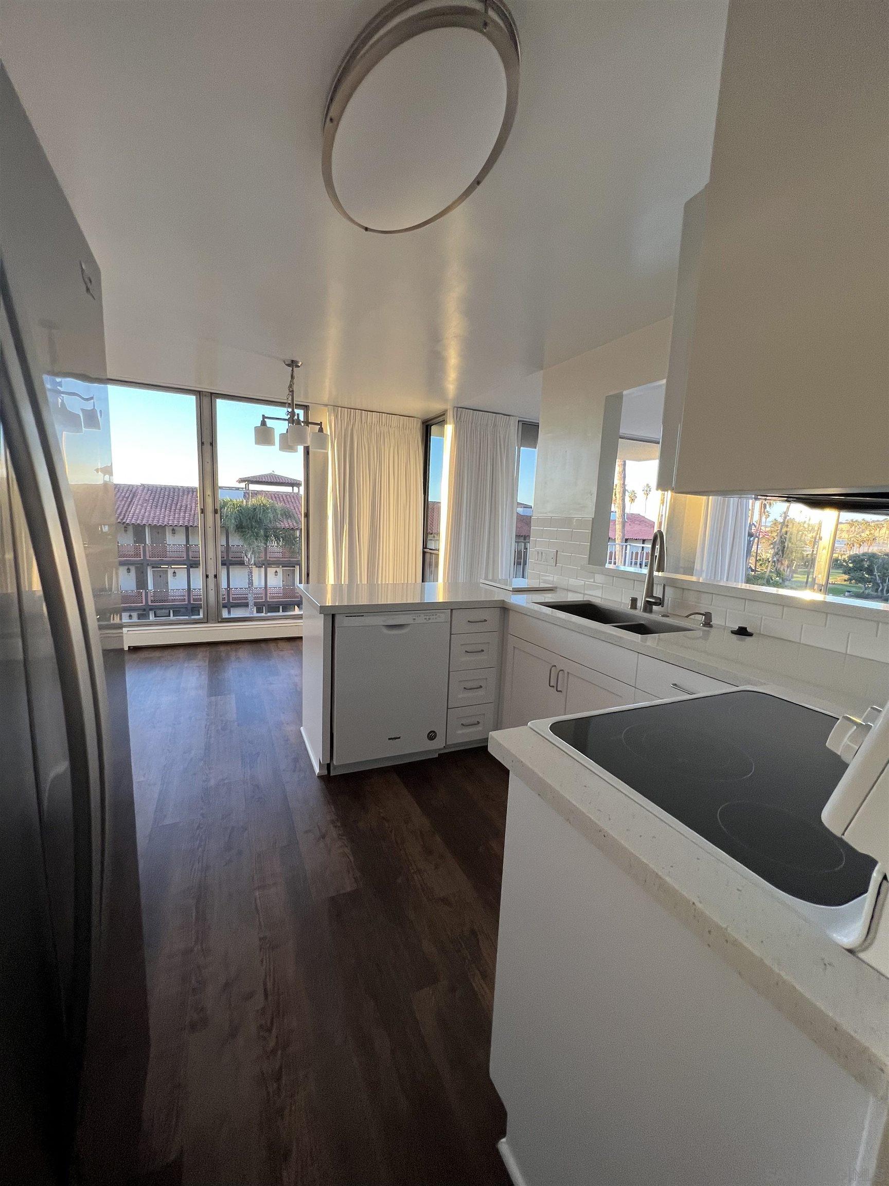 This is a spacious and quite Ocean View unit, located on the 3rd floor. Located on the world famous La Jolla Shores Park w/ a private deck, Bright, Walking distance to all. Amenities include use of pool, spa, gym, tennis, and beach access from the La Jolla Shores Hotel, which is located directly across the street from the unit. One private secure parking space comes with the unit and additional spaces can be purchased for a fee.