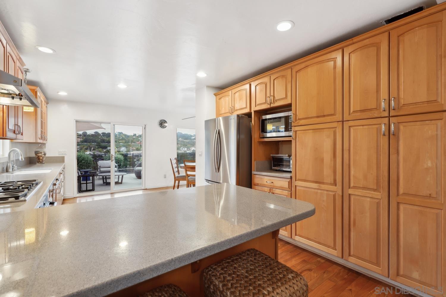 Live the ultimate coastal lifestyle in this exquisite dream home, nestled on a rare .37-acre cul-de-sac lot in the highly sought-after West Solana Beach neighborhood. Enjoy breathtaking views and a private backyard oasis, perfect for entertaining. The outdoor space has been completely transformed with a renovated saltwater pool and spa, new backyard concrete, a sleek glass fence, a wood side fence with an arbor, a built-in BBQ, a charming playhouse, a fountain, a lush lawn, and stairs leading to the owned land below, featuring numerous fruit trees. The home is powered by an owned solar system, complemented by a separate solar heating system for the pool. Inside, the kitchen boasts Silestone countertops, bar seating, stainless steel appliances, a cozy nook, and an adjacent family room, creating a warm and inviting space. The formal dining room and grand living room, featuring a slate fireplace with a custom wood mantel, offer seamless indoor-outdoor living at its finest. The spacious primary suite is a true retreat, featuring a large walk-in closet, en-suite bathroom with dual sinks and a walk-in shower, and a private balcony to soak in the spectacular views. The powder room and secondary bathroom have been beautifully remodeled the powder room now features a new vanity with a decorative wood countertop, vessel sink, and glass subway tile wall, while the secondary bathroom includes a new vanity, hexagon-tiled walls, and a stylish bathtub.Interested in this Listing?