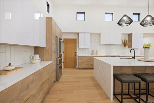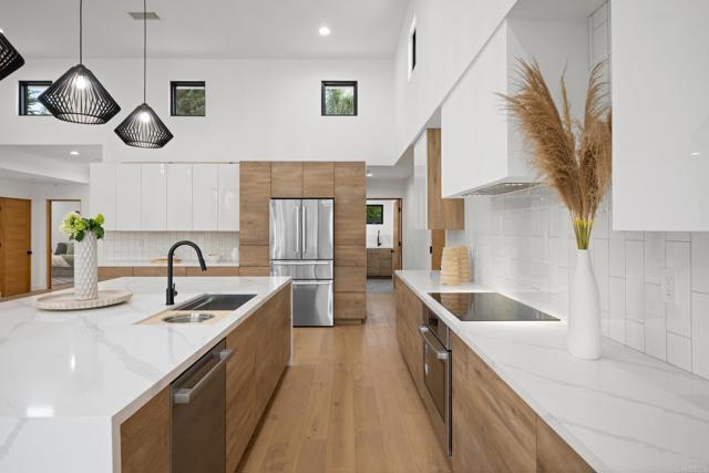 A contemporary masterpiece of design and sophistication, 810 Seabright Lane offers an unparalleled blend of luxury, comfort, and thoughtful functionality with beach living. Recent renovation just completed and un-lived in since, this stunning residence boasts soaring 13-foot ceilings and an expansive open floor plan, seamlessly bathed in natural light for an airy, effortless flow. This exceptional home features four spacious bedrooms, a dedicated office, and exquisite modern finishes throughout. The chef s kitchen is a true showpiece, complete with a massive 10-foot island with waterfall edges, premium stainless steel appliances, an induction cooktop, and an oversized sink. A discreet butler s pantry keeps appliances out of sight, while a generously sized laundry room and abundant storage ensure effortless organization. Closet organizers are built into every closet, including the expansive primary suite walk-in. Gorgeous wood flooring extends throughout, complementing sleek contemporary cabinetry and modern solid-core interior doors. The spa-like primary bath is a sanctuary in itself, complete with a walk-in shower and a soaking tub. Every detail has been considered, including all-new internal systems HVAC, plumbing, hot water heater, and more providing peace of mind and efficiency. Eleven owned Tesla solar panels (4KW) further enhance the home s sustainability. Designed for both privacy and convenience, the residence is set back from the street with a spacious motor court, offering four dedicated parking spots and ample space for a basketball hoop. Enter through the impressive 9-foot front door and step into a home that seamlessly blends indoor and outdoor living in one of the most desirable neighborhoods of Solana Beach. The living area flows effortlessly through 10-foot multi-slide La Cantina doors onto a lofted exterior patio, complete with a built-in BBQ and TV perfect for entertaining. The private backyard is a peaceful retreat, featuring a vegetable garden, low-maintenance landscaping with lush turf, upgraded pavers, and ambient landscape lighting. Designed with coastal living in mind, the home also includes an outdoor shower and a surf shed, perfect for beachgoers. Experience the perfect harmony of style, function, and tranquility at 810 Seabright Lane.Interested in this Listing?